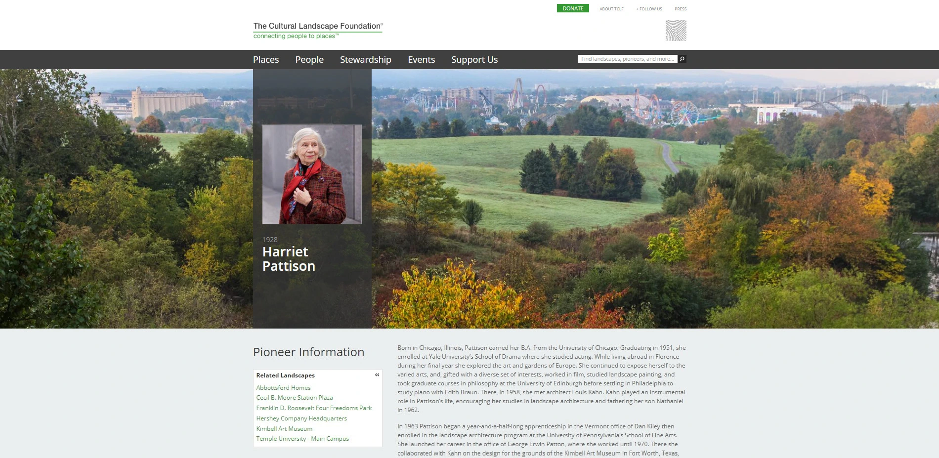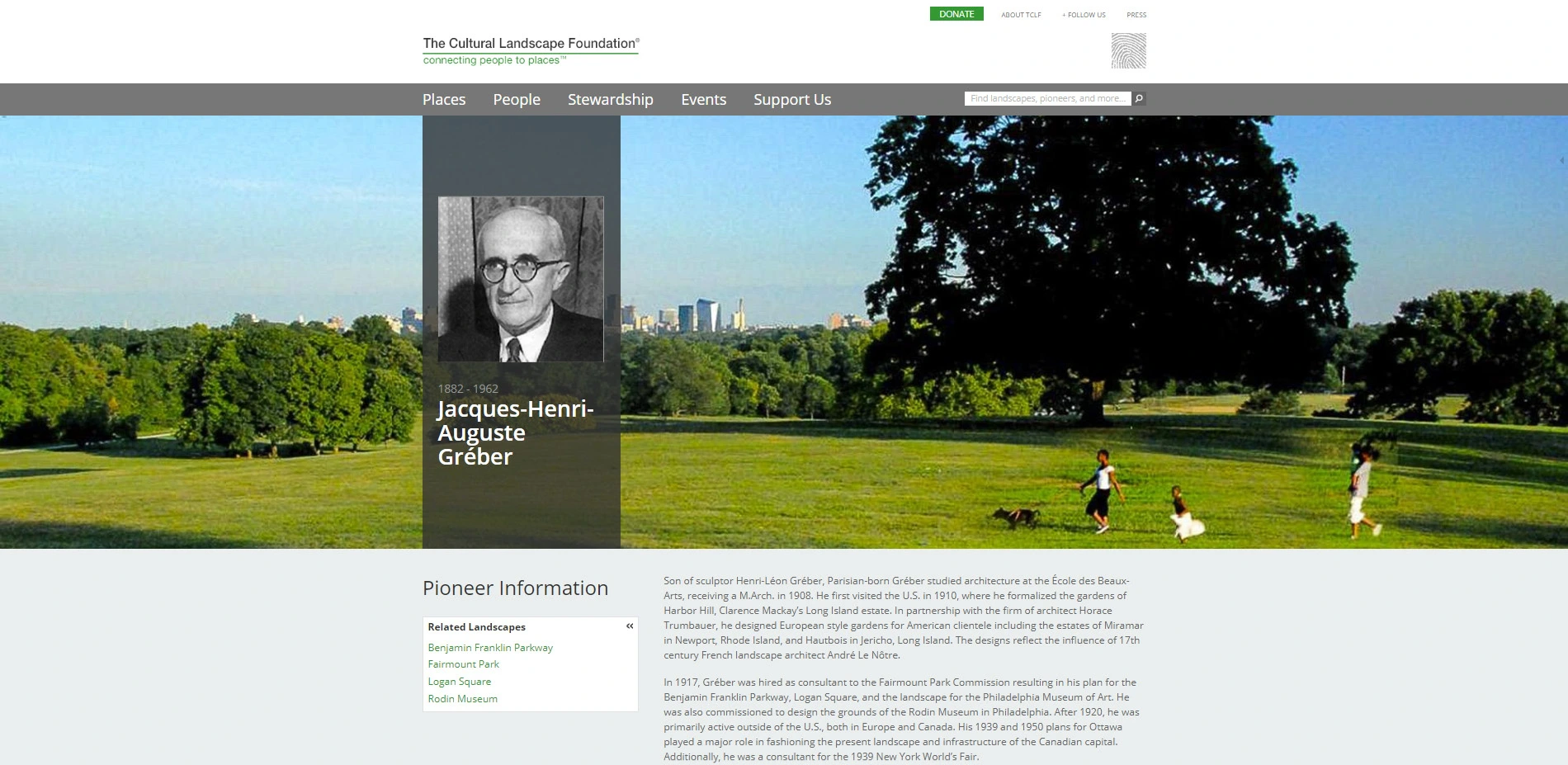 Created by a partnership of the Cultural Landscape Foundation and the National Park Service, the What’s Out There Cultural Landscapes Guides are an extraordinarily comprehensive and compelling online public resource. The well-designed website leads the visitor through the broader legacy of five city landscapes, describes and directs people to significant designed places in the community, and introduces the designers and visionaries who created them. The guides counter the reality that landscape architecture has too often been undervalued in the public mind by demonstrating through a rich collection of images and text the impact of landscape architecture and landscape architects on the quality of American urban life.