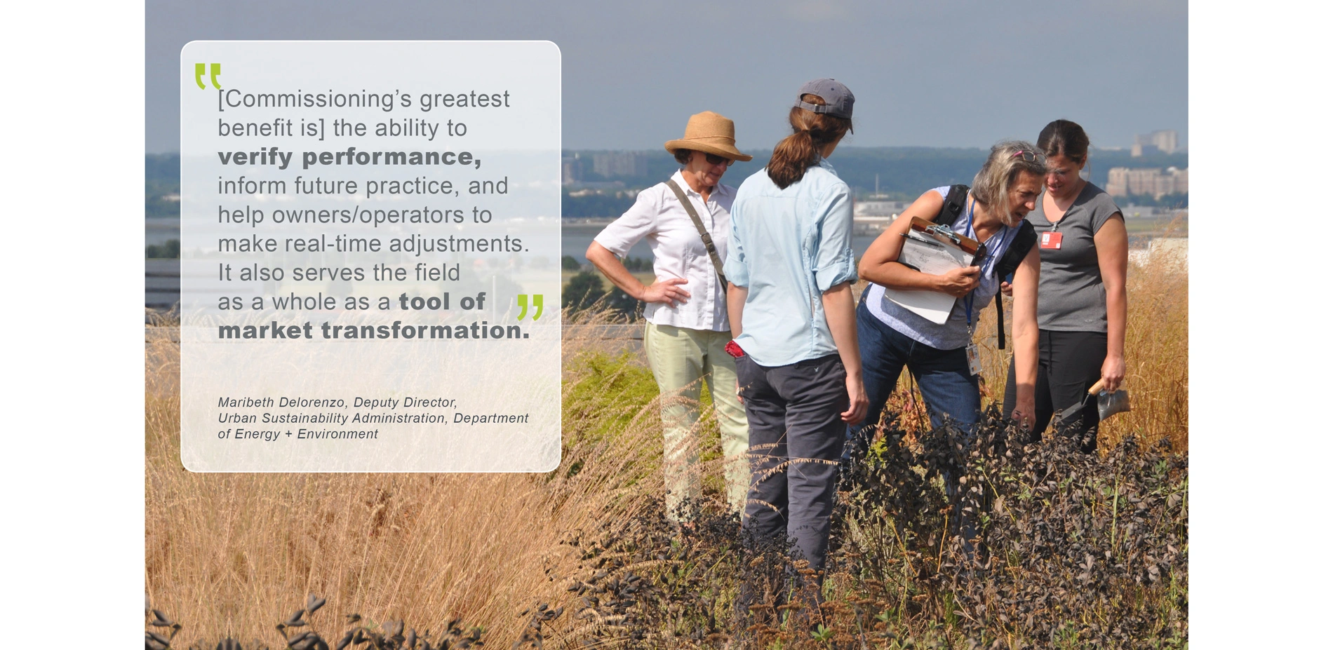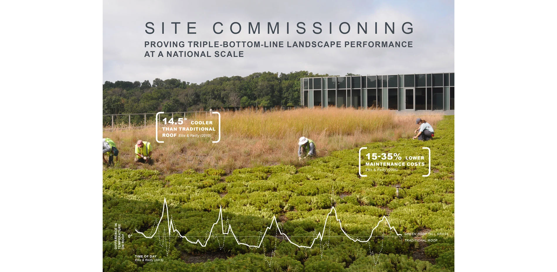 Site commissioning is the process of establishing performance goals and then field-verifying that systems within the built environment perform as intended. Since the 1990s, commissioning has developed as a professional practice for verifying that building systems are performing as intended. Now, as a proven leader in sustainability, GSA aims to apply commissioning to the landscape. The resulting land development model enables practitioners to confirm landscape performance, thereby proving landscapes’ triple-bottom-line value and identifying system issues before they expand into liabilities.