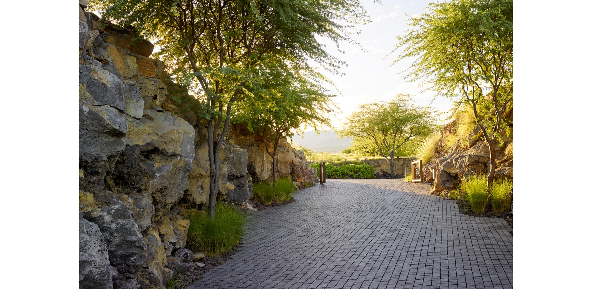 A third element of the native landscape that informed the design is the Anchialine pond, a fresh water source often found between mountains and ocean. In volcanic, tropical islands worldwide, water tends to seep through porous young lava bedrock and gather in pools at low elevations. Anchialine ponds historically provided fresh water for drinking and irrigation, as well as unique habitat for aquatic life. The landscape architect took inspiration from the mountains, the ocean and the lifegiving Anchialine ponds found along the aforementioned transect. Water and lava, drawn by gravity to the ocean, became the major guiding forces in the sequence of travel through the site.