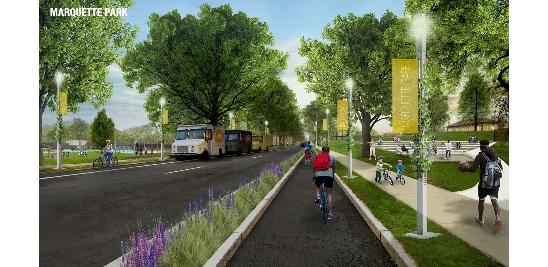We propose that large scale investment in any urban project builds from these centers first. Investment capital follows talent, and talent increasingly follows place. And the most dynamic and valuable places embrace diversity and inclusion, a mix of uses, and offer places for connection and fun. From Washington University and Forest Park, through Cortex, Grand Center, Saint Louis University, and Downtown, the Greenway will provide a new public realm and connective tissue, connecting the island in new ways through the center of the city. Enhancing access to these assets with new, well-programmed greenway networks can support the real estate market of their surrounding areas and attract new residents, companies, and investment.