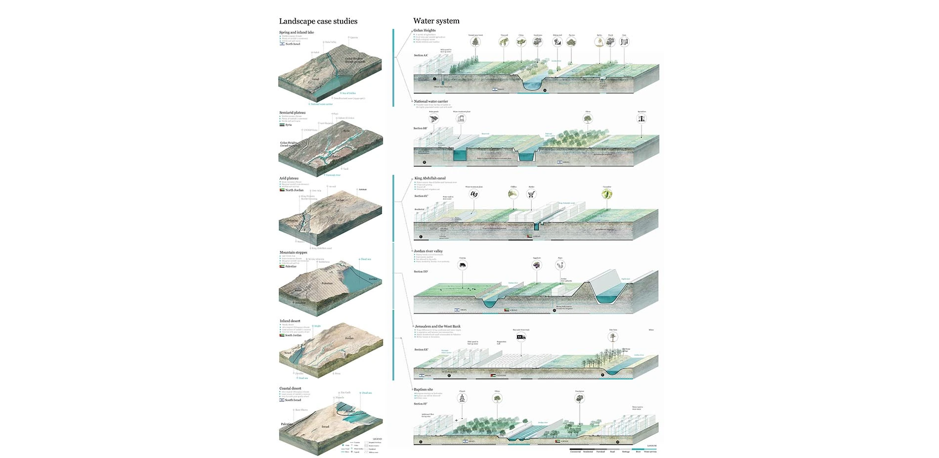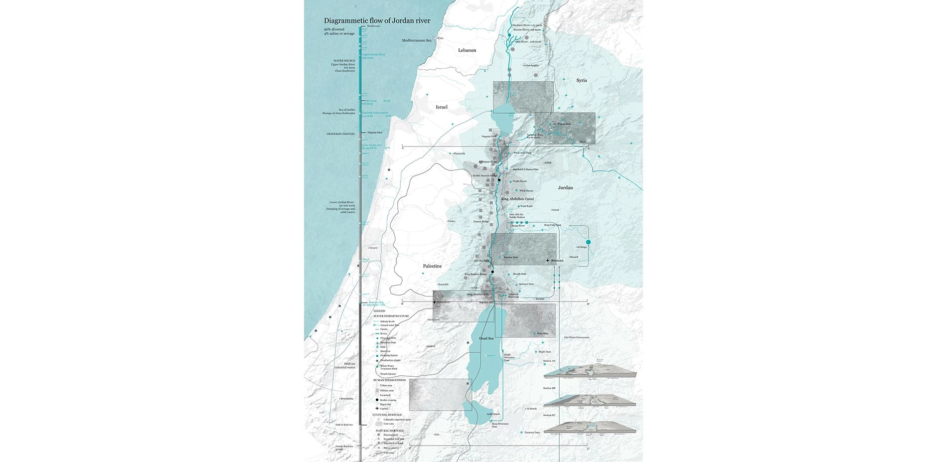 The project examines the impact of transboundary water politics on water supply and the access rights in the Jordan River Basin. It proposes a new design framework that enables an inclusive and participatory new strategic plan for a decentralized system to achieve water security at the community level and to resolve conflicts at the regional level. It offers a viable alternative to the current centralized water management system and proposes to assert water security as a critical role in achieving political stability. Navigating between the geopolitical system and landscape features within the shared river basin, the project enables community capacity building to attain water security. It proposes a new link between water and stability, and provides a strategic toolkit that transforms water into a conflict mediator.