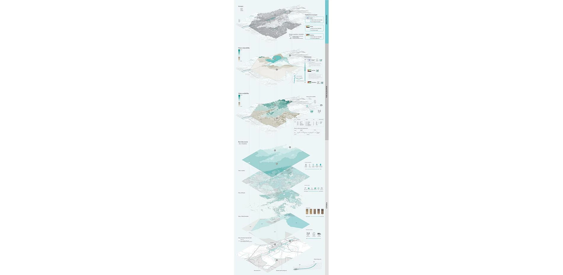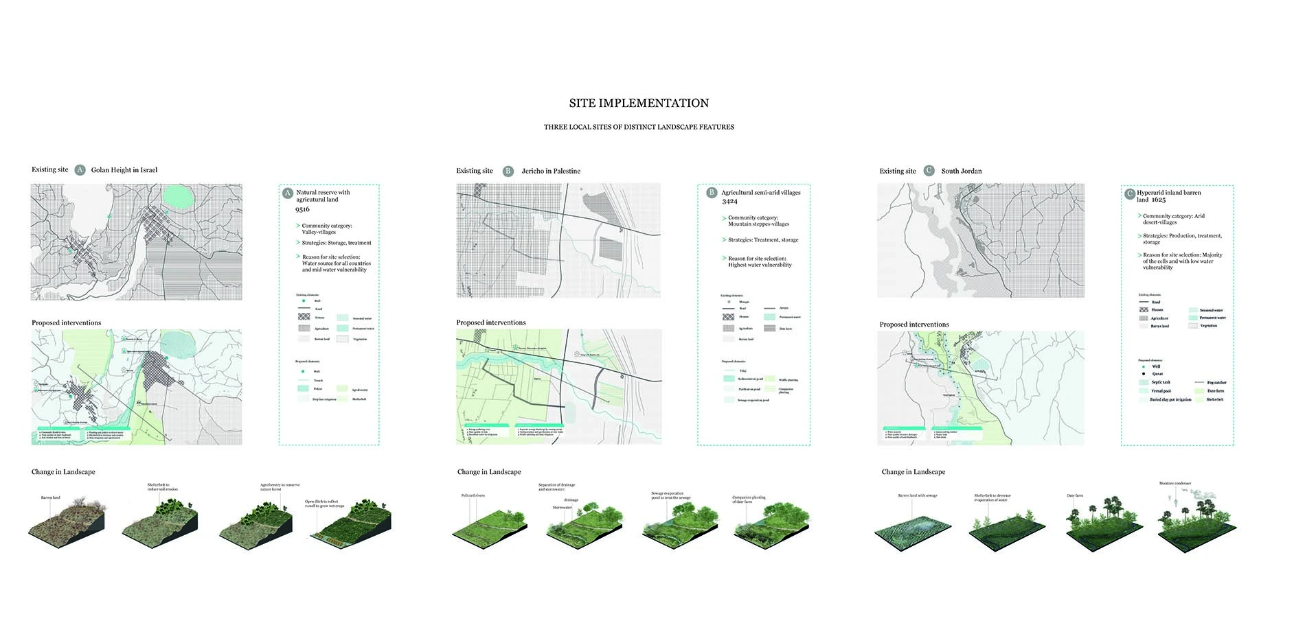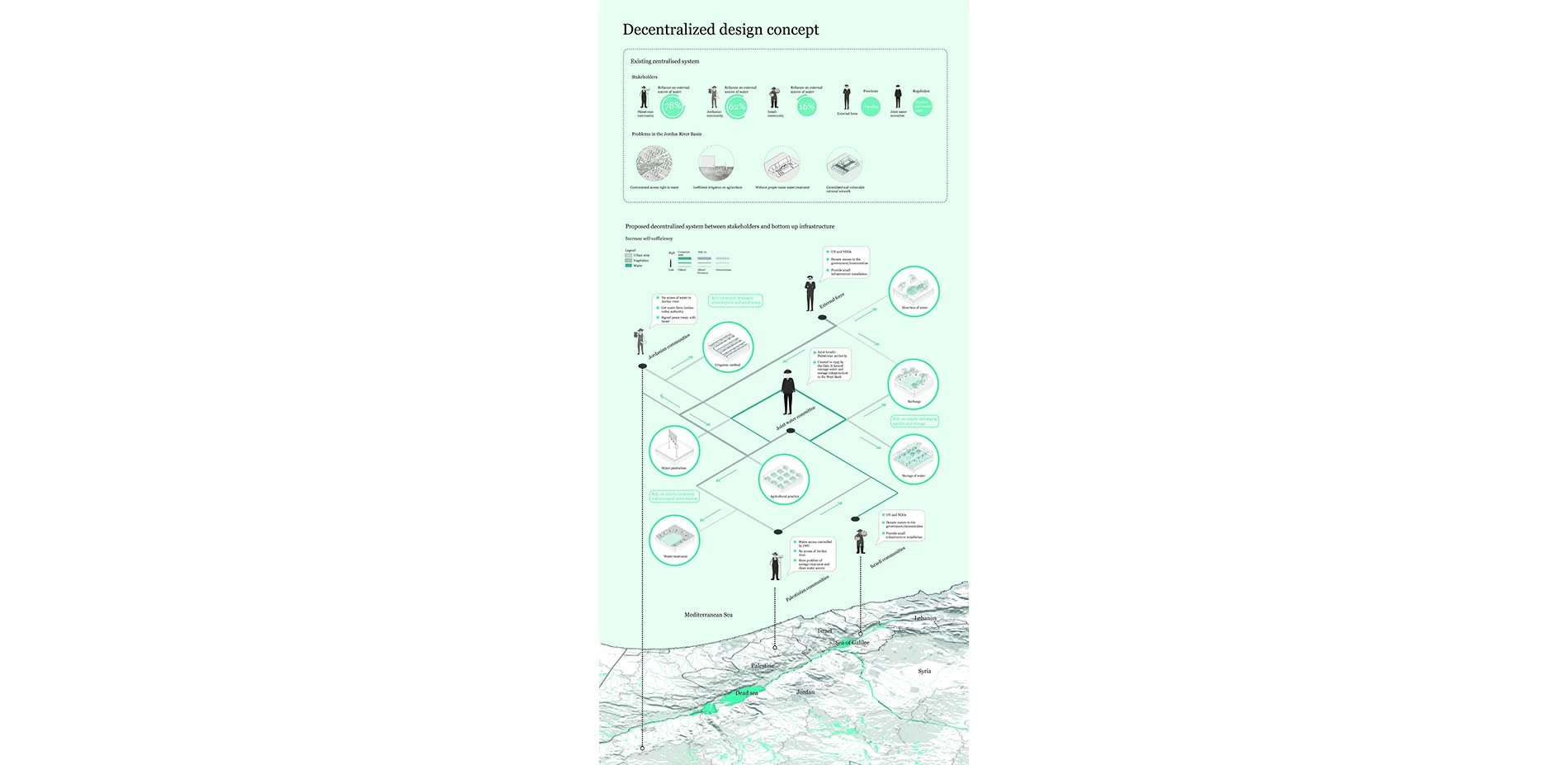 The project proposes a new design framework that enables a new strategic plan for a decentralized system to achieve water security at the community level and conflict resolution at the regional level. It offers a viable alternative to the current centralized water management system and proposes to assert water security as a critical role in achieving political stability. Navigating between the geopolitical system and landscape features within the shared river basin, the project enables community capacity building to attain water security.