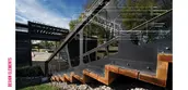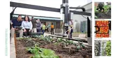 With subtle Japanese influences, the structures and gridded layout of the garden allow for a flexible framework for current and future activities to evolve within. A central, accessible walk slopes up four terraces forming a central axis through the garden. The axis is terminated at the southern end by the gateway arbor and at the north end by the entry stair. The four terraces are associated with four rooms of the garden: research and learning, demonstration, storage and gathering, and entry. The terraces are separated by gabion baskets that cut across the grade change and by planters with cedar stairs at the transition. The garden beds are organized into red, blue and green numbered beds that align with their primary function. Colored numbers along with plant spacing tick marks are engraved into each planter. A central demonstration area adjacent to Farmbot robotic farming units, provides a shaded gathering area in the afternoon for visiting classes to meet in the garden.