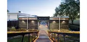 Sheds: The sheds were designed for storage, to house the pump elements, and to open during events. The inner doors fold up to form potting tables. Sliding doors secure each of the two sheds.