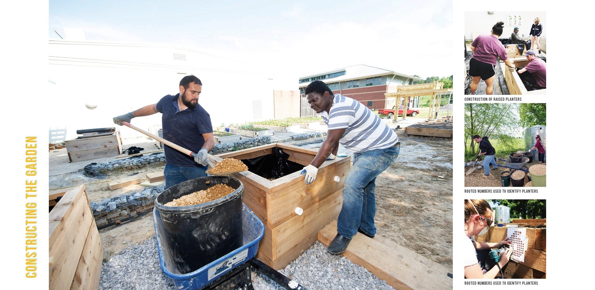 As a garden, landscape architecture students lead the design process and coordinated each element and how it contributed to the overall solution. Beyond the 6 primary students, additional over 30 additional landscape architecture students contributed to the construction of the garden through service-learning classroom activities. Community members were also invited to help move soil and gravel toward the end of the process through service days organized by one of the landscape architecture students.