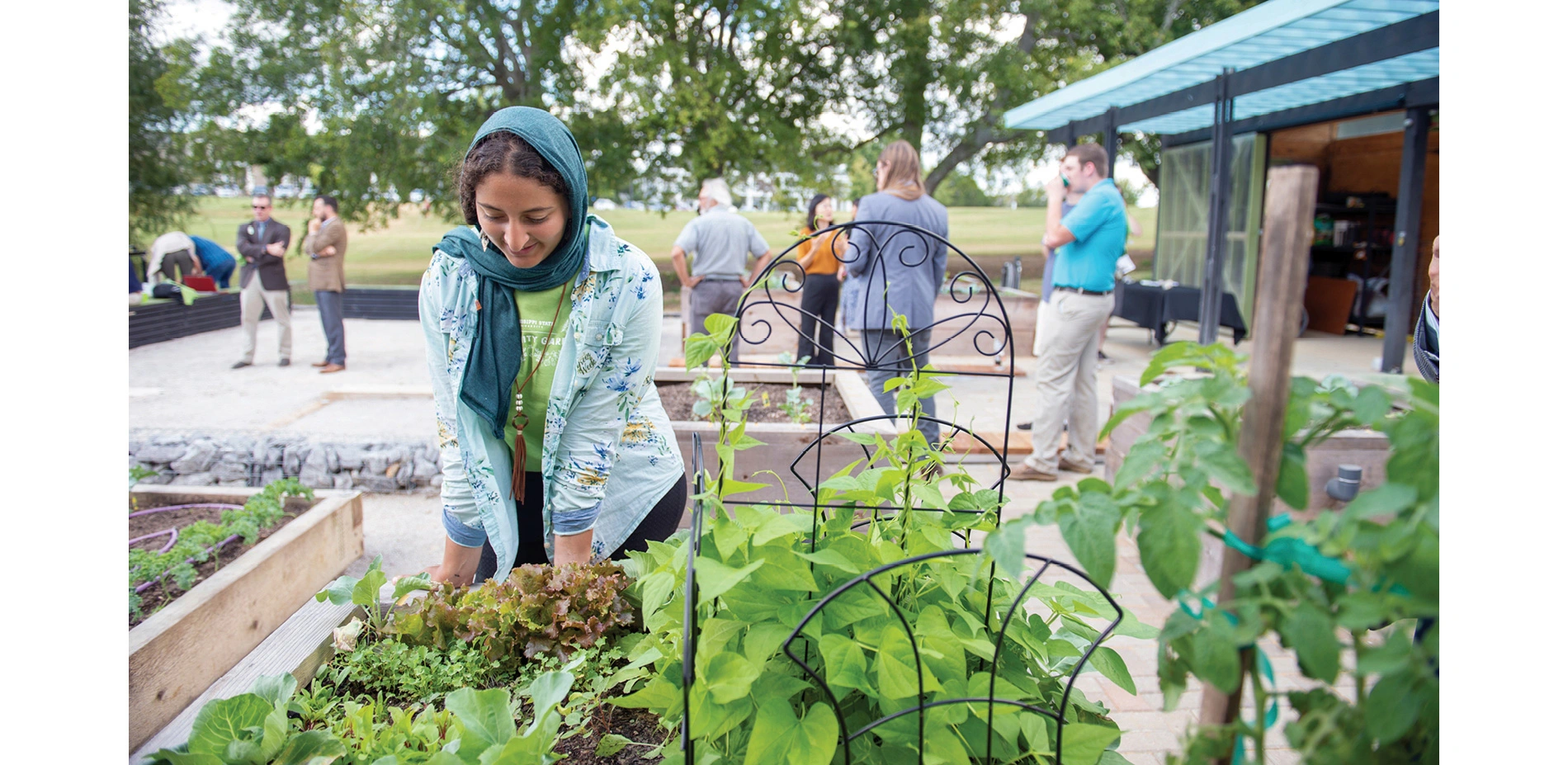 Located in one of the most obese states in the U.S., the garden sits on the edge of a university campus. An adjacent parking lot to the north, an accessible parking lot to the east, and a nearby transit route make the garden easily accessible to anyone in the community. As a lab for teaching and learning about urban agriculture, the garden is a unique tool for combating issues related to food, nutrition, and health in the region.