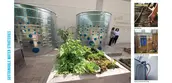 Demonstration Area: The open area serves as a gathering spot for classes and impromptu meetings in the garden. The space is lined with three, long benches that are laid out to work with pedestrian movements and to protect the farmbots.
