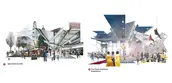 Along Walnut Street, the proposal emphasizes the already cultural nature of this street, connecting the many assets that downtown Cincinnati has to offer to the Ohio River. Along this corridor, we are proposing is a generous and dynamic central lawn and greenspace for the entire city to utilize (that can host both formal and informal events of many types and scales), a year-round market, the existing Ferris wheel and carousel, and a proposed community center with an indoor-outdoor skating rink. Furthermore, these added design interventions connect to many existing cultural assets of the city--Fountain Square, the historical Dixie Terminal, and the National Underground Railroad Center, creating a visually continuous and programmed corridor from downtown Cincinnati to its riverfront.