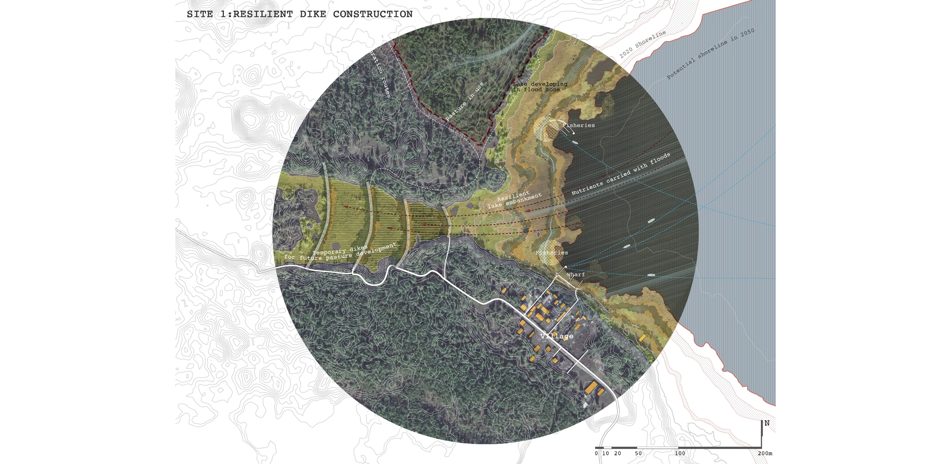 Climate change is changing the region of historical evolutionary footprints such as the ALAAS landscape system in a profound, practical, and global way. We recognize and take advantage of the short-term positive impact of climate change on the ALAAS thermal karst lake region while focusing on the sustainable development of a more resilient civilization. The project studies the changing mechanism of permafrost ecosystems and the mechanism of plant community degradation succession. By optimizing plant community allocation, planning semi-natural areas, and constructing elastic ecological facilities, the project maximizes water and soil properties and make the region strive in permafrost, increases the vitality of flexible regulation and healthy growth facing permafrost degradation. We take landscape intervention as a critical opportunity to resolve regional contradictions and translate global macro-related issues into small-scale interventions with ecological, social, and economic resilience potential.