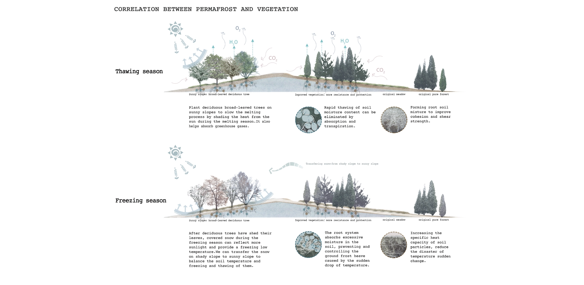 We hold a belief that the project will provide an updated opportunity for the region that once lived in the permafrost region to face both ecological and civil degradation through a landscape-based framework to rebuild confidence in the land of degraded permafrost.
