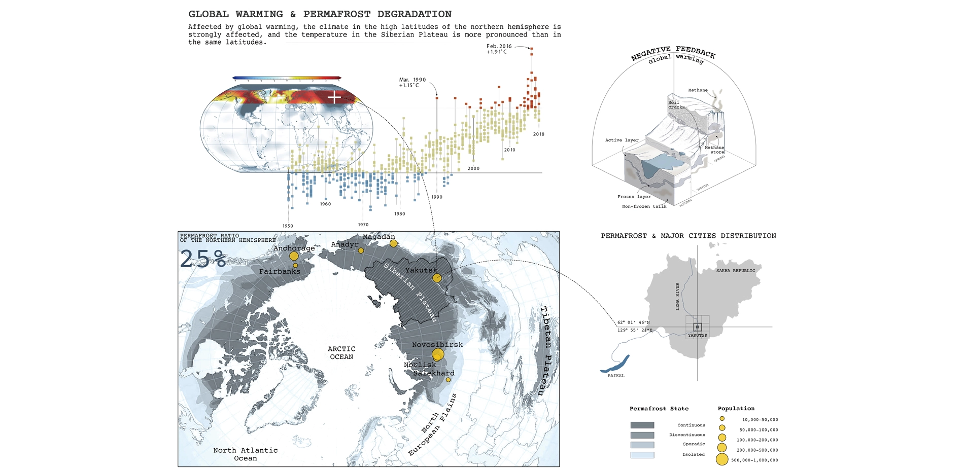 The dramatic changes in permafrost ecosystem have put enormous pressure on urban economic development and social stability. Due to the drastic changes in the social system and the relatively backward economy, the sustainable development of the Eastern Siberian Plateau has been more affected by the degradation of permafrost. The capital of the Sakha Republic, Yakutsk, is a typical case.