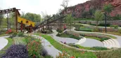 Seven quarries across nearly 82 acres each provide unique terrains for exploring the potential for regrowth within widely varied conditions of scale and stability. These voids carved into the landscape offer different opportunities, from cliff-top aerie to sunken aquatic garden within the excavation; variable water levels in one quarry necessitate a floating pavilion. A raised pathway above an existing—and still functional—aqueduct connects these disparate quarry gardens, elevating visitors above shifting and potentially calamitous ground fluctuations with a unified design that allows unhindered observation of ground that is now productive in a more thoughtful way
