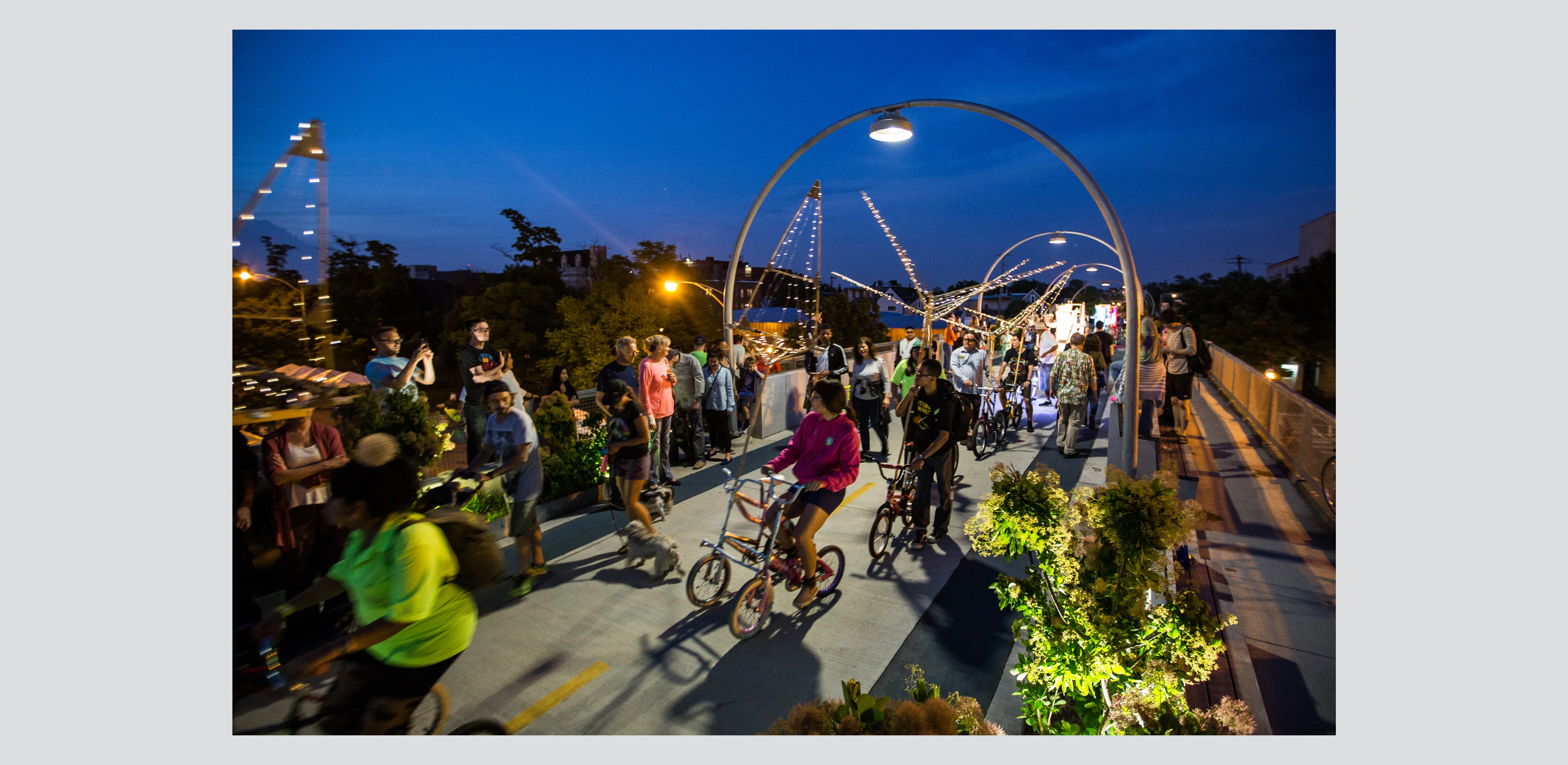 2.7 miles of elevated trail 39 railroad bridges 6 access parks 13 access points More than 1 million annual visitors $95 million project budget Connecting 4 neighborhoods: Logan Square, Humboldt Park, Bucktown, and Wicker Park Less than a 10-minute walk from home for 80,000 residents, including 20,000 children