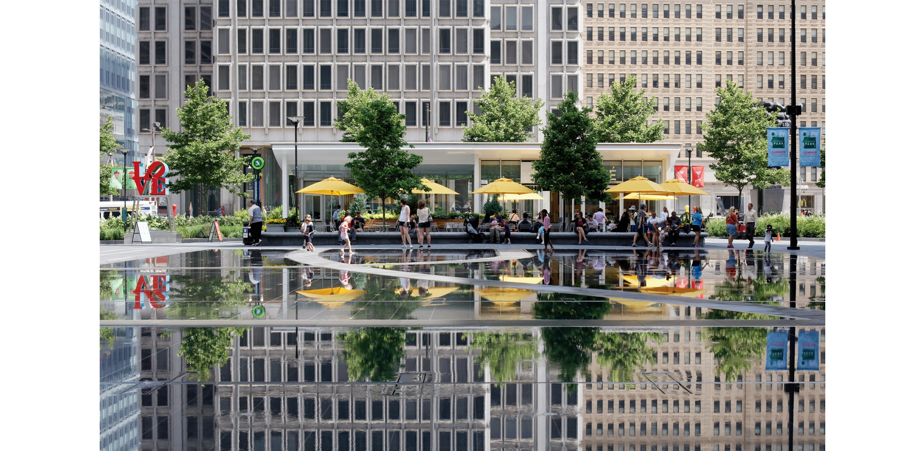 The redesign of Dilworth Park was conceived as a strategic initiative to improve the civic life and pedestrian environment of downtown Philadelphia. Despite its 2.5-acre size and prominent location at the foot of City Hall and atop the nexus of Philadelphia’s public transit system, the plaza was one that many Philadelphians avoided. Built in the 1970s, the plaza and transit concourse below formed a maze of numerous stairs, lacked ramps or elevators, and was subdivided in ways that prevented clear sitelines to the street or the transit corridor below. Additionally, the space had suffered from years of deferred maintenance leading to decreased transit use, crumbling site furnishings, graffiti, non-functioning fountains, and an uneven canopy of overgrown and diseased trees. The urgency to revitalize the long-neglected plaza was clear. The site not only needed to be a safe and accessible hub for 70,000 daily transit users, but its location meant that it also had the potential to be reinvented as a vibrant and vital civic space, the true heart of the city. William Penn envisioned this when he originally planned Philadelphia with five main public squares distributed throughout the city. This site, known then as Centre Square, served as the location for the city’s innovative steam-driven waterworks and first public fountain. The vision for the revitalized plaza, now fittingly rebranded as Dilworth Park, emerged at the confluence of these needs and ideals: a celebration of the civic enterprise, life, movement, and evolution of the city as a welcoming place for all. As one of the most significant civic spaces in Philadelphia, the public, civic organizations, and city and state agencies needed a voice in the future of the new park space. The vision that arose focused on the need to create an accessible, democratic space that could live up to the historic character of Philadelphia City Hall without competing with it. The new park would also require financial support to provide activities and robust maintenance throughout the year. This was made more challenging as Philadelphia endured the Great Recession of 2008. Ultimately, one of the city’s Business Improvement Districts was selected to lead the redevelopment. The project began by developing a long-term lease management agreement with the city, identifying funding sources, and coordinating a complex web of interagency meetings and approvals. Collaboration and an integrated design process was essential for the success of this project. The client assembled a team of landscape architects, architects, fountain and lighting designers, structural, civil, and mechanical engineers, and even an internationally acclaimed artist to realize the public ambitions of the park. The collaboration process was not limited to the expertise of consultants; an extensive public engagement process helped to fundamentally shape the design, with nearly 60 public engagement meetings held over the project’s six-year duration. A hallmark of this effort was a public exhibition at City Hall designed by the team, which followed the history of the site and its place in the history of Philadelphia’s social and economic life. The design of Dilworth Park is deceptively simple, but it is shaped by the difficulties of understanding human needs and scale for physical comfort, secure surroundings and the design of flexible space that does not lose its charm when hosting a crowd or during quite moments when only occupied by a few. The new park needed to be vibrant and flexible without competing with the sculpted façade of City Hall. The technical engineering was another considerable feat, given that the park that is the ‘roof’ of the transit system below. In many places the requirements for the fountain, paving, and planting needed to be sandwiched within a structural slab depth of a mere three feet or less. The design is intentionally horizontal, with the exception of the pair of gracious arcing pavilions that descend to the transit concourse below and draw natural light and air to the bustling transit concourse. Along the edges, groves of trees and raised planting beds wrap the park, separating it from the surrounding traffic and providing shade and sanctuary from the bustling city streets. The form and location of these planted retreats help to navigate the gently sloping grade change between the street and park, while providing a welcoming entry and ample, comfortable seating integrated along the edges. After restoring the entire site to street level, the design team incorporated a variety of spaces: transit gateways, a café, a lawn, and a flexible plaza animated by a dynamic scrim fountain. Elegant plantings of trees and shrubs frame the activity and help buffer street noise. To foster year-round interest, the team selected plantings reflective of the native plant communities of the Mid-Atlantic ecoregion: sweetspire and viburnums with their early blooms in April and May, summer blooms of mountain laurel and false spirea, and autumnal golds and reds of locust and maple trees, oakleaf hydrangeas, and red twig dogwood stems. During winter the panicum and purple love grass hold their structure in dormancy. To reduce runoff and meet Philadelphia’s stringent green infrastructure requirements, rainwater is captured and diverted to a stormwater catchment and filtration system integrated throughout the park. Along with the planted areas, the stormwater system of the park has reduced the amount of impervious surface area by 38%. Through the day, Dilworth Park functions as an organized thoroughfare for commuters, a haven for city employees, and common ground for citizens and visitors arriving via public transit below; comfortable for both daily use and large events. Most importantly, it is a place of respite where tourists can rest, families can bring their kids, workers can enjoy lunch, and the city can come together. The team tested myriad scenarios before achieving the f