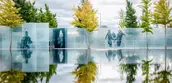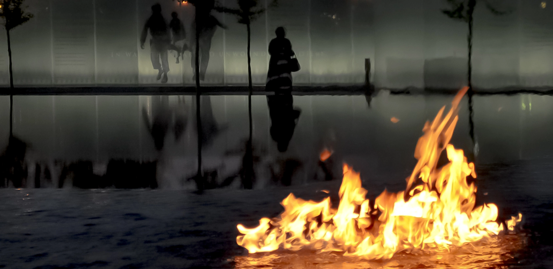 ENDURING MESSAGES. Veterans’ stories often start with trauma and a moment of realization that one’s life has changed. These narratives shift in their particulars but hew to a recognizable pattern, in which the change is not only the loss of a limb or an affliction of the mind but can also call into question a person’s identity. This distinct form of trauma frequently requires care that is as intensive as the diagnosed injury. Despite this, many veterans possess a startling capacity to re-imagine their existence and rise from the ashes of their injuries into a new life. AVDLM is inspired by this resilience, from which the American story also reemerges anew. Acknowledging and sharing these histories in a national memorial offers long-overdue public recognition for the private suffering of our country’s disabled service members. During the design process, the team compiled stories from thousands of wounded veterans in the form of oral histories, letters, manuscripts, and memoirs reaching back to the Civil War. The landscape architect’s concept for AVDLM, Fire in the Grove, captures the tension of these experiences. The fire depicted is the Memorial’s physical and symbolic centerpiece, embodying the elemental forces of injury, loss, and renewal. The unlikely emergence of this element through water, a timeless symbol of rebirth, is a fittingly beautiful testament to the spirit of survivors. This pairing, located within a grove of trees, speaks to the difficulties that veterans must continue to endure after a war is over. In order to properly honor these patriots, the Disabled Veterans Life Memorial Foundation, Inc. (DVLMF) fought to secure a site with elevated visibility and prominence amidst Washington’s most revered memorials. The organization worked with the National Park Service (NPS) to secure a site within sight of and a short walk to the Capitol, located on the daily paths of federal employees who make decisions that affect our military and veterans on Capitol Hill. DESIGN ELEMENTS. Inspired by veterans’ stories of vulnerability and strength, the design team created a contemplative urban setting of remembrance and reverence with enduring site elements. The landscape architect centered the design around the memorial flame and star fountain. The five points of the star, a traditional emblem of American arms and national unity, represent five branches of the military. These are also identified by bronze seals set into the paving. It is a central gathering place for family, community, and companions; a beacon in darkness; an emblem of hope. Visible day and night from the Capitol, it draws visitors from the National Mall and offers a solemn reminder of the price of freedom. The fountain can be run year-round, yet the design accounts for use with or without water and its reflecting pool drains quickly to become a platform for events and rallies. The landscape architect built full-sized mockups to test the dimensions of the 30” high star and 10” high reflecting pool, which are meant to be enjoyed regardless of one’s mode of circulation. Further study went into the development of a pressure-plate safety detection system that is unobtrusively integrated into the design. Its pentagonal granite platform is mounted over a sunken well that surrounds the burner column. This holds a pressure-sensitive plate that triggers a shutdown of the flame should a person attempt to enter the star fountain. Meanwhile, the fountain’s pump room is hidden in the broadest section of memorial wall. Surrounding all this, a Memorial Grove of 69 ginkgo trees, chosen for their persistence as an ancient species, occupies two-thirds of the site. Their presence is a symbol of healing and provides a blaze of golden color in the autumn around Veterans Day. Supplementing the gingkoes are 23 pond cypresses, selected for their texture and mature size, which are ideal for screening buildings across the street. These trees also support the site’s stormwater needs in a riparian planting bed that captures and filters site water along 2nd Street. Nearby, disease-resistant elms line Washington Street, supporting the streetscape of the surrounding blocks. Balancing the needs of an open plaza with optimal tree growth, the landscape architect used expansive horticultural soils in a Silva Cell system that allows for 115,000 cubic feet of enriched soil. Soil depth ranges from 3’ to 7’ deep between fragrant shrubs and the grove. Flexipave, a porous paving system approved by NPS, is also used around the trees for easy maintenance. Three translucent glass walls known as the Voices of the Veterans peak through the trees, set with bronze sculptures, photographic etchings, and inscriptions that the landscape architect collaborated on with an artist. Interweaving visual images of the wounded and their caretakers with experiential, first-person text strengthens the universal narrative and makes their stories accessible to a diverse audience. The glass runs east to west, buffering visitors from the noise of a nearby highway. The landscape architect sited these features to take advantage of the sun’s orientation and pedestrian circulation across the site. In effect, the walls’ appearance changes dramatically with the sun’s movement, offering a cinematic immersion that expresses the ever-changing reflections of visitors, trees, and seasons. In a city flush with inert commemoratives, these walls embody a temporal narrative representative of their subjects. The 48 frameless glass panels composing the walls are 2 ¼” thick, composed of five layers of glass, and laminated using a liquid polymer. Photographic images and text are cut onto different layers of each panel, offering the imagery additional visual depth. The silhouetted bronze figures, created using a lost wax method, are finished in a green patina that can be approached and touched from the nearby path. Both the glass walls and the bronze statues sit flush 