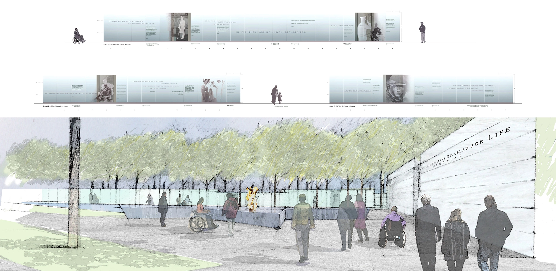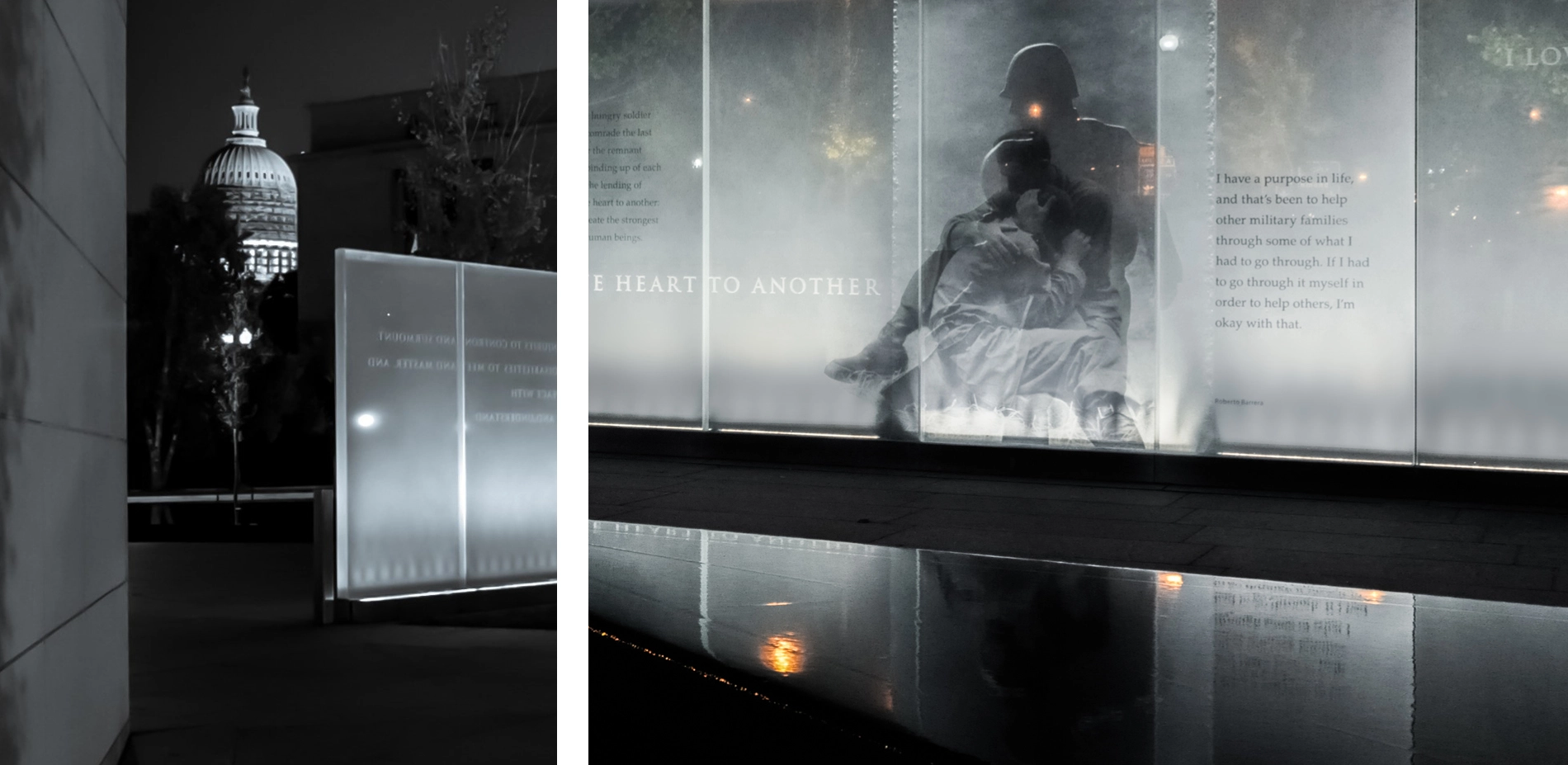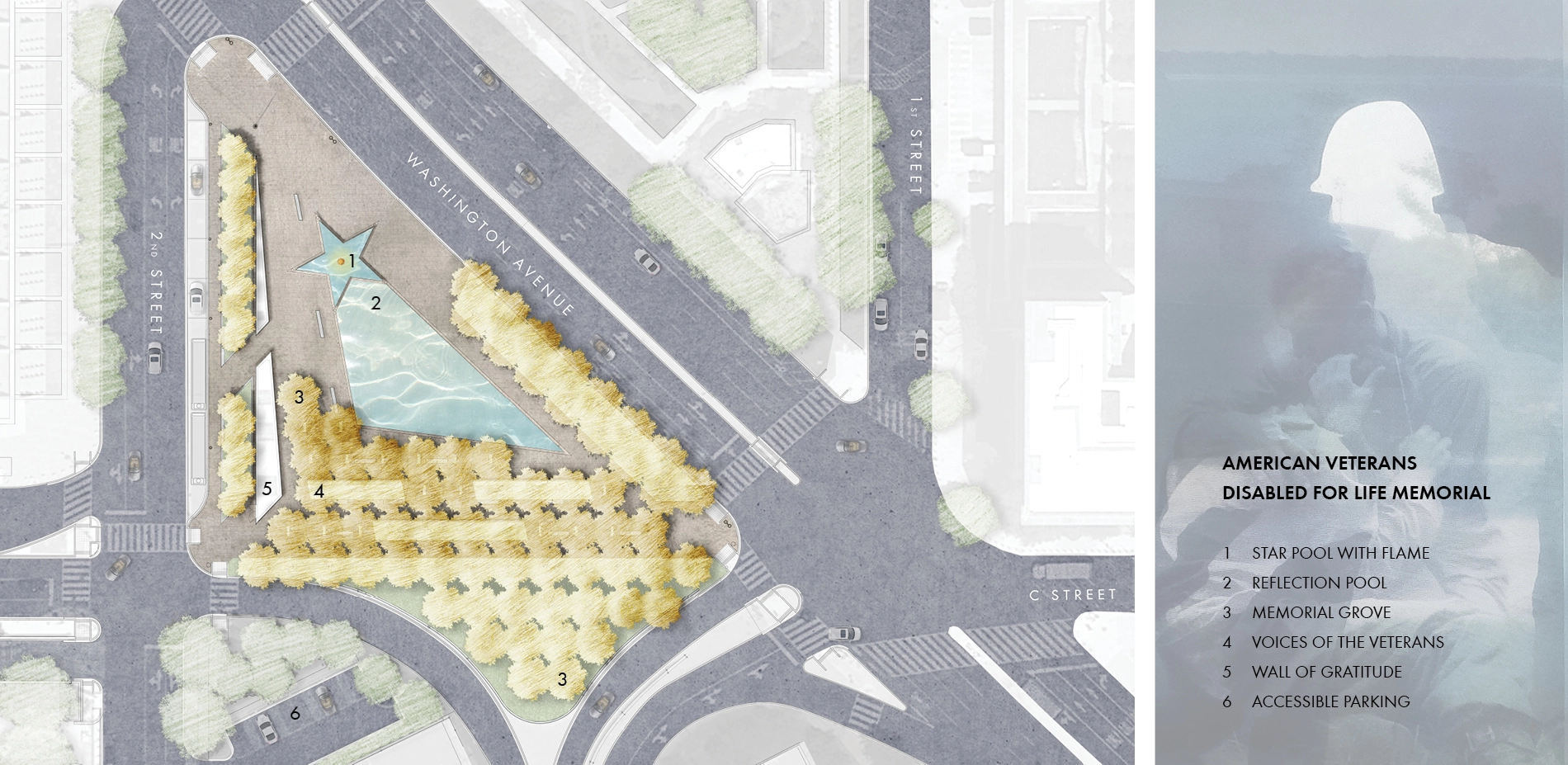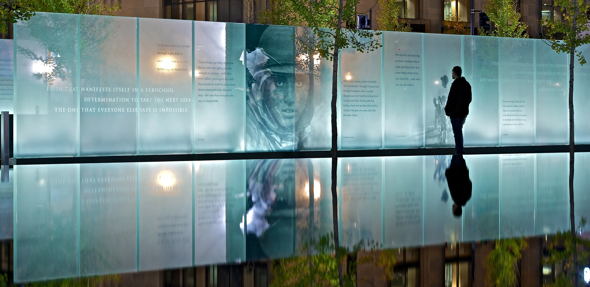 Of the innumerable challenges that face America’s veterans, among the most fundamental is their difficulty in being seen for who they are and what they’ve been through. The American Veterans Disabled for Life Memorial (AVDLM) honors our veterans across generations and military branches, recognizing the permanent disabilities that service women and men have suffered on behalf of our freedom. This setting is distinctive in the nation’s capital as a memorial that venerates the living; a place of solace where veterans and citizens can join each other to support our wounded while celebrating their survival. AVDLM ultimately pays tribute to the life and liberty that veteran patriotism affords our countrymen.