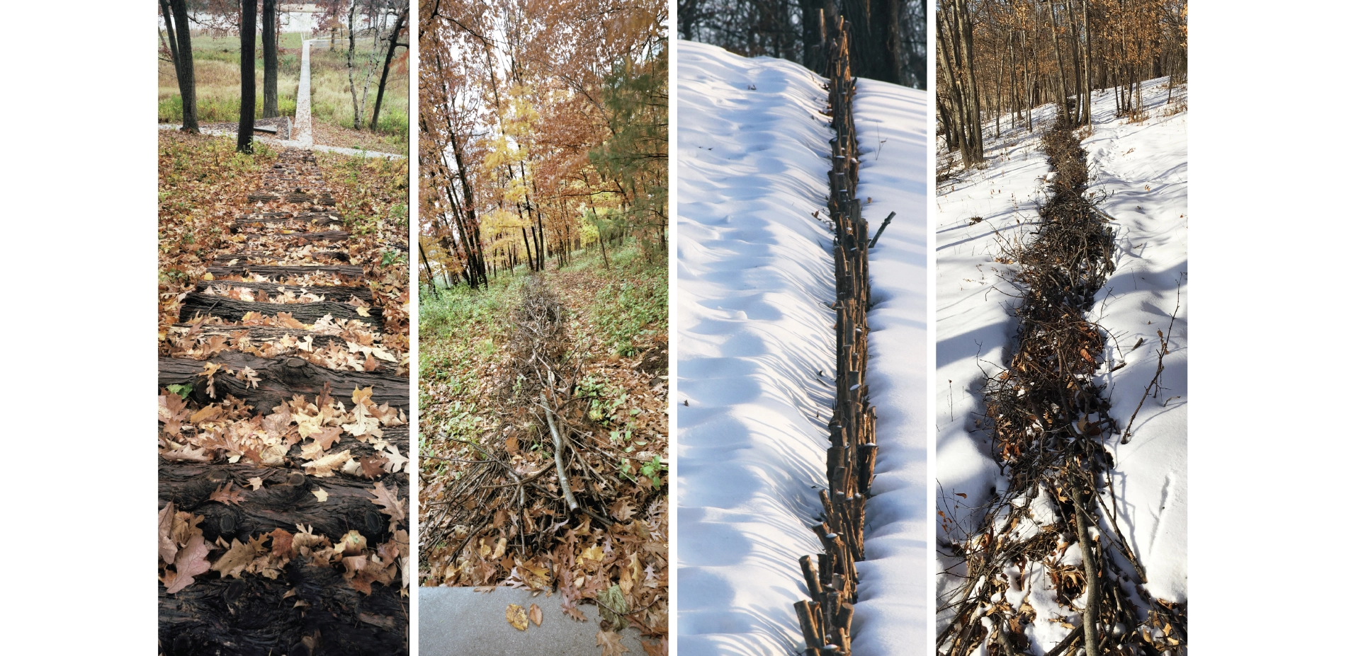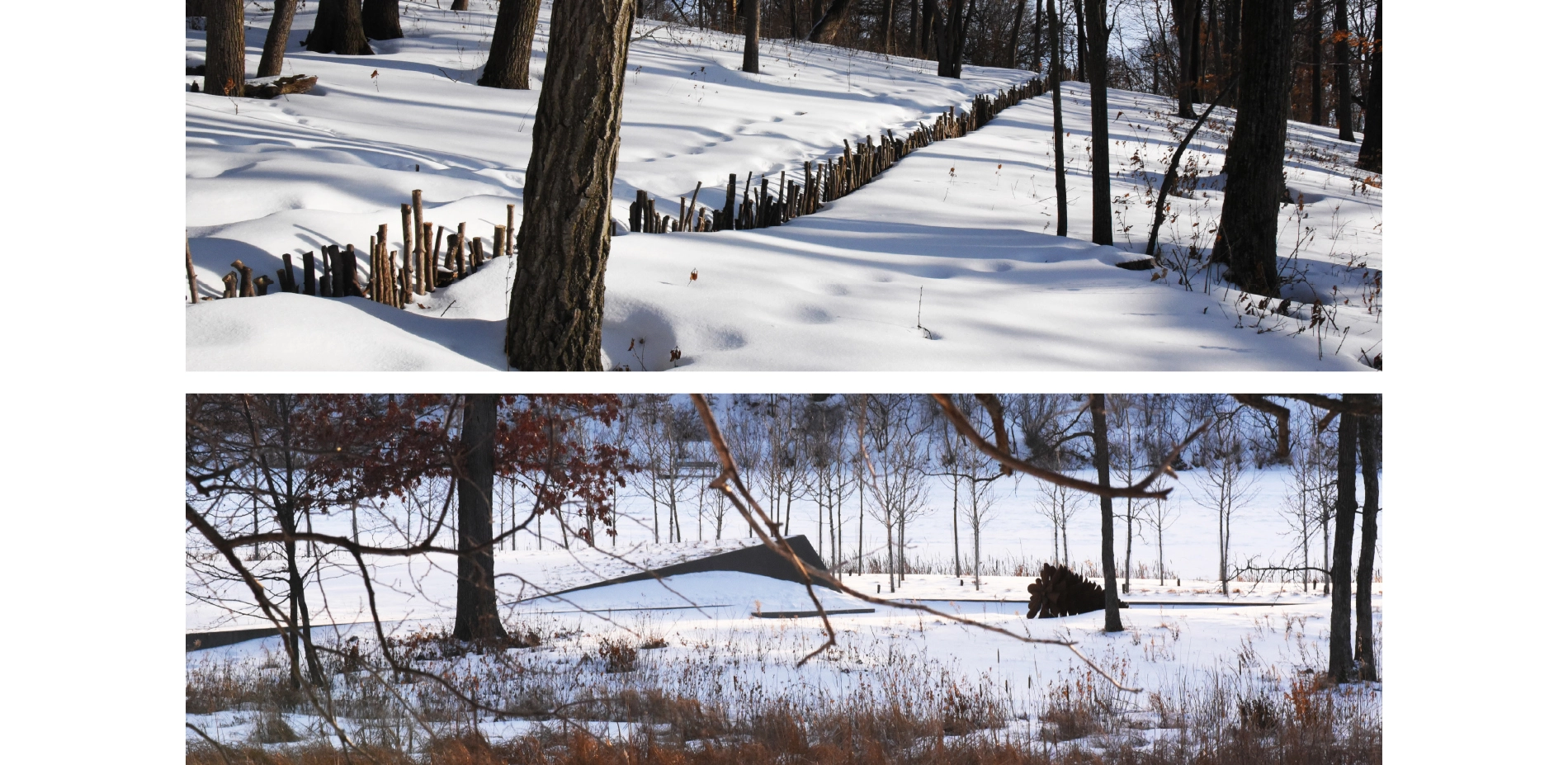 Art, ecology, and restoration merge in a dynamic circulation network of exploration and reflection surrounding a residence on Lake Marion in Minnesota. Twenty-two acres of ecologically degraded landscape were delicately restored around the residence, and an interdependent network of art and accessible pathways was designed to immerse users in their surrounding environment. Linear paths extend in dramatic contrast to the undulating landscape and exaggerate the characteristic topography of the area. Removed invasive species provide the raw material for five distinct art installations that vary dramatically with seasonal cycles. Intersections form striking nodes for contemplation and relaxation amidst the rare diversity of the restored landscape.