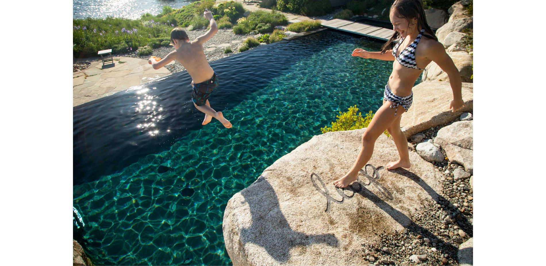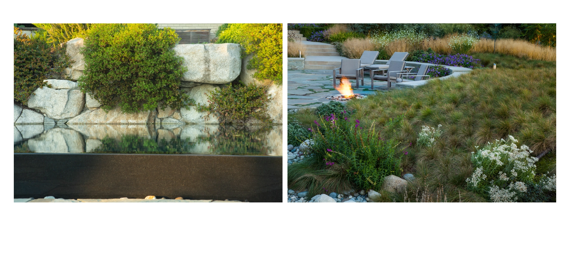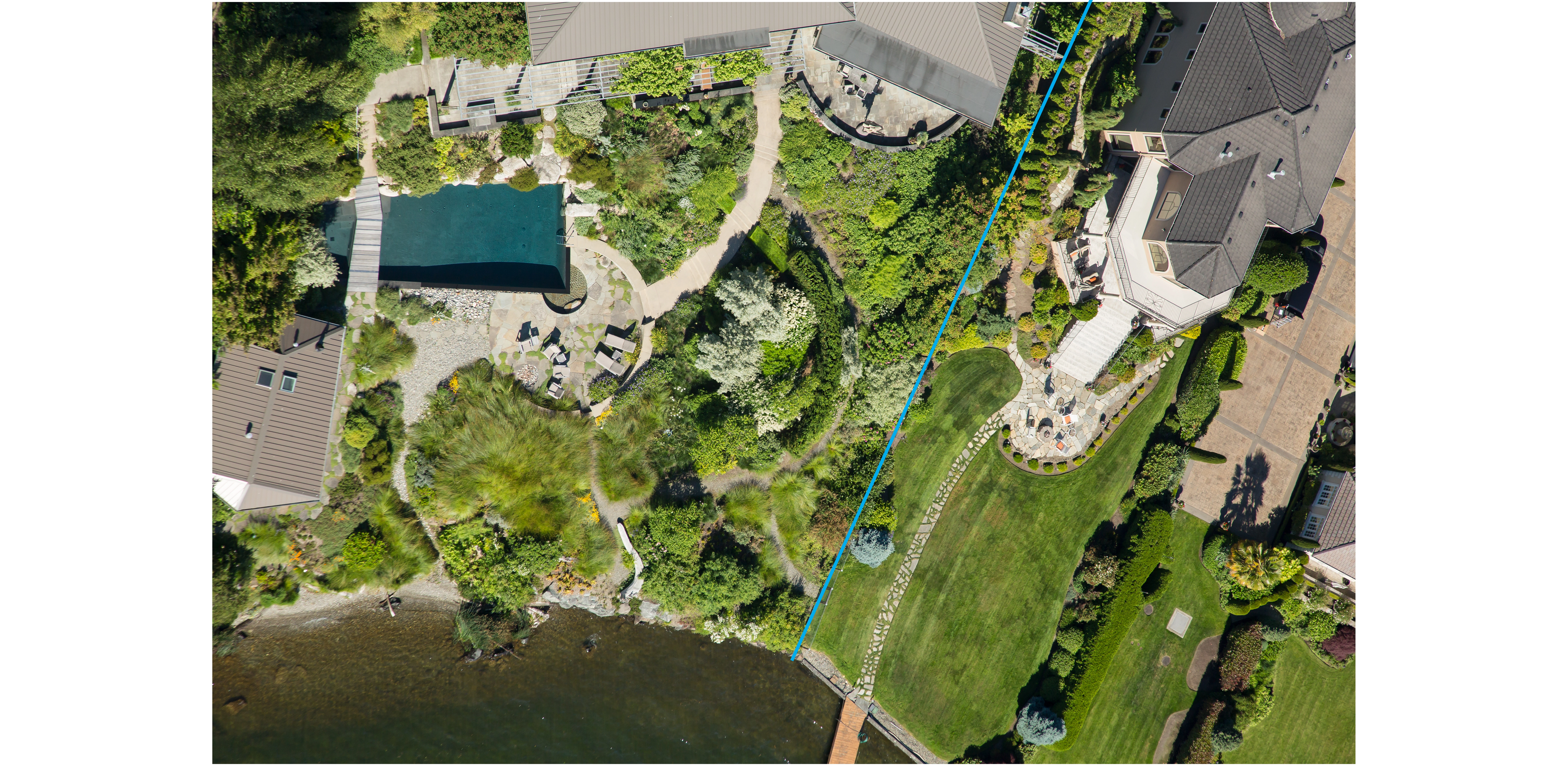 A SHORELINE RE-IMAGINED The south-west facing property occupies one acre on the suburban shores of Seattle's Lake Washington. Eighty percent of this lake is ringed by some form of built barrier, frequently backed by intensively managed lawns - both of which threaten the lake's ecology and riparian habitat. With 150 feet of shoreline, the property's potential benefit to local wildlife was choked off by a large concrete bulkhead, installed in the 60's in a misguided attempt to ameliorate boat-wave impact on the lakeshore. Fostering a greater connection between people and nature at the land-water interface became the project’s main mission. The clients were discerning partners looking to redefine the residential experience. The expectations and demands placed on urban/suburban home landscapes are typically limited to recreational uses and set notions of visual attractiveness. Challenging that, A Shoreline Re-Imagined sought out a broader definition of "garden": one that links it to the larger landscape, restoring its indigenous flora, increasing its attractiveness to the region's fauna, and encouraging engagement with native plants and wildlife. Traditional recreation needs were still catered to, but many new ones were created; the pleasurable experience of being a part of nature being one of them. Inspiration for the design came from three sources: the client's frequent sojourns to Seattle's Olympic Sculpture Park, which features a reclaimed beach; a kayak trip with the clients to explore the wildflower-rich Nature Conservancy preserve of Yellow Island; and a combined wish to create a hopeful, inclusive habitat for all. MAKING THE GRADE The challenge of tethering a suburban landscape to its native, natural elements - while still facilitating a multiplicity of recreation uses - was considerable. It was met two ways: through design focused on creating specific new experiences and a corresponding follow-through with extensive re-grading. With no available land access, heavy equipment was brought in by barge and used to dismantle the bulkhead. Lawn was removed and 160 cubic yards of soil was redistributed, creating a diverse topography. The energy of the land is now changed. No longer limited to a single-shot view of lawn/bulkhead/water, the house now overlooks a dynamic scene with an interlinked foreground, middle-ground and background. No longer severed by a bulkhead, the main terrace and new living shoreline are seamlessly connected. Indeed, the new beach now extends some 70 feet inland to terminate at the Pool. The undulating landform features a broad mound (the meadow) that affords privacy to the Sunken Terrace. This highpoint, when coupled with the gully, builds an element of surprise for kayakers walking up from the beach to explore the landscape. The new Beach House, perched above this deep gully, has gained a sense of vantage. Re-contouring the site has given the eye multiple opportunities to pause and engage. The garden has acquired the complex character of a natural landform and, with re-wilding, is increasingly perceived and used as habitat. This has added significantly to the client's enjoyment and sense of place. WILD TRANSITIONS Together with land-forming, planting design has played an important role in creating cohesion within the space. Informed plant selection has not only deepened the landscape's narrative but also ensured that its story is experienced year-round. To extend visual interest throughout the seasons, succession planting was employed, using both native and non-native plants. Ornamental plantings closer to the residence now transition into increasingly deep drifts of wild, native vegetation as one approaches the living shoreline. Natives respond to the mild winters and wet springs of the Pacific Northwest and were selected for their early-blooming characteristics. Extensive colonies of native camassia and other spring bulbs such as shooting star and dog's-tooth violet (all denizens of Yellow Island), are now established. The natives leaf out early to supply food for reproducing insects and wildlife. In very early spring, flowering currant provides a lifeline for overwintering hummingbirds. By early summer, with broods hatched and insect life-cycles complete, many natives go dormant. This is when the non-natives in the succession planting take over. Ornamentals such as cardinal flower, Afghan sage and Japanese anemone - chosen for their later-bloom cycles, durability, and aesthetic appeal - reach their floral peak just in time for summer, when people use the space most intensively. Allowed to fully express itself, plant life was used to frame and shape human experiences, with native biota uniquely anchoring the land to the region. A LANDSCAPE AT PLAY With landform and plant-life determined, circulation and built elements complete the composition. New modernist built elements such as the Pool, Beach House, and Boat House were linked via a playful circulation system. Meticulous care was given to the nature and location of spaces to best anticipate and accommodate the uses and movements of humans (social choreography) and other animals. Beginning at the property's entrance, the eye is drawn to compass points embedded in stone that encircle the lawn. The circular form is repeated lakeside via sweeping curves leading to the Sunken Terrace - dramatically pierced by the acute angle of the Pool. The Pool, Beach House and pathways come together to make the Sunken Terrace the key social space of the design and a lively counterbalance to the formal dining of the main terrace. Set at the intersection of ornamental and wild, the Pool is intended as an interactive art piece. Its dark coloring obscures the confines of the water volume and allows for a meditation on reflected sky and clouds. It's also immensely popular with kids. One of the client's favorite experiences often comes at the end of a social evening, with a walk down to the water's natural edge. Adirondack chairs on