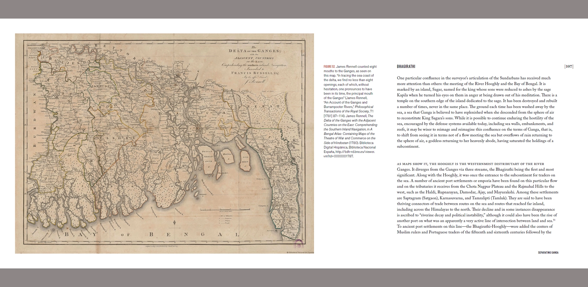 The Invention of Rivers draws attention to the river as a product of design facilitated by a uniquely endowed line in a chosen moment of time in the hydrologic cycle. This line, imaged on maps, etched in the imagination, and enforced on the ground with regulations and constructions, has become a naturalized presence. Today, however, with the increasing frequency of flood associated with climate change alongside unwise development, the line of the river has come into sharp focus with proposals for levees, natural defenses, pumps, and retreat. These responses raise questions on where the line is drawn, but also on the separation that it facilitates. Is this separation found in nature or does nature follow from its assertion? While the book interrogates the river in general, it takes a closer look at the Ganges, tracing the ways in which it has been pictured, mapped, explored, and created over millennia. But it also documents rain’s resistance to being made into a river, a resistance that points to design grounded in another moment of the hydrologic cycle.