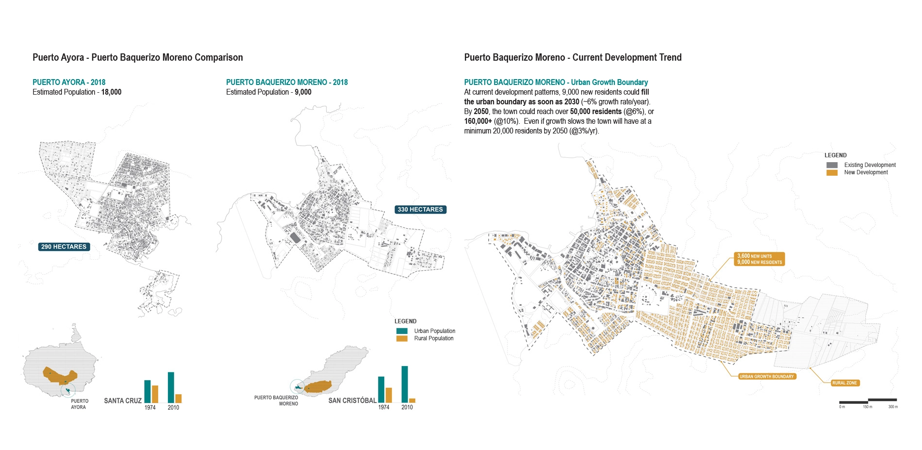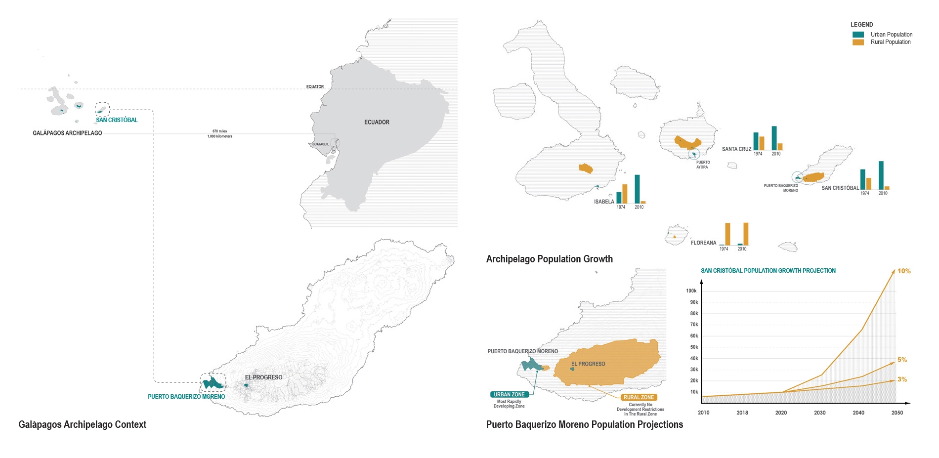 The Galápagos archipelago is one of the most important conservation sites in the world. 97% of its land is protected in the National Park and 95% of its native biodiversity is intact. However, the Galápagos is not just home to giant tortoises and blue-footed boobies - a rapidly growing population of ~34,000 people are concentrated on four of its thirteen islands. Our work on San Cristóbal Island focuses predominantly on Puerto Baquerizo Moreno, a town of 9,000 residents. San Cristóbal is the only island with a fresh water source. At recent growth rates of over 6%/ year, compared to 2% on the mainland, San Cristóbal’s population will double in just over ten years, and could fill its urban boundary in 15-20 years. This would both threaten the ecological resources it relies upon while locating residents in precariously low-lying, flood prone locations. With little urban planning, San Cristóbal lacks a strategy for protecting its most vital resources: water. Our project addresses this gap through three strategic and ongoing parts: urban growth; topographic mapping; and water sampling.