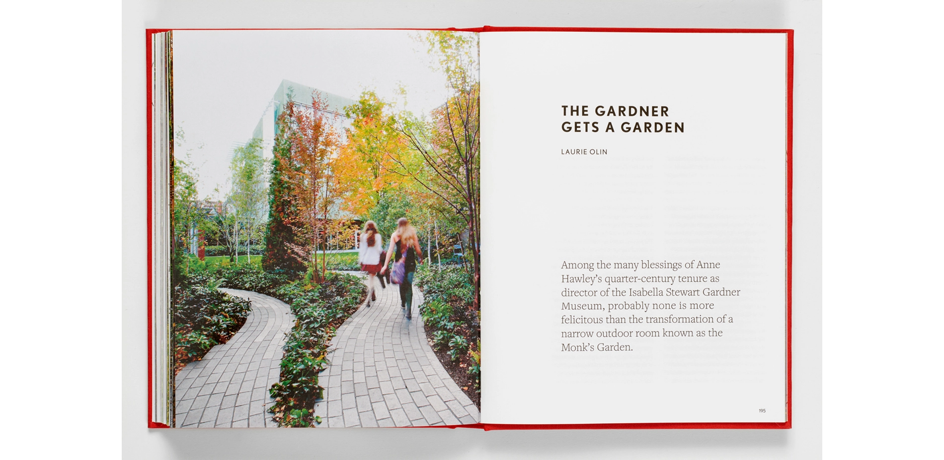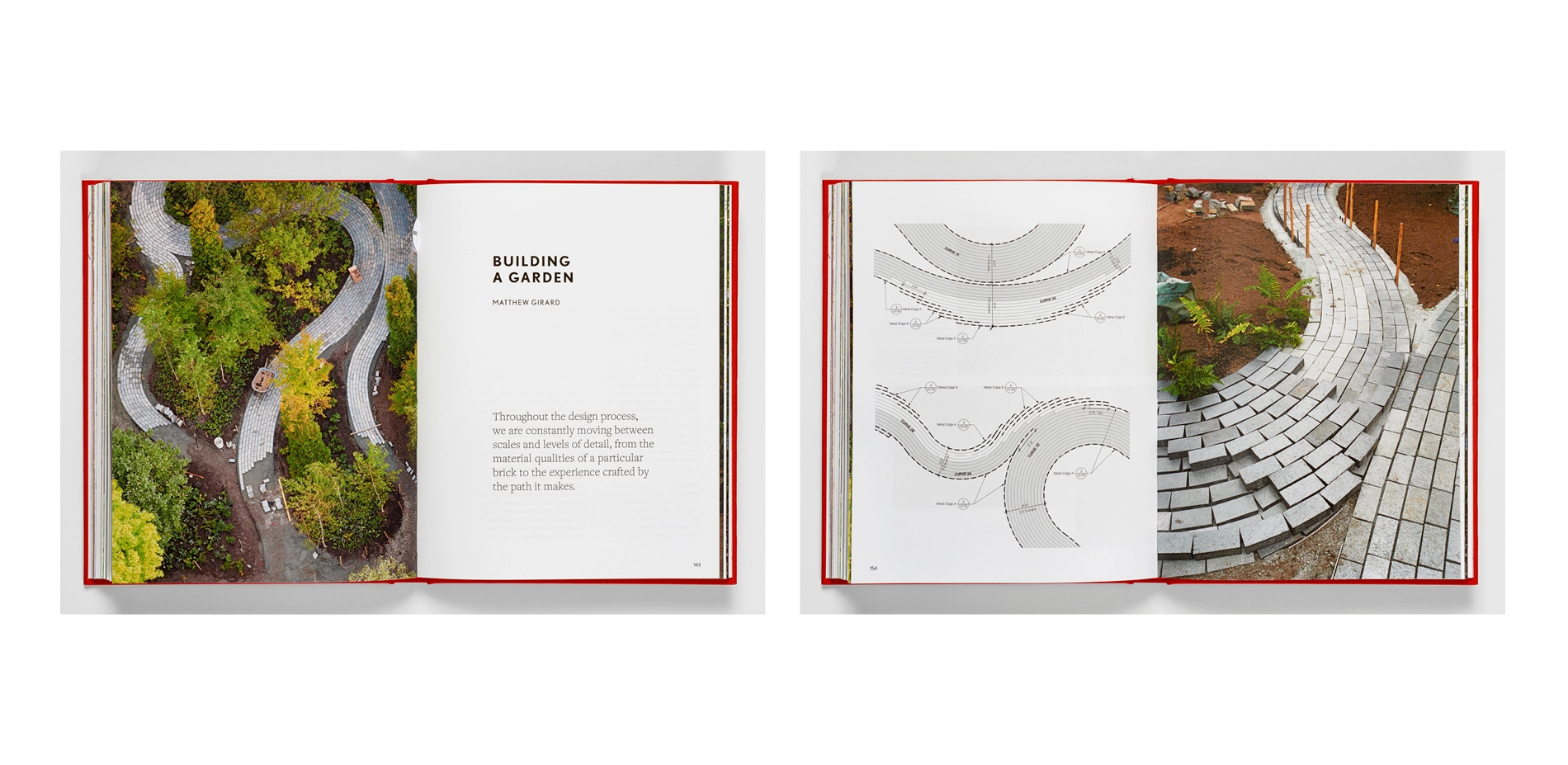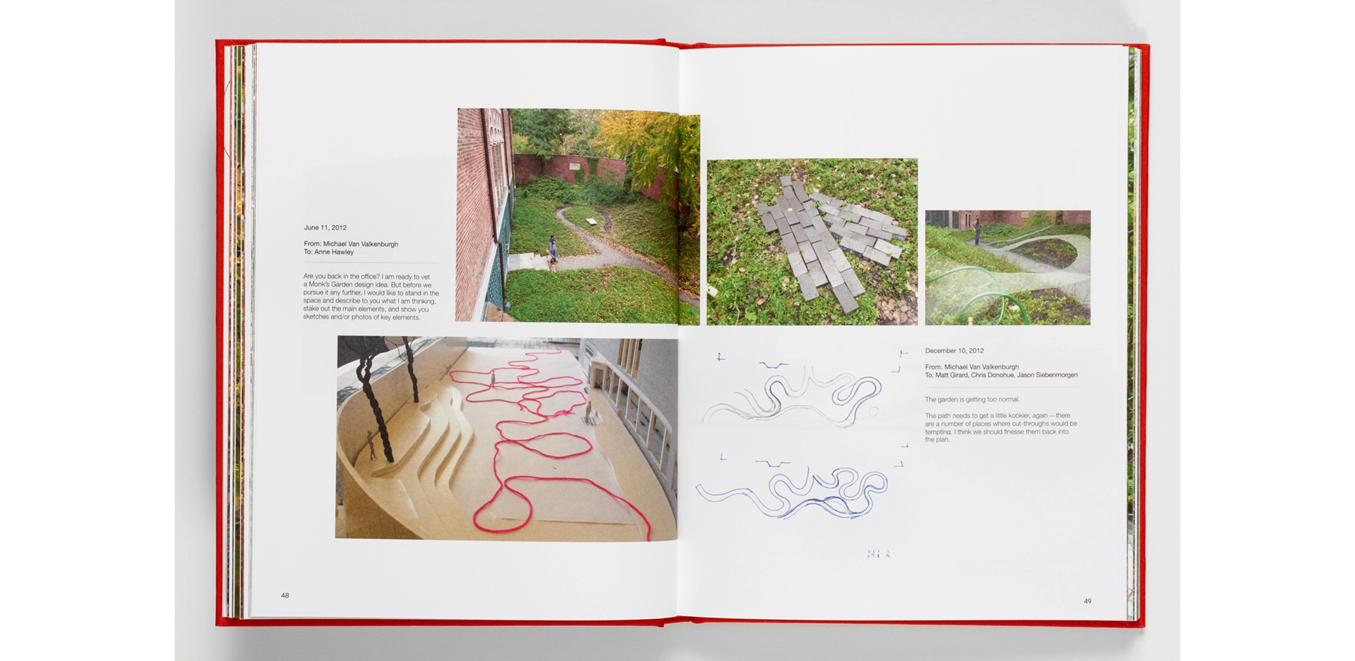Designing a Garden: Monk’s Garden at the Isabella Stewart Gardner Museum In Designing a Garden, Michael Van Valkenburgh takes the reader along the journey of designing the Monk’s Garden at the Isabella Stewart Gardner Museum in Boston. In the process, Michael reveals the inner workings of his design practice and draws upon knowledge gained over decades of landscape-making. The book dispels notions of the strictly linear design process that is sometimes crafted specifically for design presentations, providing glimpses of the unexpected turns and ideas that are tried, tested, rejected, and reworked over the course of making a landscape. The essays examine the many design directions explored during the design process. Many of these ideas were quickly rejected, but they informed more fruitful decisions. These considerations also include Michael’s personal experiences which contribute to the depth of the landscape’s built form. Designing a Garden developed from an earlier publication, titled Monk’s Garden, that won an ASLA Honor Award in 2014 for the Communication category. Monk’s Garden was initially made to accompany an exhibition at the Gardner Museum. After the exhibition, the book became a useful tool within the MVVA office as an example of how to advance a landscape design. MVVA used it so much that it became evident that this document had valuable lessons to teach about the design process in general and that it could be expanded in a way that would be accessible to an even wider audience. Design and Organization Designing a Garden is organized around five essays: “Designing a Garden,” “Paths,” “Plants,” “Building a Garden,” and “The Gardner Gets a Garden.” These essays complement visual artifacts of the design process. Images of sketches, mock-ups, and construction progress photos lead the reader along the way. A full plant list follows the essay title “Building a Garden,” written by MVVA project manager Matt Girard. The closing essay is written by acclaimed landscape architect Laurie Olin, who describes his impressions of a walk through the garden shortly after its completion. The book closes with a photo essay of the finished garden that immerses the reader in the paths, plants, and space of the garden. The book invites the reader to feel engaged in the highly specific and sometimes personal process of making a garden, and to enjoy the finished product. Cara Walsh, a book and landscape designer, designed the book to present the messy process of making a garden in a format that is accessible to experienced landscape architects and novice designers alike. The goal of the book design was to support and enhance the written text with rich images that reveal the design process, not just as a repository for everything that took place, but as a thoroughly considered step-by-step example of how a garden is made. Full-bleed images immerse the reader in the garden’s lushness, while cleverly formatted spreads pair process images with text from emails exchanged throughout the building of the garden to pull back the curtain on how the project took shape. The structure of Designing a Garden illustrates the nuts and bolts of making the Monk’s Garden and weaves in information about the thinking behind the design decisions and the creative process. The book is paced to achieve a rhythm that allows readers to contemplate the written words and delight in the powerful images. It seeks to illuminate how and why gardens are made, in addition to celebrating the finished product. In the process, the book mounts a case for the ongoing relevance of garden-making—not just as objects of admiration or status, but as places to be enjoyed and as human creations that have inspired a continuous process of learning, testing, retrying, and caretaking. Aspirations The book has two primary purposes. The first is to provide an example for new designers of how a landscape design comes together in a clear and detailed format. Rather than drawing general lessons from his body of work, Michael Van Valkenburgh felt that the best way to do this would be to follow a single project from inception to completion, allowing the reader to inhabit the inspiring and unpredictable world of a garden yet to be realized. A garden presents the most manageable scale and clear intention out of all landscape project types, and the Monk’s Garden’s powerful clarity of purpose embodied within its paths and plants made it the perfect case study to examine. The second purpose of Designing a Garden is to inspire young landscape architects to make gardens as a way to learn about their craft. The best way to learn landscape design is by doing, but because of the complexity, cost, space, and time requirements for many project types, it can be difficult for young designers to find opportunities to see the design process through from start to finish. This book argues for the importance of fighting to design and build projects, however small they may be. Audience and distribution The audience that inspired the creation of this book is young designers and landscape students, but the book’s writing and format makes it accessible to all people interested in design and landscape. Designing a Garden is widely available in art and design-oriented bookstores as well as online, maximizing the book’s reach. This first edition includes 4000 printed copies. The Garden MVVA was hired in September 2011 to design a new Monk’s Garden, following an expansion that more than doubled the size of the Isabella Stewart Gardner Museum. Surrounded by tall, brick walls on three sides and open to the Renzo Piano-designed new wing to the south, the garden has existed in the same location but in a variety of forms since Isabella Stewart Gardner founded the museum in 1903. Ann Hawley, the museum director at the time, wanted the garden to be a gift to visitors: a place that would lure them in and surprise them. After spending the morn