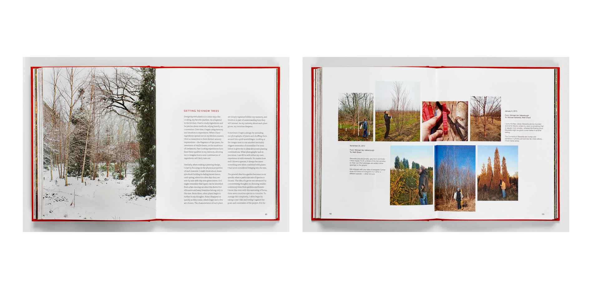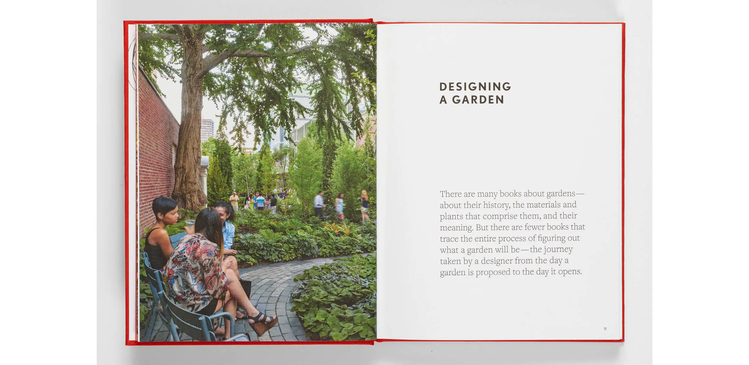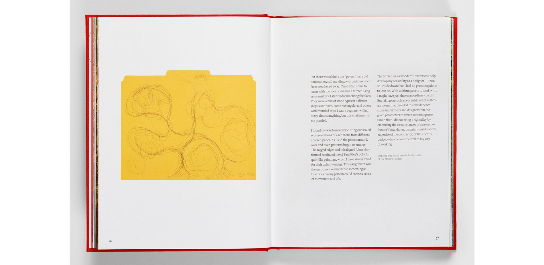 Designing a Garden: Monk’s Garden at the Isabella Stewart Gardner Museum In Designing a Garden, Michael Van Valkenburgh takes the reader along the journey of designing the Monk’s Garden at the Isabella Stewart Gardner Museum in Boston. In the process, Michael reveals the inner workings of his design practice and draws upon knowledge gained over decades of landscape-making. The book dispels notions of the strictly linear design process that is sometimes crafted specifically for design presentations, providing glimpses of the unexpected turns and ideas that are tried, tested, rejected, and reworked over the course of making a landscape. The essays examine the many design directions explored during the design process. Many of these ideas were quickly rejected, but they informed more fruitful decisions. These considerations also include Michael’s personal experiences which contribute to the depth of the landscape’s built form. Designing a Garden developed from an earlier publication, titled Monk’s Garden, that won an ASLA Honor Award in 2014 for the Communication category. Monk’s Garden was initially made to accompany an exhibition at the Gardner Museum. After the exhibition, the book became a useful tool within the MVVA office as an example of how to advance a landscape design. MVVA used it so much that it became evident that this document had valuable lessons to teach about the design process in general and that it could be expanded in a way that would be accessible to an even wider audience. Design and Organization Designing a Garden is organized around five essays: “Designing a Garden,” “Paths,” “Plants,” “Building a Garden,” and “The Gardner Gets a Garden.” These essays complement visual artifacts of the design process. Images of sketches, mock-ups, and construction progress photos lead the reader along the way. A full plant list follows the essay title “Building a Garden,” written by MVVA project manager Matt Girard. The closing essay is written by acclaimed landscape architect Laurie Olin, who describes his impressions of a walk through the garden shortly after its completion. The book closes with a photo essay of the finished garden that immerses the reader in the paths, plants, and space of the garden. The book invites the reader to feel engaged in the highly specific and sometimes personal process of making a garden, and to enjoy the finished product. Cara Walsh, a book and landscape designer, designed the book to present the messy process of making a garden in a format that is accessible to experienced landscape architects and novice designers alike. The goal of the book design was to support and enhance the written text with rich images that reveal the design process, not just as a repository for everything that took place, but as a thoroughly considered step-by-step example of how a garden is made. Full-bleed images immerse the reader in the garden’s lushness, while cleverly formatted spreads pair process images with text from emails exchanged throughout the building of the garden to pull back the curtain on how the project took shape. The structure of Designing a Garden illustrates the nuts and bolts of making the Monk’s Garden and weaves in information about the thinking behind the design decisions and the creative process. The book is paced to achieve a rhythm that allows readers to contemplate the written words and delight in the powerful images. It seeks to illuminate how and why gardens are made, in addition to celebrating the finished product. In the process, the book mounts a case for the ongoing relevance of garden-making—not just as objects of admiration or status, but as places to be enjoyed and as human creations that have inspired a continuous process of learning, testing, retrying, and caretaking. Aspirations The book has two primary purposes. The first is to provide an example for new designers of how a landscape design comes together in a clear and detailed format. Rather than drawing general lessons from his body of work, Michael Van Valkenburgh felt that the best way to do this would be to follow a single project from inception to completion, allowing the reader to inhabit the inspiring and unpredictable world of a garden yet to be realized. A garden presents the most manageable scale and clear intention out of all landscape project types, and the Monk’s Garden’s powerful clarity of purpose embodied within its paths and plants made it the perfect case study to examine. The second purpose of Designing a Garden is to inspire young landscape architects to make gardens as a way to learn about their craft. The best way to learn landscape design is by doing, but because of the complexity, cost, space, and time requirements for many project types, it can be difficult for young designers to find opportunities to see the design process through from start to finish. This book argues for the importance of fighting to design and build projects, however small they may be. Audience and distribution The audience that inspired the creation of this book is young designers and landscape students, but the book’s writing and format makes it accessible to all people interested in design and landscape. Designing a Garden is widely available in art and design-oriented bookstores as well as online, maximizing the book’s reach. This first edition includes 4000 printed copies. The Garden MVVA was hired in September 2011 to design a new Monk’s Garden, following an expansion that more than doubled the size of the Isabella Stewart Gardner Museum. Surrounded by tall, brick walls on three sides and open to the Renzo Piano-designed new wing to the south, the garden has existed in the same location but in a variety of forms since Isabella Stewart Gardner founded the museum in 1903. Ann Hawley, the museum director at the time, wanted the garden to be a gift to visitors: a place that would lure them in and surprise them. After spending the morn