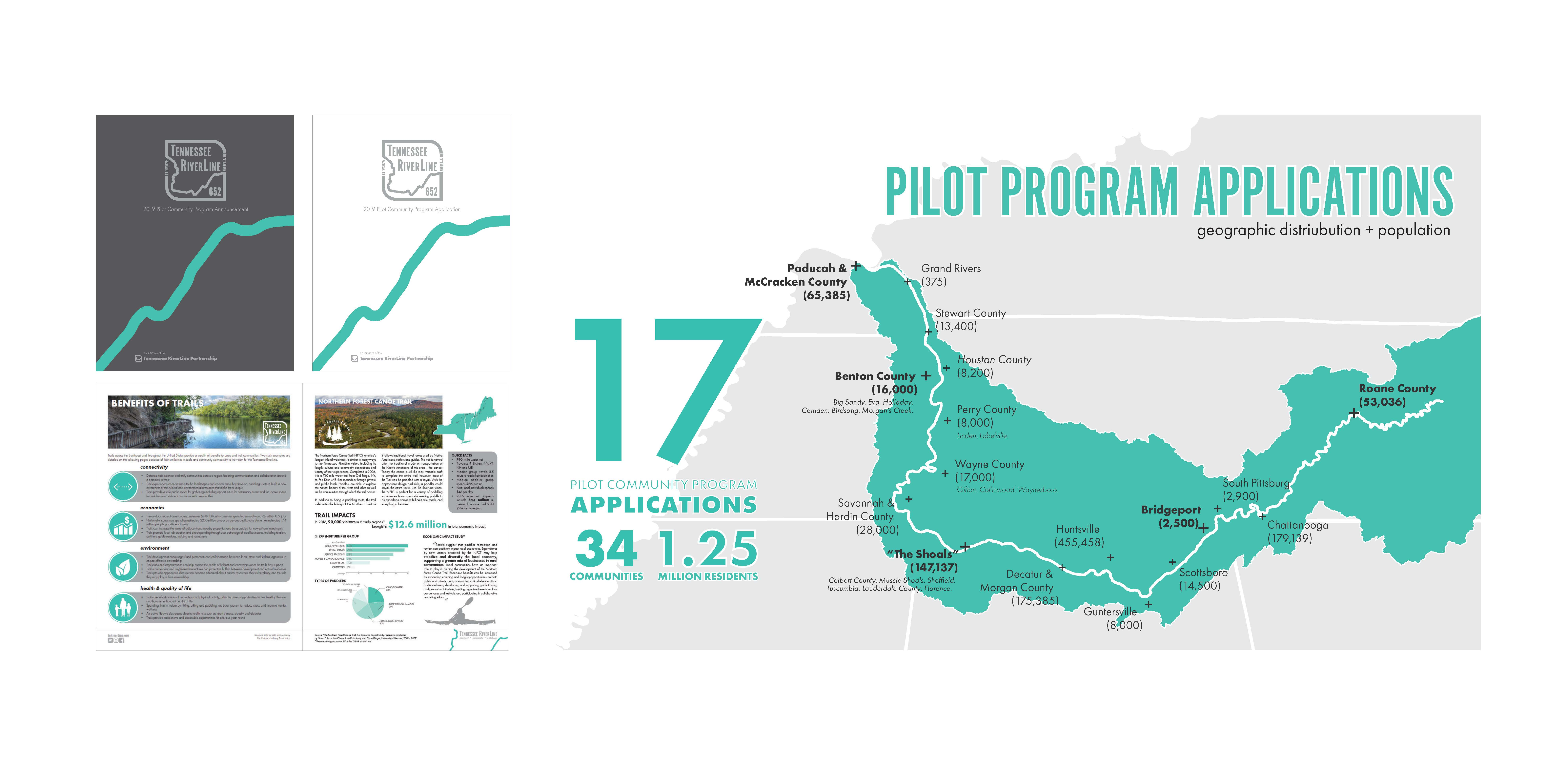 Program Overview: The Tennessee RiverLine is a transformative initiative that seeks to unlock the latent potential of our region’s most storied yet underutilized landscapes. It accomplishes this through the establishment of a continuous system of trail experiences along the Tennessee River’s 652-mile reach. Its realization is dependent on the participation of Tennessee River communities, their leaders, residents, and visitors in the process of shaping this audacious vision. 652 to YOU is an immersive program strategically designed to empower diverse community members to become authors of the Tennessee RiverLine vision. It does this by creating opportunities for participants to share their experiences and ideas, provide feedback, and develop a conversation around challenges and opportunities relative to each community’s unique relationship with the Tennessee River. Program Outcomes: 652 to You was designed to achieve a series of strategic outcomes. These included: 1. Share the current vision for the Tennessee RiverLine 2. Listen to new ideas that might be incorporated into the vision 3. Understand the existing perceptions, use patterns, and conditions related to the river and river access 4. Identify future opportunities through which communities can enhance its relationship the River 5. Understand how the Tennessee RiverLine Partnership can be a resource to help realize this enhanced relationship Intended Audience: All Tennessee River communities were invited to apply to host a 652 to YOU program. Five were selected, representing Tennessee River communities of a range of sizes, types, means, and capacities. The target audience for local programming included residents, local government representatives, parks and recreation offices, business and organization leaders, and local media. 652 to YOU’s Primary Message(s): 1. The Tennessee RiverLine vision: The Tennessee RiverLine is a continuous, multi-modal system of experiences along the Tennessee River from Knoxville, TN, to Paducah, KY, that: ● Celebrates the scenic beauty, rich diversity and storied history of the Tennessee River and the Tennessee River Valley ● Connects people and communities to each other, their river heritage and the Tennessee River landscape ● Catalyzes new investments in economic opportunity, social health and ecological stewardship 2. The Tennessee RiverLine offers a framework for your community to celebrate and enhance its relationship with the Tennessee River: ● Your community has a unique relationship with the Tennessee River today. ● The river is accessible today through immersive experiences and existing trail/access infrastructure. ● The river’s impact in your community can be enhanced through new investments that provide equitable access to all segments of your community’s population. ● Local efforts connect to establish a continuous system of experiences that becomes an international destination eco- and heritage-tourism. ● The resulting increase in river use promotes economic development and public health while inspiring new generations of river advocates and stewards. ● You have a part to play in shaping this future! Communication Methods: Application Recruitment: The solicitation for applications to the 652 to YOU program was sent to mayors, directors, and river champions in each of the 72 counties, cities and towns along the river’s reach through a designed mailing and email campaign. Local Event Promotion and Participant Recruitment: Five digital media platforms were developed by the student team and launched to promote the Tennessee RiverLine vision and the 652 to YOU program, including tnriverline.org and social media accounts. The student team collaborated with planning teams in each selected community to promote the local 652 to YOU program and recruit local participation. Various digital marketing and print communications tactics were integrated into community-specific media kits. A communications plan was developed to guide the summer-long promotional effort. Social media was a primary tactic used to reach targeted audiences More than 22,000 individuals were reached through these efforts. 652 to YOU Programs An immersive, three day program, 652 to YOU cultivated an unprecedented dialogue between community leaders and residents, agency representatives, organizations, and the Tennessee RiverLine Partnership. It includes four main elements to realize program outcomes: 1. Driving Tour and Leadership Workshop: Students and Partnership members accompanying local 652 to YOU planning team members on a driving tour that showcased existing Tennessee River access points and amenities, as well as landscapes of future opportunity. The tour established baseline understandings key to the ensuing half-day leadership workshop.This workshop engaged an average of 20 local business and government leaders in SWOT analysis, goal setting, action planning and prioritization activities. 2. River Experience: Local planning teams were asked to propose a “River Experience” that would allow the Tennessee RiverLine staff and community members to experience the Tennessee River. These events ranged from guided boat tours, community paddle events, and shoreline cleanups. 3. Community Engagement Event Community members shared their experiences and ideas for enhanced access to the Tennessee River, learned about and provided feedback to the vision, prioritized future investments in RiverLine elements, and built a conversation around the Tennessee River in their community. Four activities were tailored to participants with diverse engagement preferences. Map It!: The Map It! activity featured a table-top 6’x3’ map and a corresponding 12’x7’ wall mounted map of satellite imagery for the area. Participants were encouraged to interact with the maps by placing markers into areas where they currently engage in recreational activities or would like to improve in the future. What If?: What If? allow