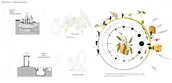 Complex social structures and inadequate infrastructure meet in Winneba, Ghana, where this group proposes a shade-giving, water-producing, waste-treating piece of sanitation infrastructure loosely based on local sacred groves. A pilot project initiates a biogas toilet system that converts waste to energy, allowing for on-site water purification and distribution; and fertilizer, feeding communal mango trees that provide both fruit and shade. Freeing women in the community from the burden of gathering water from farther afield, the project—built by residents, and expandable to adjacent neighborhoods over time—melds ecological benefit with social equity.