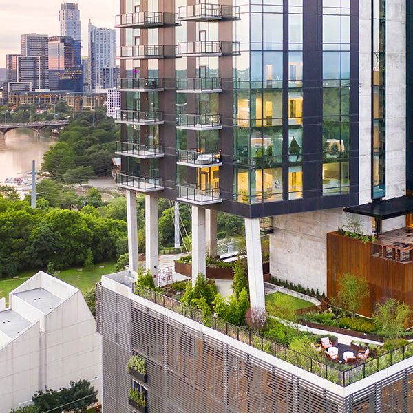 Soaring 100 feet above the shoreline of Austin’s Lady Bird Lake, 70 Rainey redefines multifamily urban living in a city experiencing rapidly changing technology, culture and innovation. Its Sky Garden, a verdant refuge devoted to recreation, leisure and contemplation, is defined by the diverse and native ecologies of the Texas Hill Country that weave together a sensorial outdoor living experience.