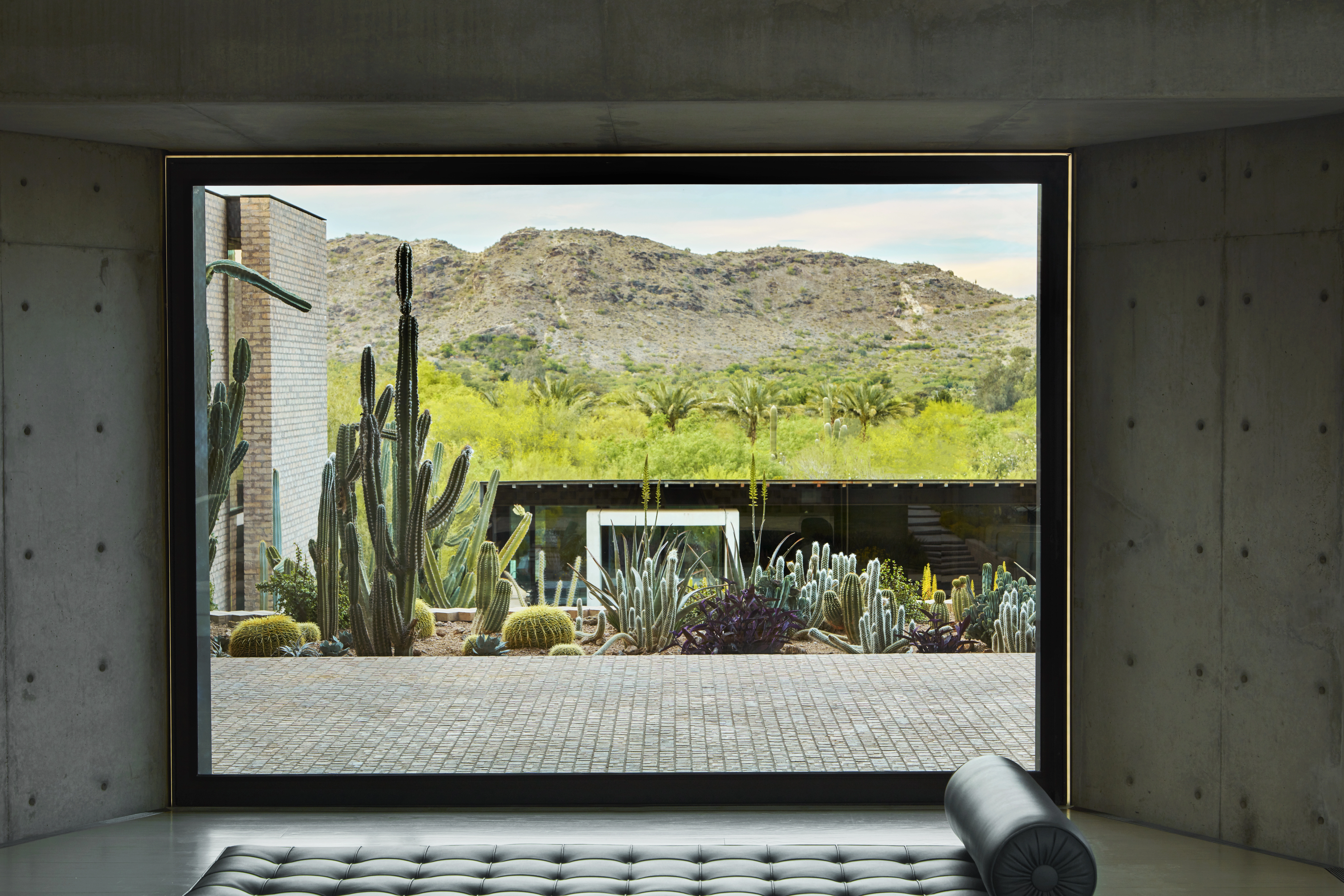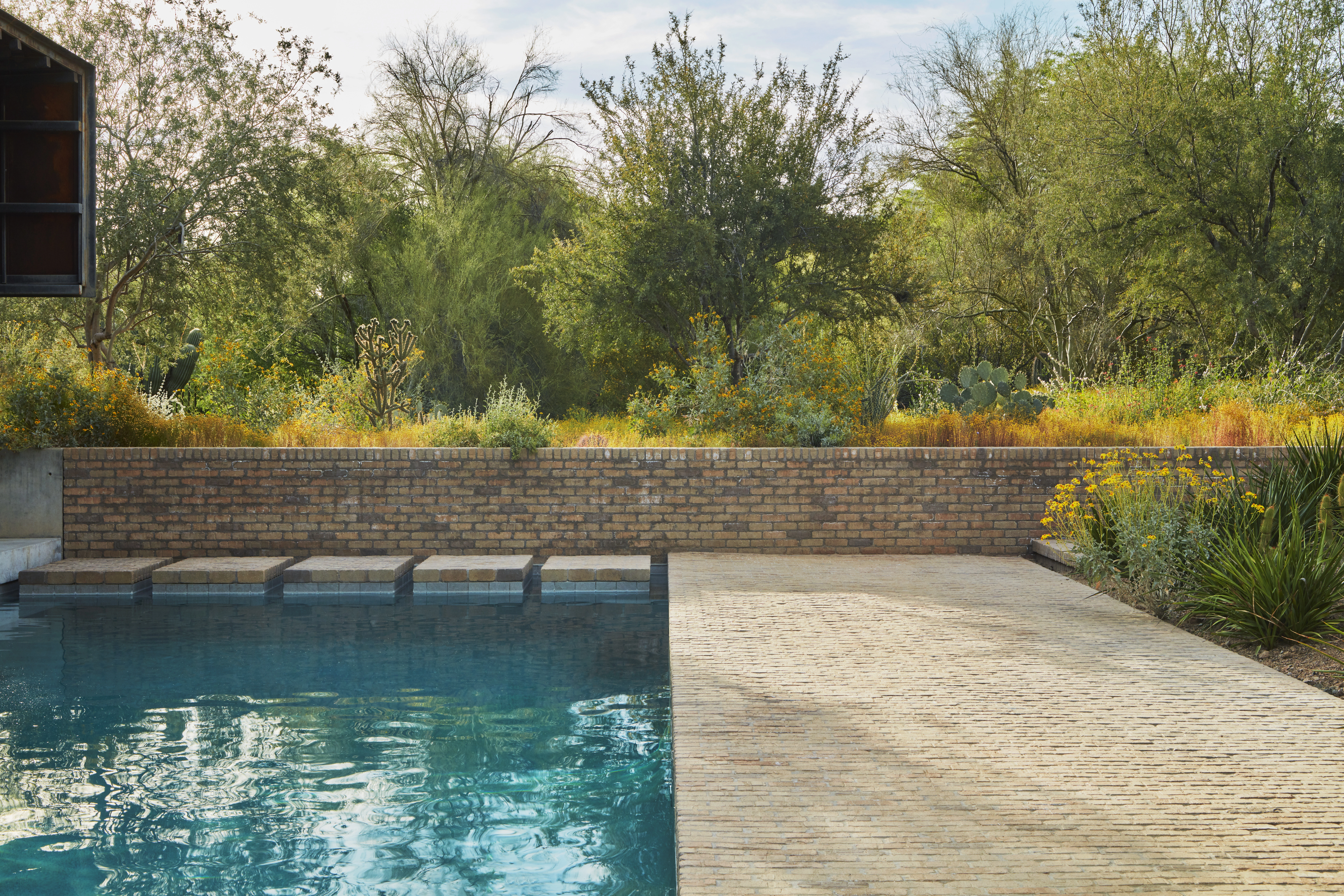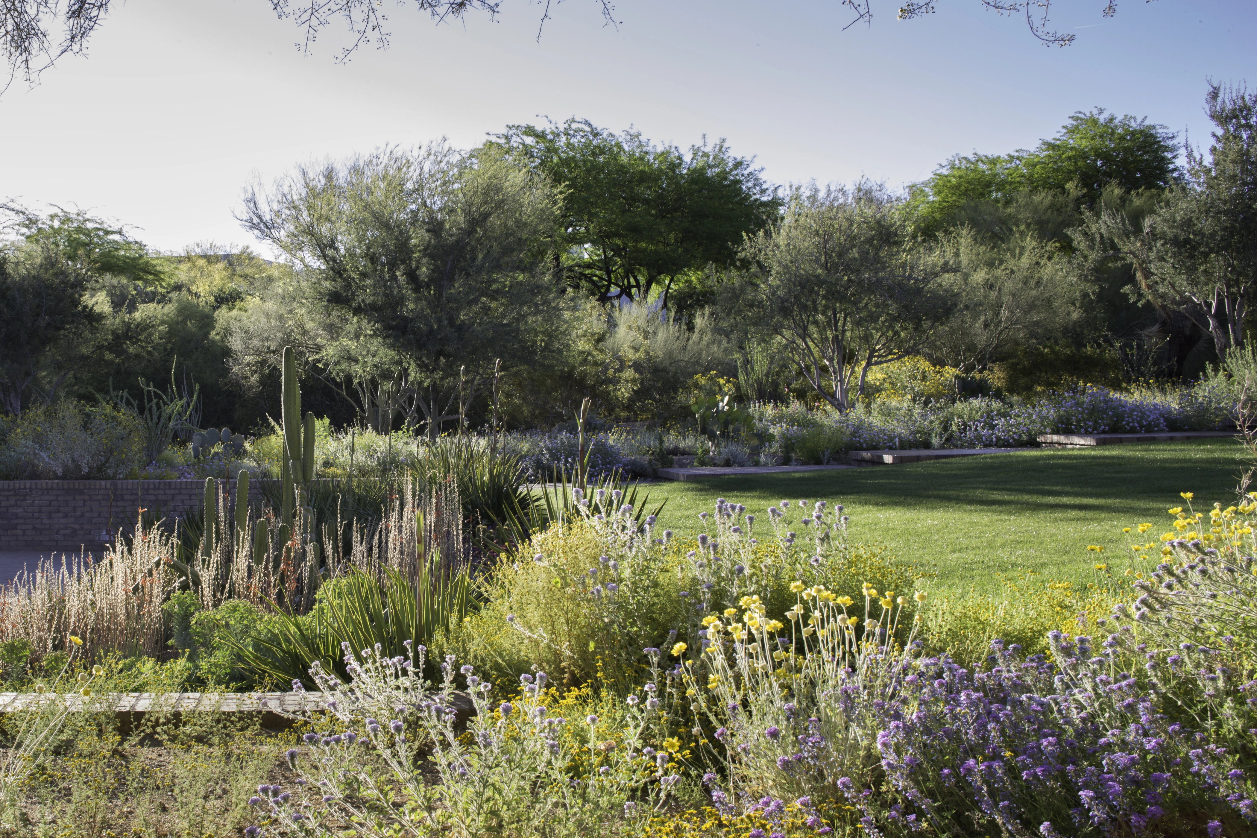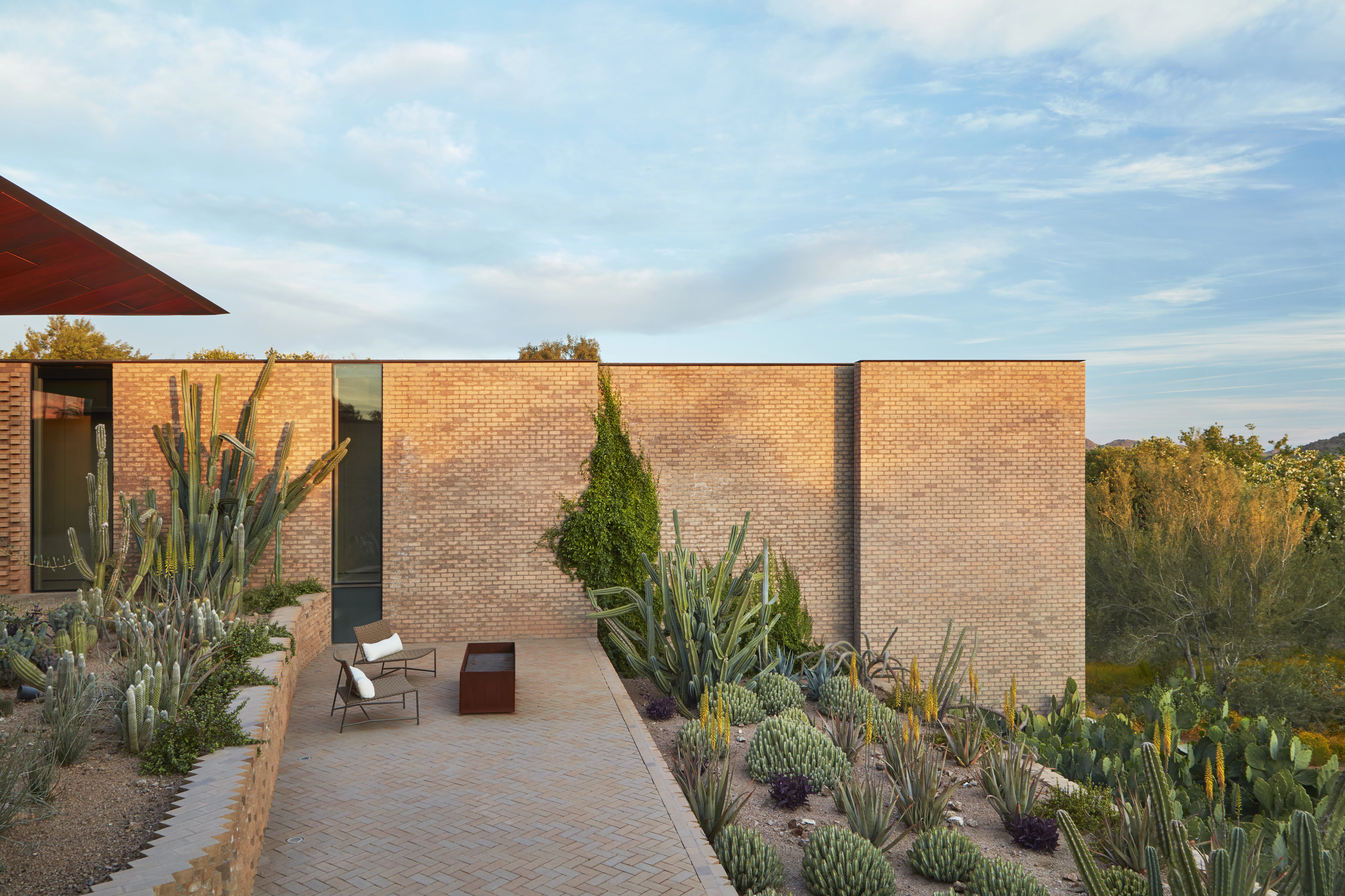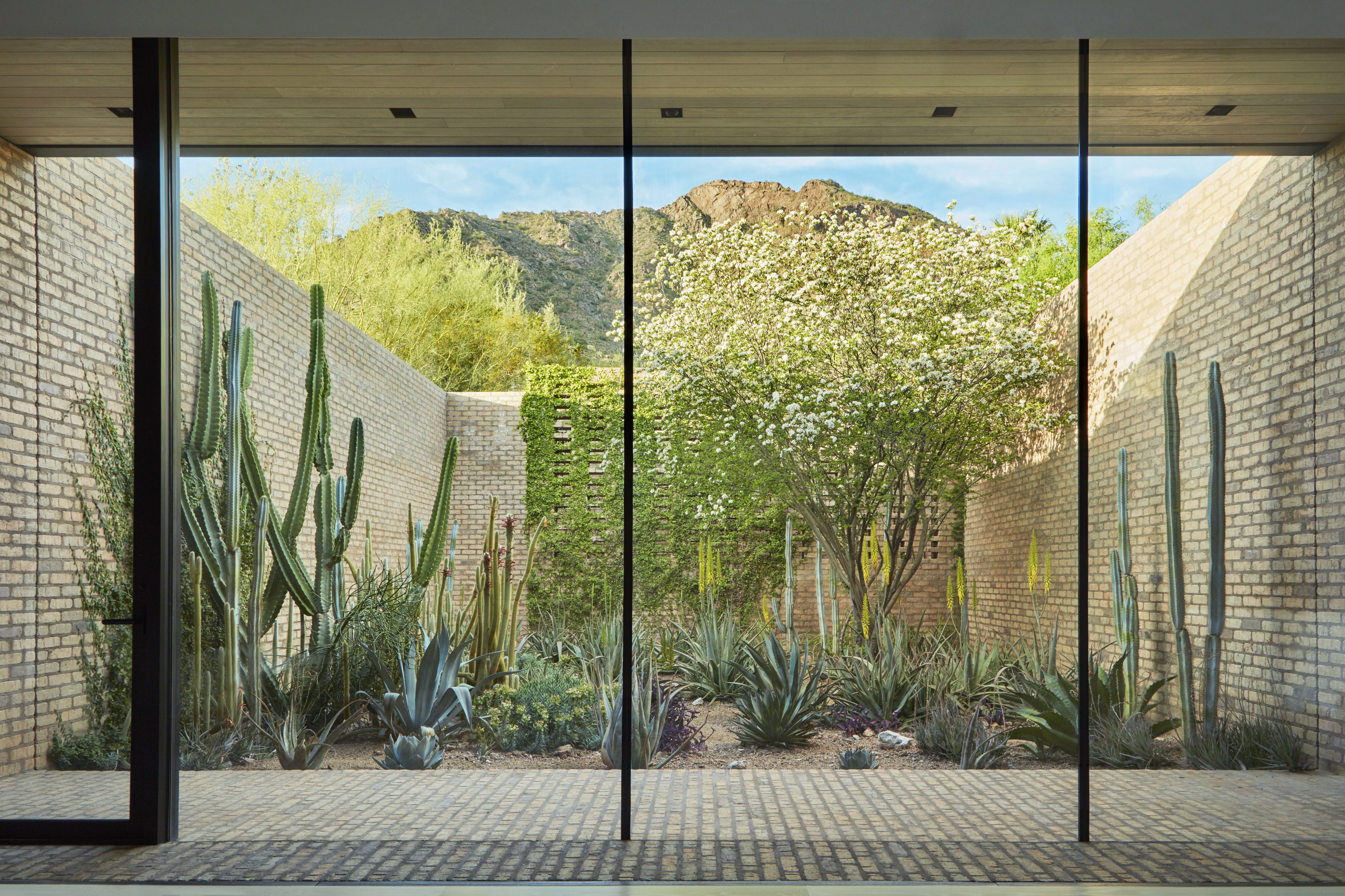 NARRATIVE The residence occupies a 2.5-acre parcel at the foot Camelback Mountain, a prominent landmark linking Arizona cities Phoenix, Paradise Valley and Scottsdale. The mountain, resembling the hump and head of a camel is composed of a geologic unconformity between two separate rock formations of granite and red sedimentary sandstone. The lot has a cross slope of 37’ in the south-north direction and is set within the desert scrub plant community. Residential landscapes in this desirable neighborhood of Paradise Valley are typically surrounded by a tall, opaque barriers between the house and the street with thick non-native hedging bounding all sides, and an interior of manicured, water-intensive shrubs and lawns in the Mediterranean style. The client desired a landscape that was reflective of their deep appreciation for desert plant life and advocacy for conservation and sustainability. The firm's experiential approach to design, procurement and placement culminated in a judicious balance of intervention and restoration, of reshaped space, redirected views and ultimately an abundant interplay between flora, light and shadow. As a result, the site was transformed into a spectacular celebration of awe-inspiring desert plant life. Each garden gallery emanates a distinct landscape essence; every window looking out presents a new focal point - a sculptural Queen of the Night, the twisted form of an Ironwood tree, a field of colorful shades of blue and aqua succulents and white glowing cactus or the rich texture of house walls contrasted with sculptural cacti. Individually, the diverse gardens encase a rich interplay of like or complimentary plant species from arid regions around the world; collectively, the gardens provide a year-round show of marvel cascading through the landscape. The entry sequence from Dragoon Lane begins through a rusted steel gate and screen wall, down a decomposed granite drive through a Palo Verde bosque. Salvaged from the site, a boulder outcropping sprinkled with prickly pear form a berm retaining soils at the driveway and screen the house. At the entry auto court permeable brick pavers allow for water infiltration. A large brick sculpted planter wall draped with Octopus Cacti Stenocereus alamosensis separates the entry courtyard and auto court. Floor to ceiling glass windows generously bring the garden views into the house and make indistinct the line between indoor and outdoor. A majority of specimens can thrive on rainwater alone after establishment, require no fertilizer, little to no pruning, and conversely provide a rich and lively habitat for a multitude of wildlife. The small citrus grove, one of Arizona’s five ‘Cs’ (Cotton, Citrus, Copper, Cattle, Climate) boasts different cultivars of citrus trees, each providing sensory enjoyment when in bloom; their bountiful fruit is donated to local homeless shelters. GHOST WASH The Sonoran Desert is the wettest desert on Earth. It is characterized by this due to the large amount of rains it receives during the monsoons and winter months. The desert receives under eight (8) inches of rain annually. Due to the lack of water in Arizona it is important to capture all rainwater as a source of supplemental irrigation. The center core (Ghost Wash), flanked by two tumbled brick building bars of the residence, is an infrastructure amenity, utilizing all the storm water captured by the massive floating roof. Cascading terraces of alternating patio and garden planters create the ‘Ghost Wash’, the third wash running through the site. The last terrace is a steel vessel/cistern holding all the roof water and storing the runoff. Passively releasing the rainwater through small openings in the face of the vessel irrigating the small warm-season grass area and surrounding native landscape. The client initially did not desire grass and felt it was irresponsible in the desert, though they had a young child and wanted her to be active outside during the hotter months, which was a relief during the pandemic. The grass area is watered with an underground watering system and seasonal supplemental water from the monsoon storms. This small turf area plays an important role in the desert landscape, reducing water runoff and carbon dioxide emissions, as well as mitigate the heat. In this central zone, the client desired a low water use eclectic plant palette of unique sculptural cacti & succulents such as rare Boojum trees Fouquieria columnaris, Cereus Peruvianus ‘monstrosis’ var. major 4, and Octopus Cacti Stenocereus alamosensis. These cacti gallery gardens have become great conversation pieces complementing the sculptural quality of the house. The axial amenity spine (Ghost Wash) terminates at the guest house and pool near the base of the slope. The perimeter of the property was restored, re-vegetated and enhanced to seamlessly blend into the surrounding flora of Camelback Mountain and is largely populated by species native to the Sonoran Desert creating a resilient landscape that can withstand overtime on little to no water. Between the two restored perimeter washes, opposite the open space, the landscape takes it cue from the native washes where the wildflowers bloom with the extra water harvested from the site. Granite paths with rock salvaged from the site wind between the sculptural Bosque of Ironwood trees and an understory of masses of desert wildflowers and cacti providing an additional buffer from the street thus, anchoring the site. The project demonstrates landscape architecture's remarkable power to unite the ecological, sensory, and spatial characteristics of a site with its region and create a lasting place of integrity and meaning. The cactus gardens and native landscapes showcase and celebrate desert morphology and the astoundingly beautiful genus that thrive in our harsh, arid environment. It was expressly the landscape architects hope to set a new paradigm concerning the prevailing landscape customs arid r
