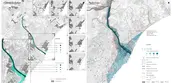 From the coastal zone we see a large extent of dunes simulation which are artificial dunes with topography control, but also a stretch of living shoreline to protect the 3X and inland interventions from storm waves as well as long-term sea-level rise.