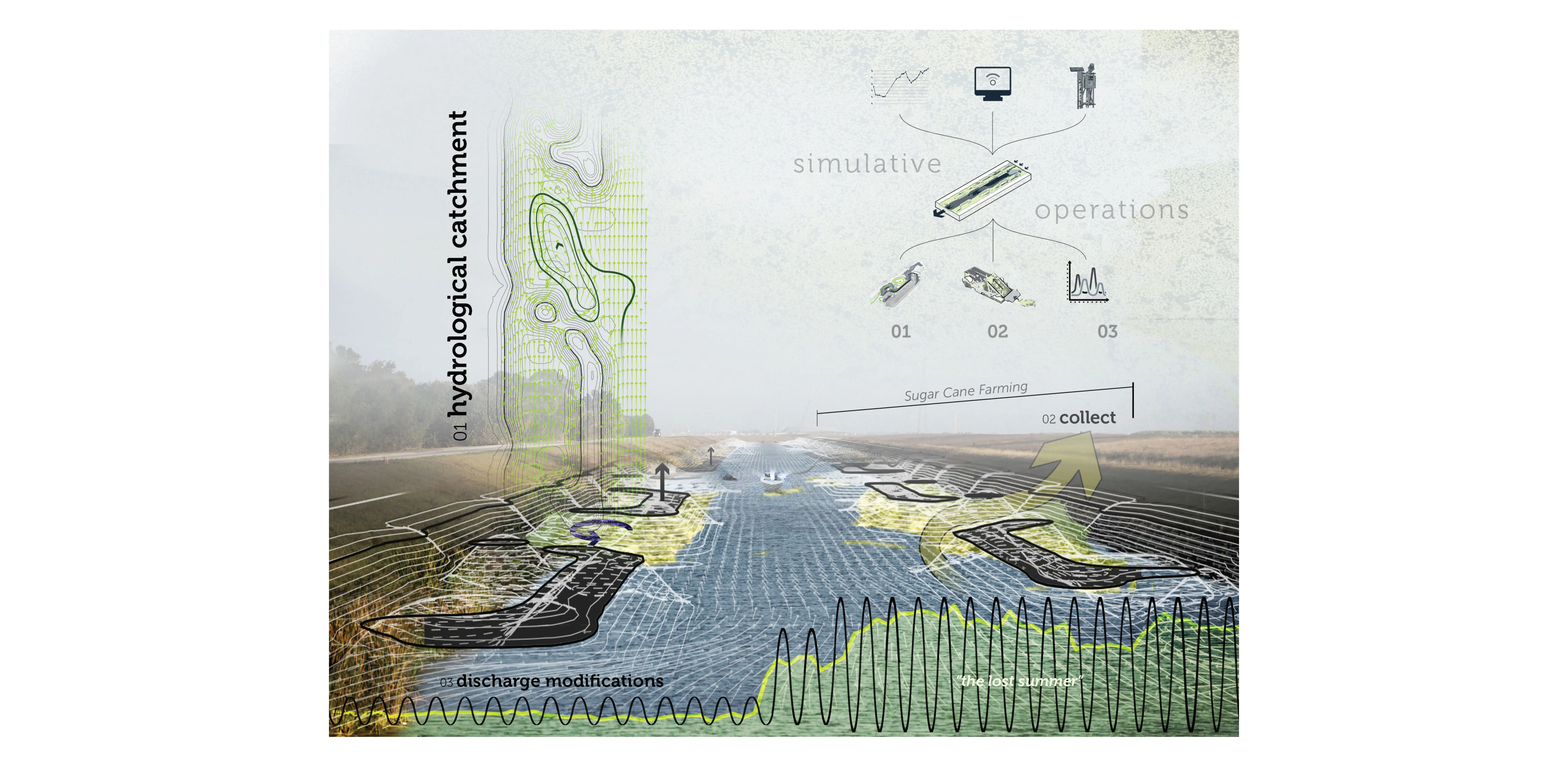 It is here where we shall depart from models as solution-oriented agendas, or manifestos, in which the politico-economic machine is paradoxically fueled by the issues it aims to solve. Instead, as a landscape management tool, the responsive model is an organism that mutates with the discoveries of abductive testing. Responsive models arere scripted to transcend the slow violence evident in South Florida and deconstruct the economic complex built up like the levees and dikes that hold water from its natural destination.