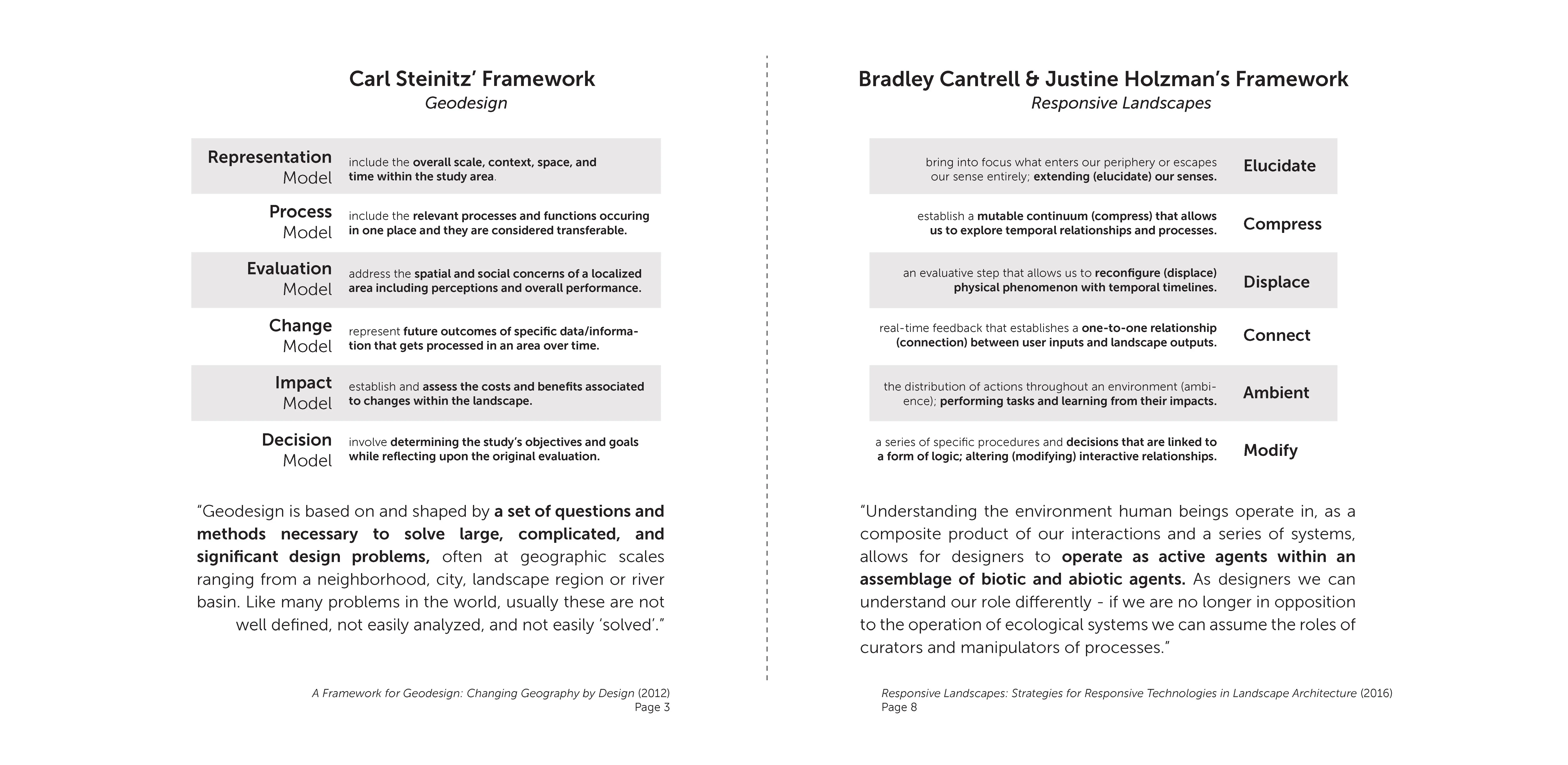 Over the past decade, a growing list of responsive modeling projects has been explored and seeks to redefine our discipline and close the gaps identified in Steinitz’s framework. Like Bradley Cantrell, Justine Holzman, Karen McCloskey, Keith VanDerSys, or collaborations between the Dredge Research Collective and SCAPE, the responsive model continually redefines the practice of landscape architecture by pushing the boundaries of our discipline. (Cantrell & Holzman, 2016 and M’Closkey & VanDerSys, 2017)