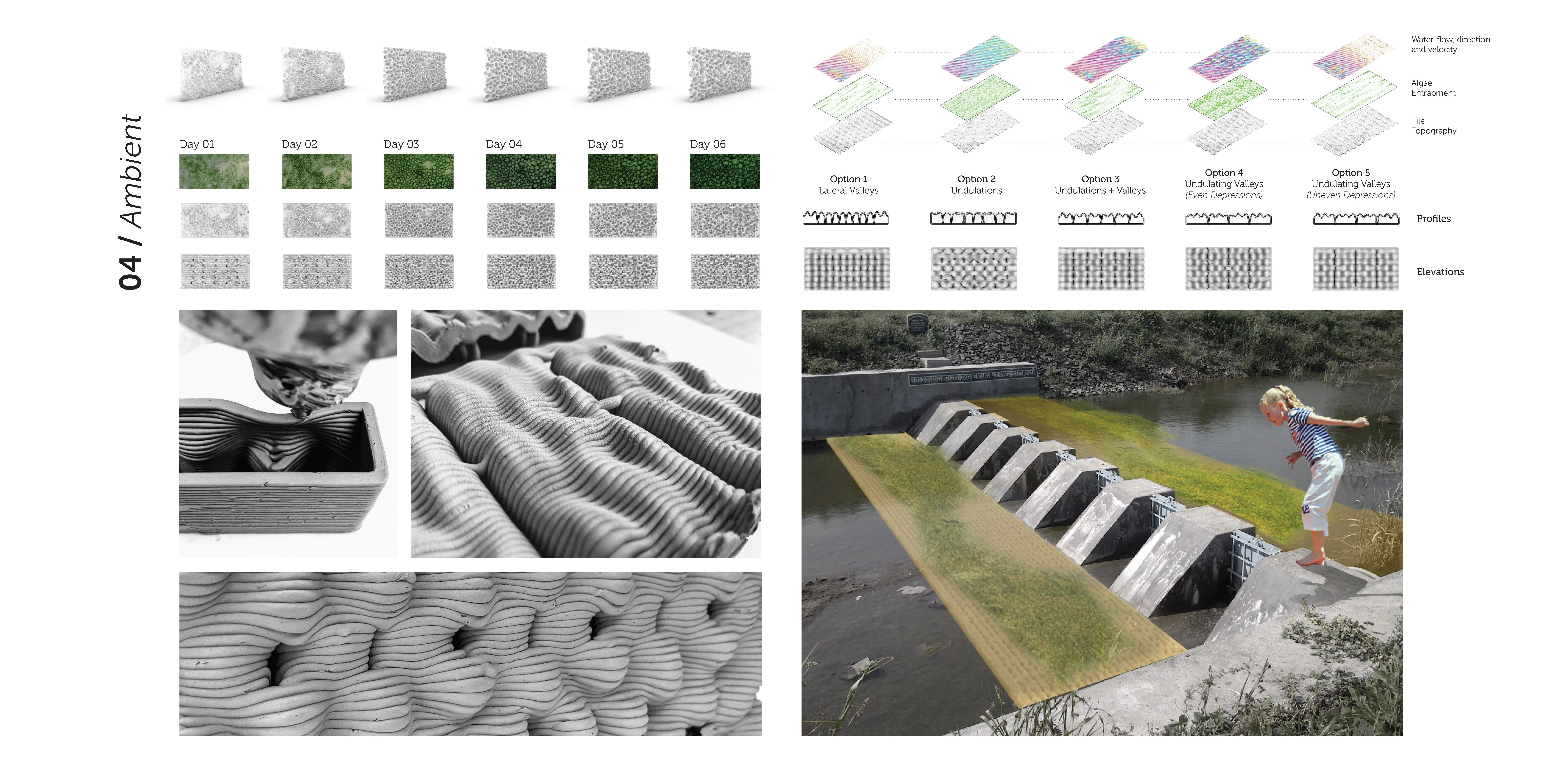 Responsive Translations. While more conventional approaches to research-by-design include translating typified landscape compositions into a new landscape context, Algae as Agents approaches research-by-design as a series of responses. Responsive modeling applications were translated into the process of analyzing and understanding algae.