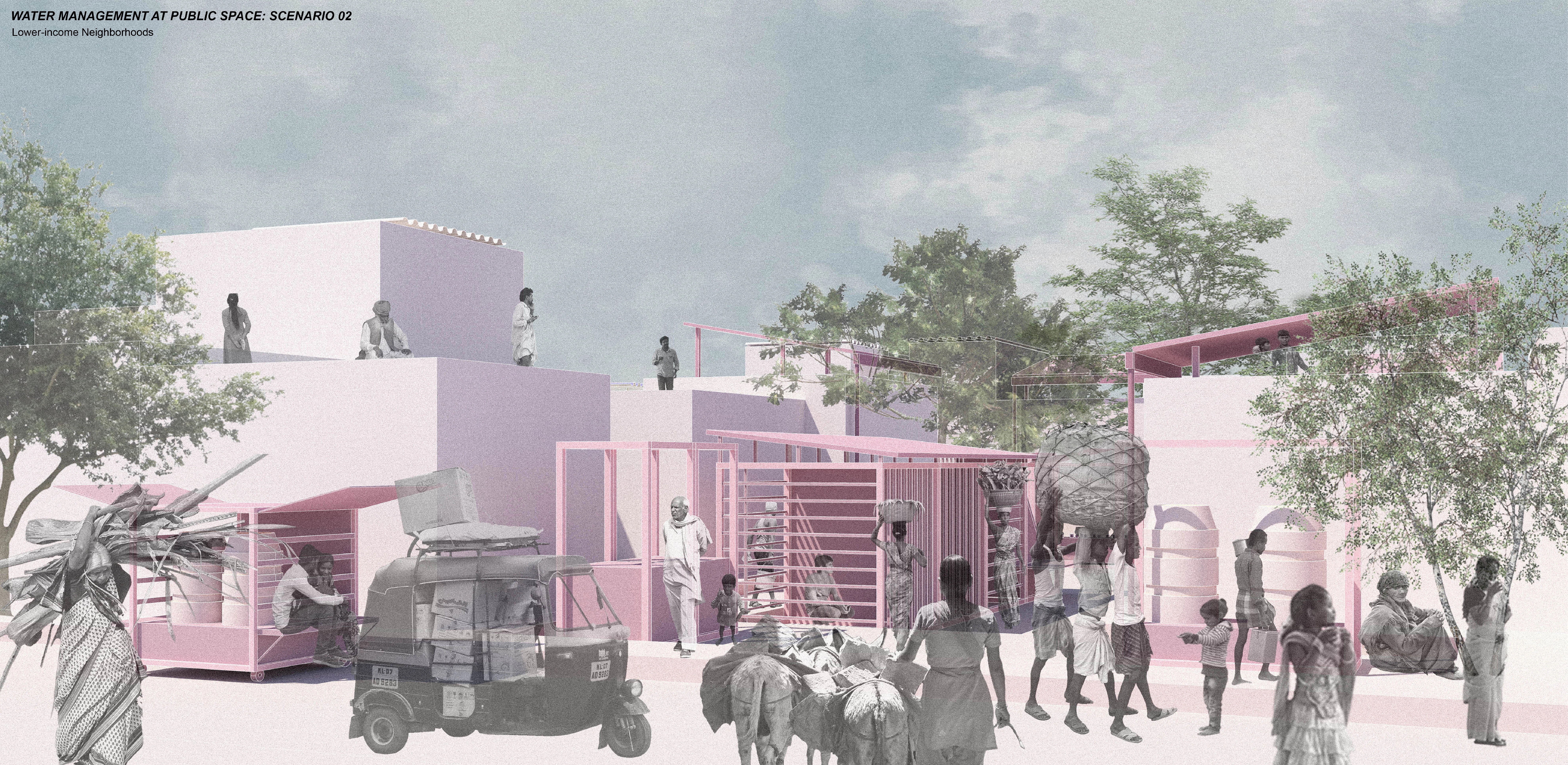 The project was dealing with the water issues in Jaipur, India, researching on the possibility of altering water use by creating a system of water infrastructure and management in housing and public space.