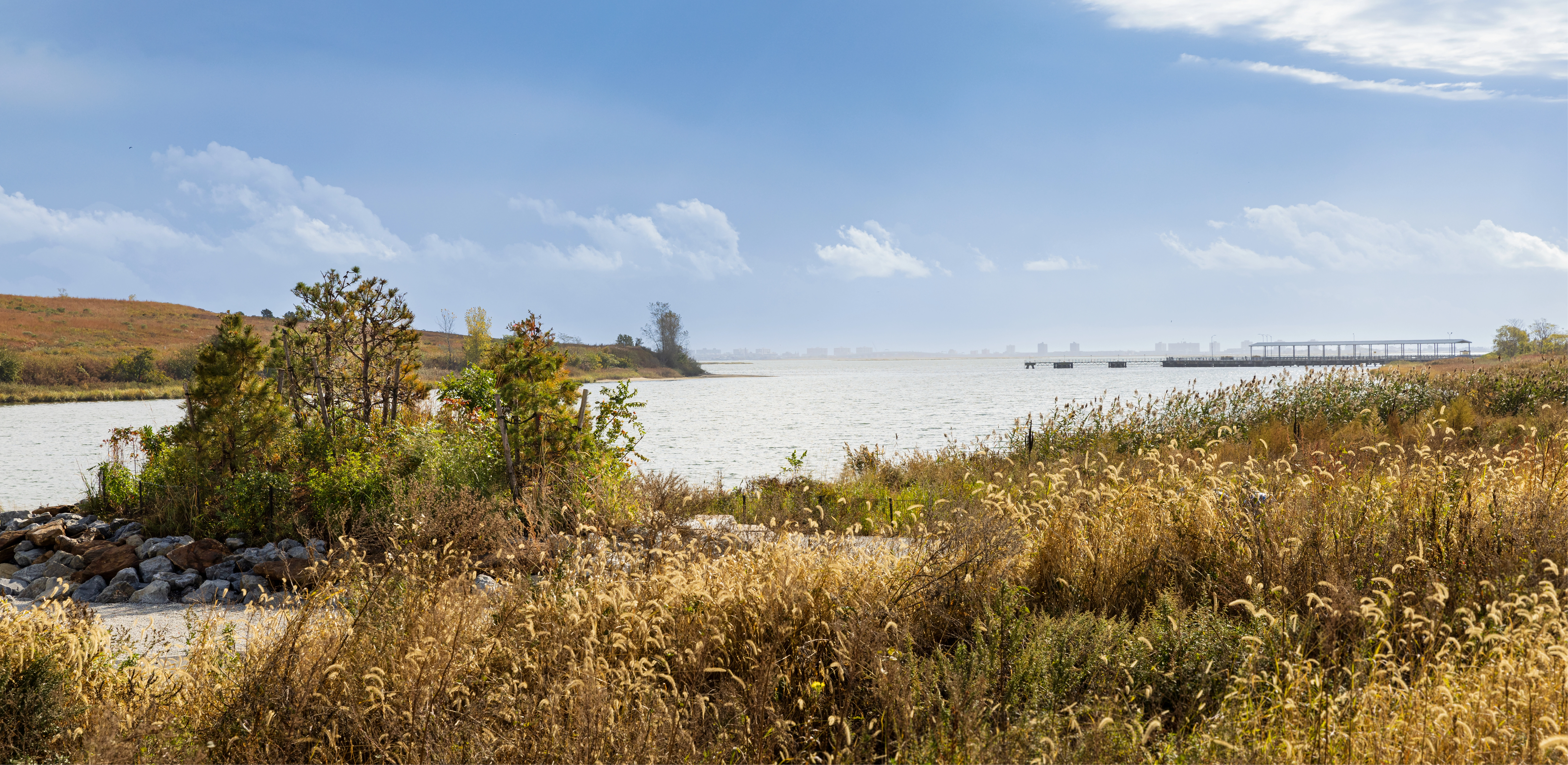 Set along Jamaica Bay in southern Brooklyn, Shirley Chisholm State Park transforms a pair of closed-and-capped landfills into a vibrant community hub. When the landfills stopped operating in the 1980s, the city, building on research that had been conducted at a larger site on Staten Island, covered them with three feet of soil, making it possible to plant not just grass, which could hardly disguise the origins of the two hills, but thousands of native trees and shrubs. As the meadows began to flourish, community advocates were determined to see the fenced-off wonderland become a badly needed park. But how? On a tight budget and compressed schedule, the landscape architects created new entrances to set a welcoming tone for the entire 407-acre parcel, and then devised nodes both for active recreation and for quiet contemplation. Those cover a small fraction of the park’s land area but draw people onto its 10 miles of trails. The park was immediately embraced by the community, making it a fitting tribute to Brooklyn’s pioneering public servant Shirley Chisholm.