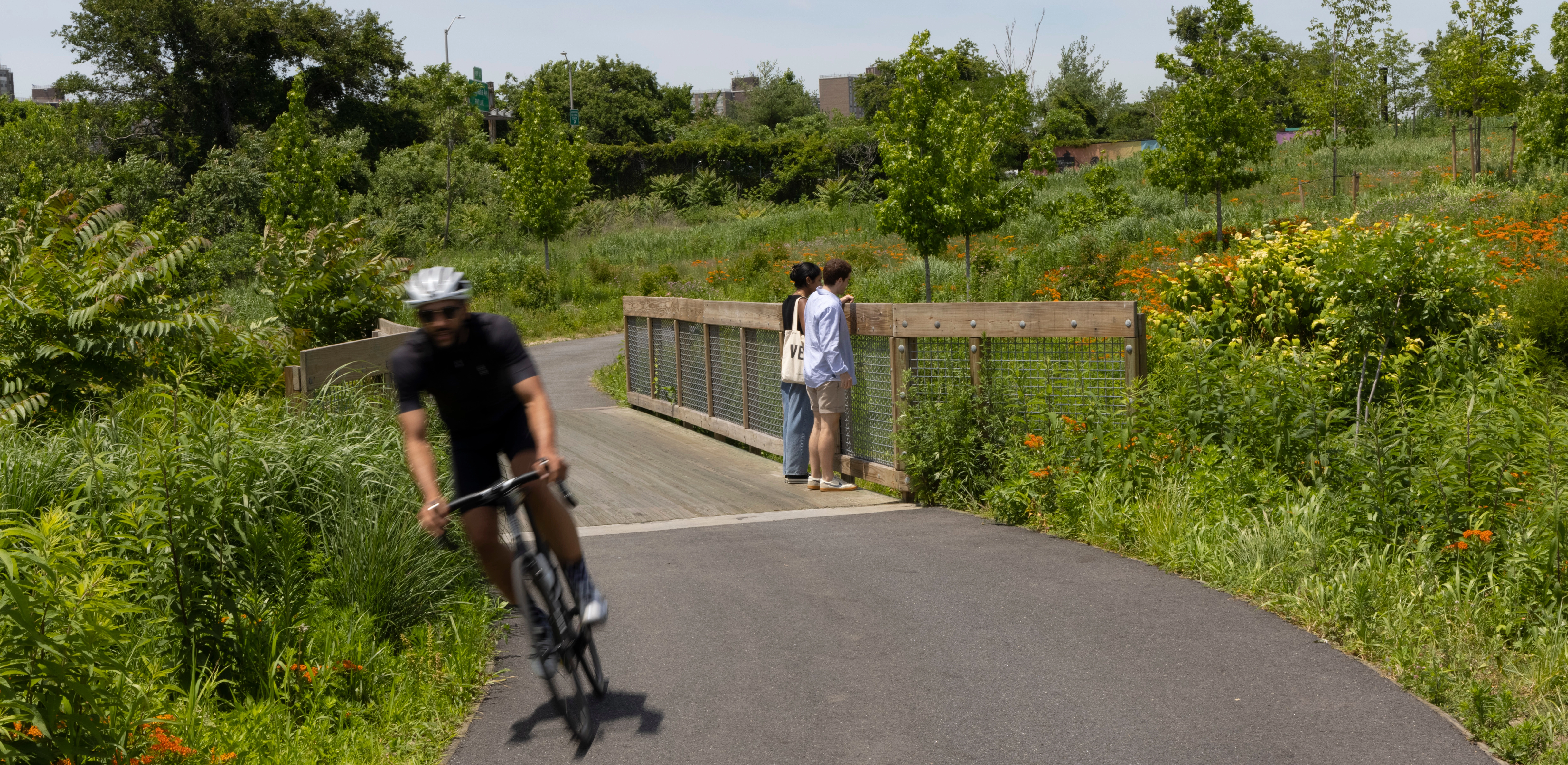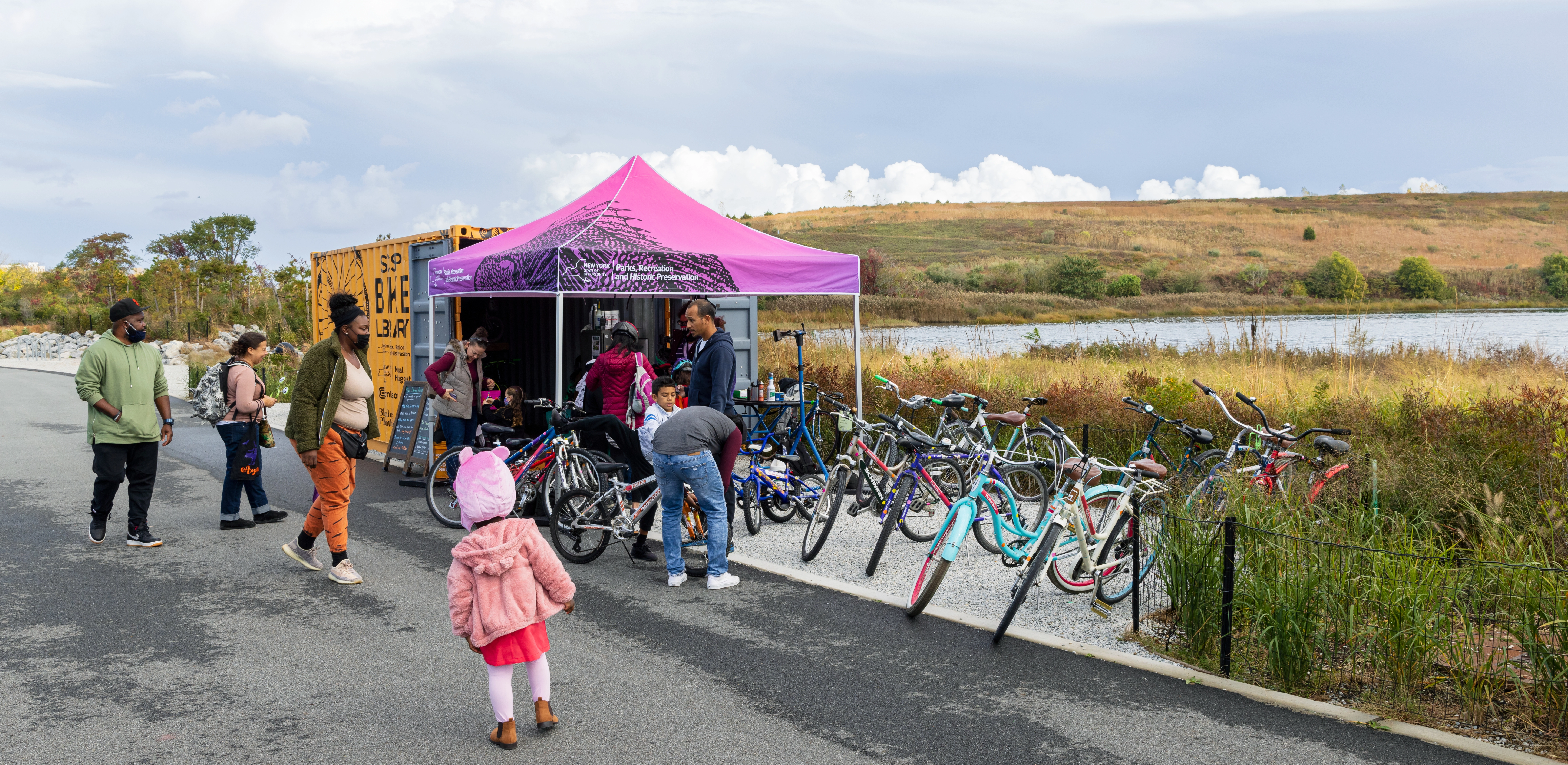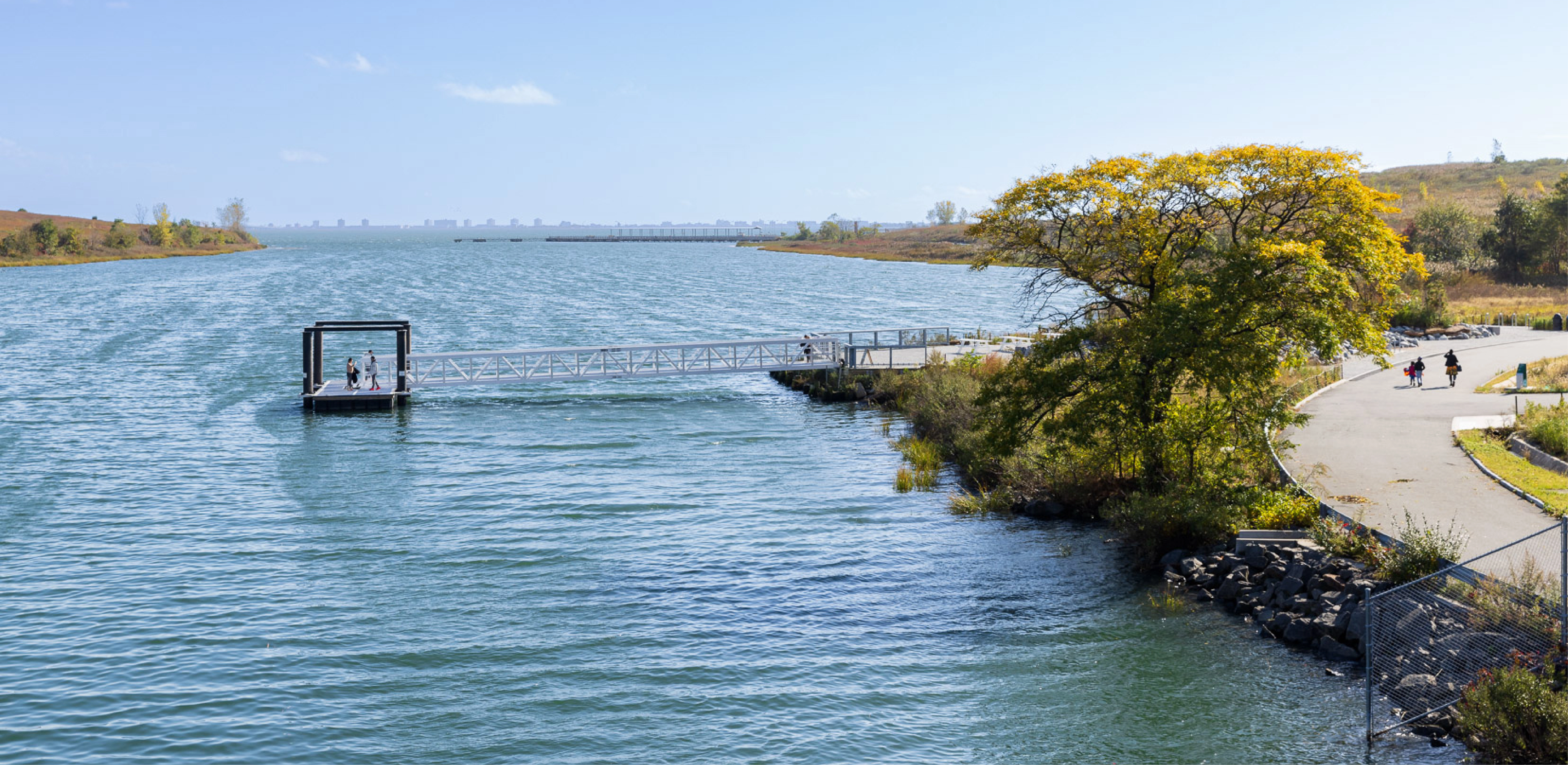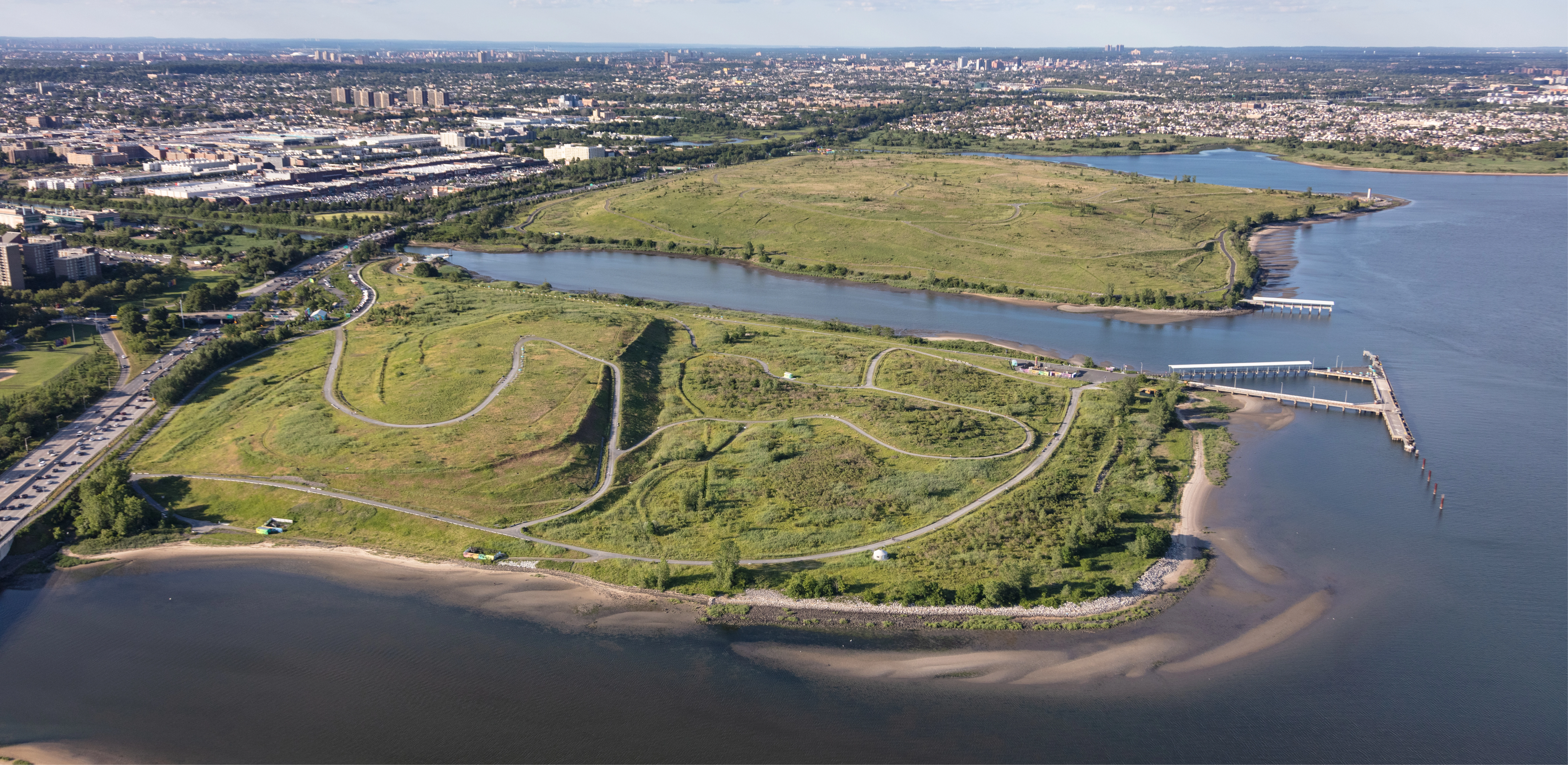 For New Yorkers driving to Kennedy Airport or the south shore of Long Island, the trash mountains were unpleasant; for residents of the adjoining neighborhoods they were a noxious fact of daily life. These were the Penn and Fountain landfills, owned and operated by the City of New York from the 1950s through the 1980s. In its last year of operation, 1985, the Fountain landfill sucked up an incredible 8,200 tons of trash each day. Although the Federal government intended to include part of the property in its new Gateway National Park, the city was responsible for continuing remediation of the landfills. As part of that process, it had the foresight to cover the hills’ plastic caps with 1.2 million cubic yards of soil (enough to fill nearly 100,000 dump trucks), eventually allowing a wide variety of plants to grow. That included trees, which were normally discouraged on landfills because their roots can pierce the plastic caps, but which, if chosen carefully, develop shallow root systems that help keep topsoil in place. Between 2004 and 2008 the site was planted with more than 33,000 trees and shrubs (most grown from seed, to allow them to adapt to the environment), along with native grasses and wildflowers. The result was a diverse ecosystem of coastal meadows, wetlands, and woodlands that has attracted a variety of local wildlife. But it wasn’t a park, because there was no way for people to get in, and nothing waiting for them if they did. Residents of the East New York neighborhood were ready for the fences to come down. Then, in 2017, the landscape architects were invited to a meeting with the state parks commissioner. A handful of public officials had worked tirelessly to fashion a cooperation agreement among the state, which would run the park; the federal government, which agreed to lease the land to the state for 60 years; and the city, which remains responsible for safely decommissioning the landfills. With the agreement in hand, the state was ready to create a park. But it had just $35 million to spend. The landscape architects helped the client see what could be accomplished on that budget. Tackling the entire 407 acres was out of the question. Luckily, with 3.5 miles of Jamaica Bay shoreline, the marshy riverine ecology of Hendrix Creek, and the slopes of waving grasses and wildflowers, the site was already appealing. But there was not a single source of shade and nothing of human scale to make people feel welcome. So the firm proposed targeted interventions that would seem small relative to the overall site—covering about 15 acres—but would serve as portals, connectors, focal points and destinations. The state insisted that the two landfill sites be connected across Hendrix Creek; the landscape architects realized that with the addition of several sinuous paths, an existing bridge would not only serve as that connector but would make the park part of a citywide bike trail system, and a stopping point for hundreds of riders each day. Meanwhile, the state wanted to build an education center for visiting school groups, but didn’t have the funds. The landscape architects suggested distributing yurts around the site to serve as temporary mobile classrooms. Inside the Pennsylvania Avenue Entrance the landscape architects built a parking lot replete with hardy coastal plants. An artist born and based in Brooklyn transformed all four walls of an operations building into a richly colored mural, with a portrait of Shirley Chisholm, the first African American woman elected to Congress and the first woman and African American to run for president, as its focal point. The Fountain Entrance serves as the terminus of the city’s new Fountain Avenue bike lane. It leads visitors along Bett’s Creek and up into the park. Designated areas for food trucks draw crowds to the entrance areas at lunchtime. From the two entrances, miles of paths lead to “points of interest” like the Hendrix Patio, a relaxing space on the banks of Hendrix Creek. The landscape architects rebuilt the water’s edge, with planted mounds raised above flood levels and held in place by granite seating. A pair of “bicycle libraries” allow visitors to borrow a variety of two-wheeled vehicles. Now the park is the go-to spot for East New York parents teaching their kids to ride. The Sky Bowl is a new, raised landform atop the former Fountain Avenue landfill, at an elevation of 130 feet. Carefully engineered with the addition of new, lightweight fill over the cap, the bowl is a lush, sodded mound surrounded by log benches (designed for the site) and a ring of trees. “It takes work to get up there, but it’s worth every step,” said one local official. “You're in a halo of river birch trees, and you feel like you’re suspended out over the water.” Views include the Manhattan skyline, Coney Island, the Verrazano-Narrows Bridge, Jamaica Bay, and the Atlantic Ocean. The landscape architects recognized that two existing piers could give visitors a new way to experience Jamaica Bay, but that shade would be required in the summer. The landscape architects augmented the two piers with customized shade structures, as well as new railings and seating. At the Penn Pier, part of which is still used for city storm management operations, the landscape architects worked with several agencies to facilitate public access and specifically to designate an area for fishing. The state insisted that many of the new amenities be open within two years of the initial planning meeting. For the landscape architects, that made for some very long days (and nights) at the office. But when a member of the team visited the park with her family on opening day, she says, “It was obvious that the rush was worth it. This park being open meant so much to the people who lived nearby and they were flooding it -- walking, fishing, biking, throwing birthday parties, relaxing near the water. It really felt like something they’d been wait