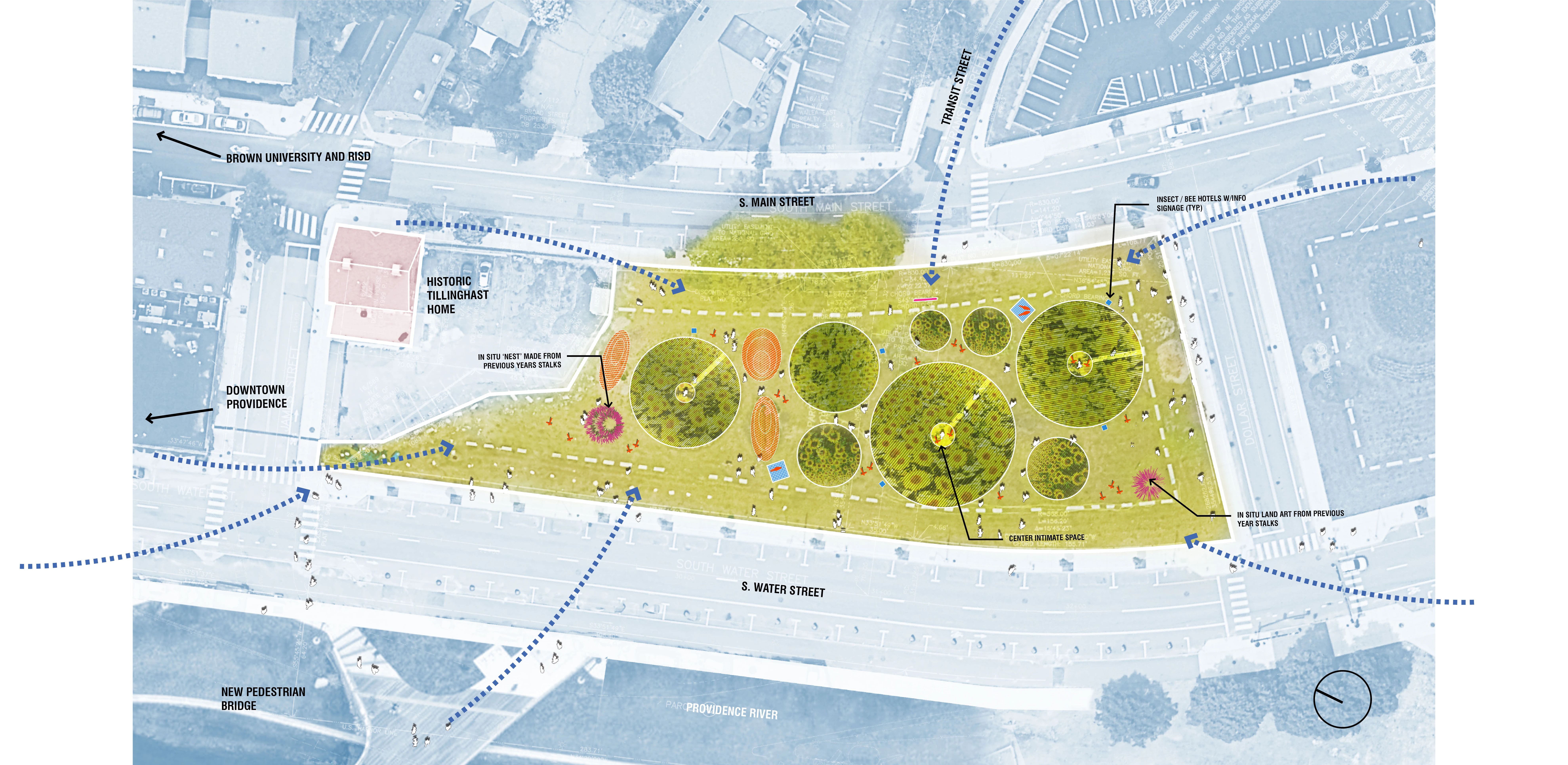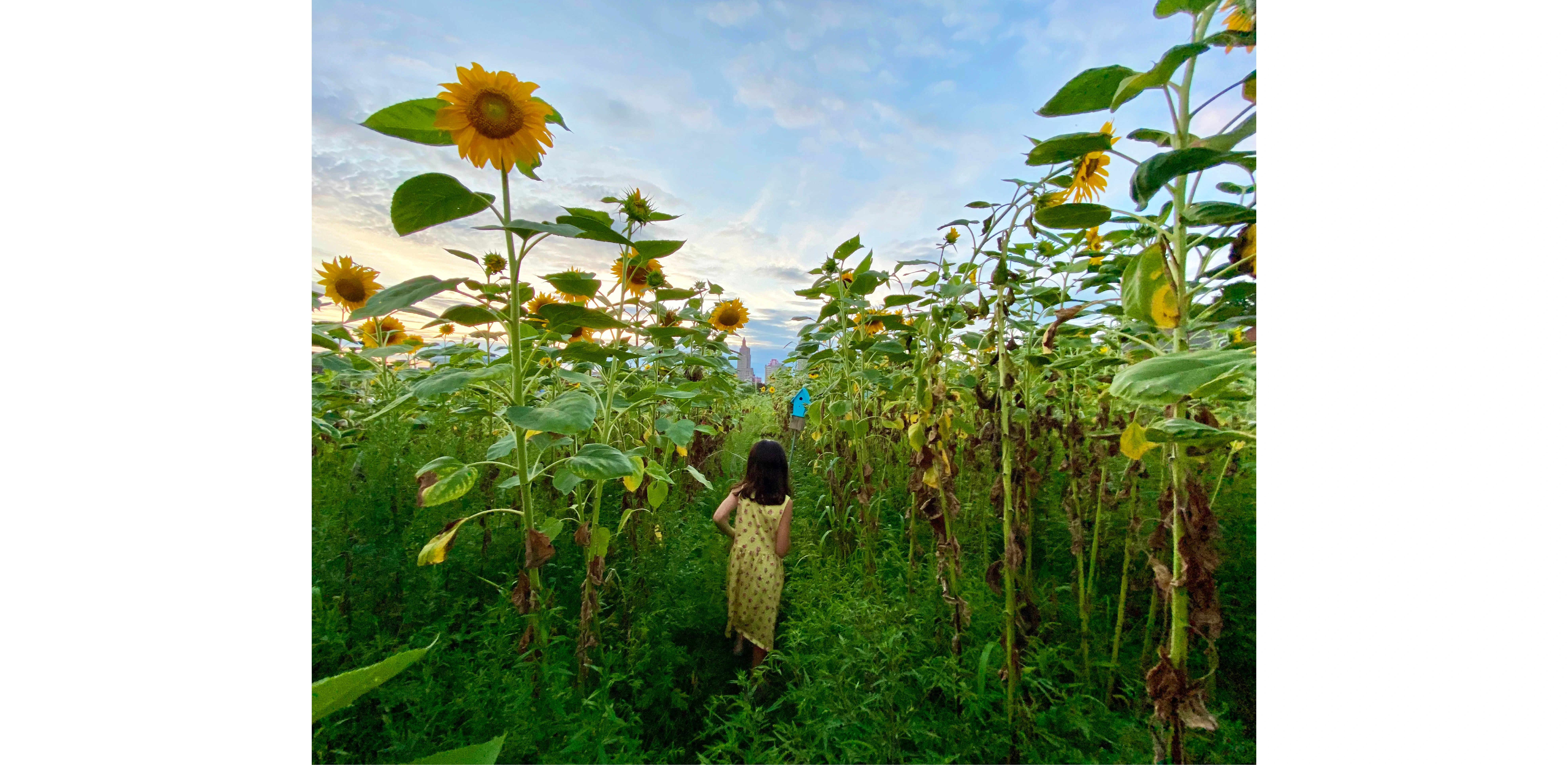 In 2010 the state of Rhode Island and the city of Providence after redirection of the I-195 highway which bisected the city fully opened the new highway location and began development plans for the large “scar” of the former highway location. Many large tracts of land within the city limits were left undeveloped for many years. Being former highway space, these tracts of land were also designated brownfield sites. After witnessing the unused parcels for six years, in 2016 we submitted an unsolicited proposal to the I-195 Commission, the entity in charge of its development, to create what we called a “botanical performance”. Using the sunflower, we proposed a community built land art piece that would fill an entire vacant city block by planting 10,000 sunflowers with the city’s skyline as a backdrop. The financial and infrastructural commitment was very low with only planting seeds in the ground and a proposed budget of $1,000. The proposal was received enthusiastically by the Commission and the project began its first stages of implementation. However, there was a subversive intent with the project. We believed that by engaging a diverse range of volunteers with the planting of seeds and continuous maintenance, we could create a “participatory landscape”, fostering a sense of ownership and pride while raising awareness for the importance of landscape as a critical piece of urban infrastructure, as well the expectations for the quality of urban development that would inevitably come to the area. Each Spring a call goes out inviting and encouraging all walks of life to assist in the sowing of the seeds. No prior experience is needed and simple demonstrations are made to educate about the process. There are a wide variety of tasks that allow for people with a wide range of capacities and abilities to participate. We also plant at different time frames to allow people with different schedules the opportunity to make it to the site. They may come for hours or minutes, and free to come and go as they please. The sunflower is an incredible plant, and was selected for several reasons. For one its bloom is striking, easily visible from a great distance, and given the right conditions, can grow ten feet tall in only sixty days. It’s heliotropic, meaning it changes position with the path of the sun. It’s a great pollinator and food source, actively attracting bees and birds. And, it is a phytoremediator, having the capability of sucking toxins out of the ground. It was these qualities that we sought to deploy the sunflower onto this vacant (and polluted) land in what we referred to as a “summer long botanical performance.” Reflecting back on now six seasons of the project The visible transformation of the land has been remarkable. Most noticeable by the hundreds of people it draws during the bloom on a weekend afternoon, visiting to capture a family photo, or simply to experience the magical moment of seeing the setting sun behind the city skyline amongst a sea of sunflowers. Less noticeable is the ecological transformation, as the sunflowers work to clean toxins present in the soil on site, they also bring a variety of bee species by the thousands, ground plovers who have found refuge in the protection of the sunflower stalks, and feeding frenzy for a variety of bird species when the seeds appear. The rows of the sunflowers are also integrated with native meadow seeding, creating a rich biodiverse understory. Insect and bee hotels with information signage have been added to site as not only a much needed habitat but as didactic experience to better inform visitors about the ecology of the site and urban landscapes in general. A dearth of public seating in the area warranted the addition of custom made red chairs, adding sculptural layer to the site as people move them freely throughout the space It is clear people from all around the state (and beyond) are attracted to the striking bloom, demonstrated by a Instagram search of #10000suns. However, the project has received many personal notes and letters from people who have expressed the impact this simple field has had on their lives that we could not have anticipated, and certainly did not plan for. For example, a woman visiting with her mother with severe dementia, told of the story of how the sunflowers somehow sparked a moment of clarity in her mother. She stopped, grabbed her daughter’s hand and said: “Sunflowers! You held sunflowers at your wedding!” A touching moment as she told the story with tears in her eyes and was thankful for the project. Another woman, a victim of a hit and run accident the year before, used the growing sunflower field as her inspirational location for walking rehabilitation. A man returning to Providence for his father’s funeral, expressed he found great comfort and peace in the field during a difficult time. These are but a few of many examples of the potential impact the 10,000 Suns can bring to people’s lives, but at a larger scale it has brought the attention of development possibilities, and that landscape is not merely land waiting for a building. Through many interactions with people in the field we believe it has at least cultivated a greater understanding of landscape initiatives and increased the likelihood that landscape architects will share a place at the table when further urban development in Providence is planned.
