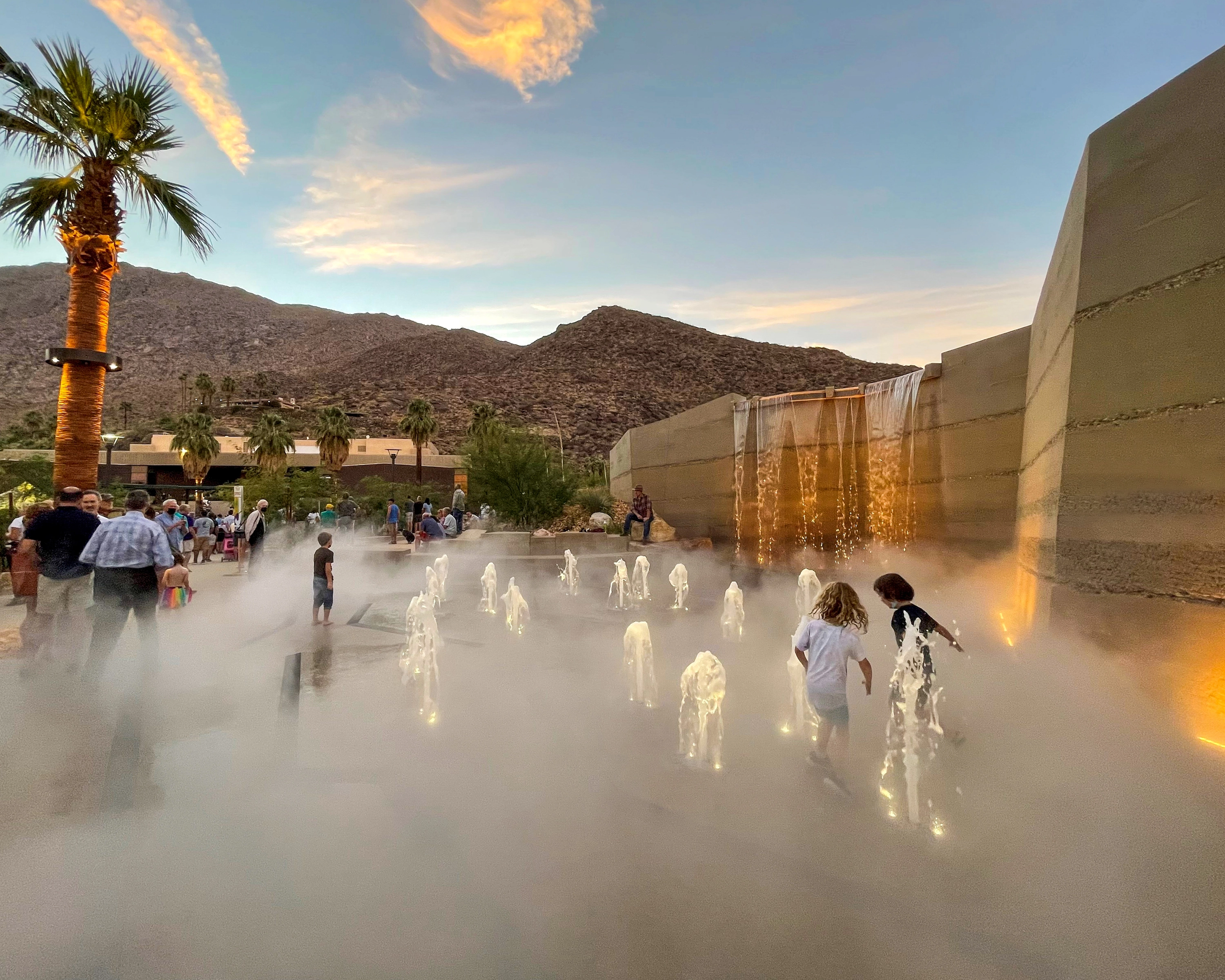 Sited on the grounds of the historic sanitorium resort, the Desert Inn, the design draws on its legacy as a destination for health, nature, and pleasure seekers. The park comprises three overlapping spaces: the Palm Grove, with over 130 Washingtonia filifera, California’s only native palm; the Outcrop, on the park’s northern edge designed as an immersive park experience that relates to the surrounding mountains; and the Theater. Each offers distinct programmatic capacities and reveals facets of the region’s geology, vegetation, and rich history. The park’s dramatic centerpiece is a powerful waterfall and an interactive water feature of jets and fog emitters, which the jury called remarkable!