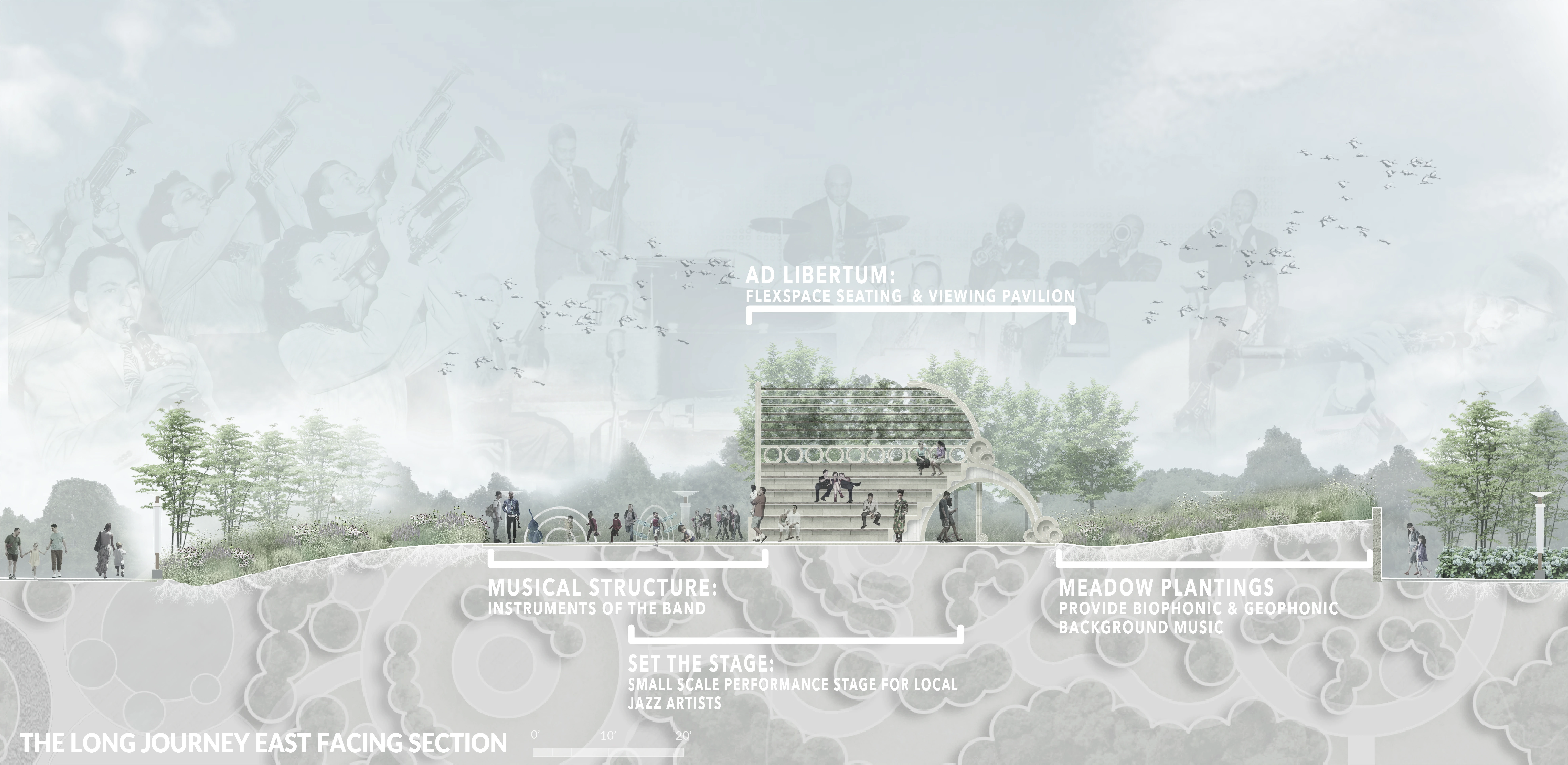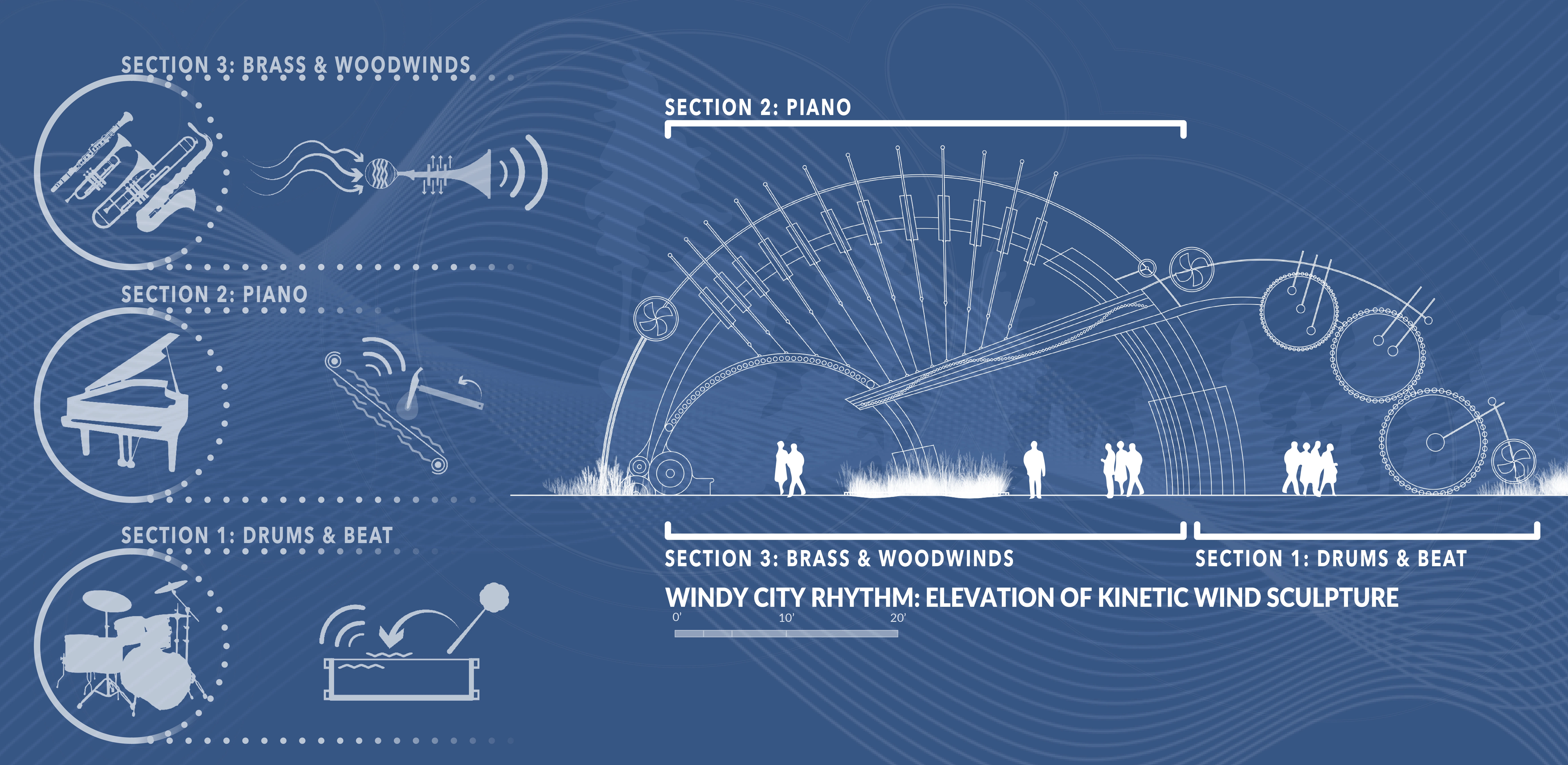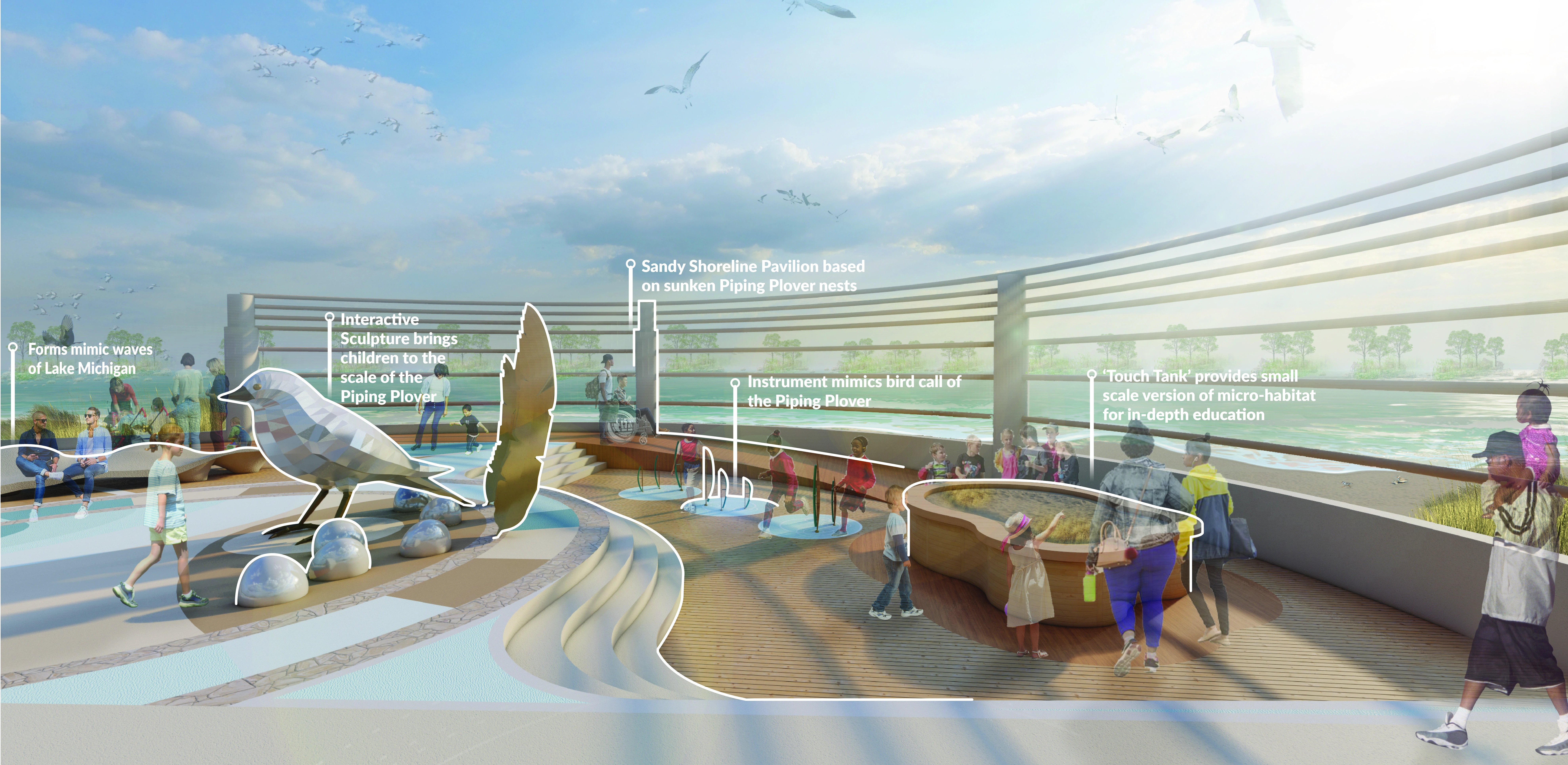 Chicago, Illinois lacked an educational and entertaining outdoor destination, one that could be utilized and capitalized upon by visitors as well as its residents. One that would provide a unique greenspace amenity to the city and surrounding community. By transforming Northerly Island Park into an Interactive Outdoor Music and Sound Museum, it solves the aforementioned problems while simultaneously highlighting how our planet is a musical force. The Earth has always been an inspiration for the arts, especially pertaining to music. Over the past few centuries many symphonies and musical pieces have been directly inspired by nature, such as the “Flight of the Bumblebee” by Nikolai Rimsky-Kirsakov, Ludiwg van Beethoven’s “Pastoral Symphony,” and many others. Nature inspires music, simply because nature is a musical force. This proposal demonstrates the connection nature has to music, using soundscapes, sound sculptures, and interactive exhibits, that highlight the importance of maintaining and appreciating our planet in the process.