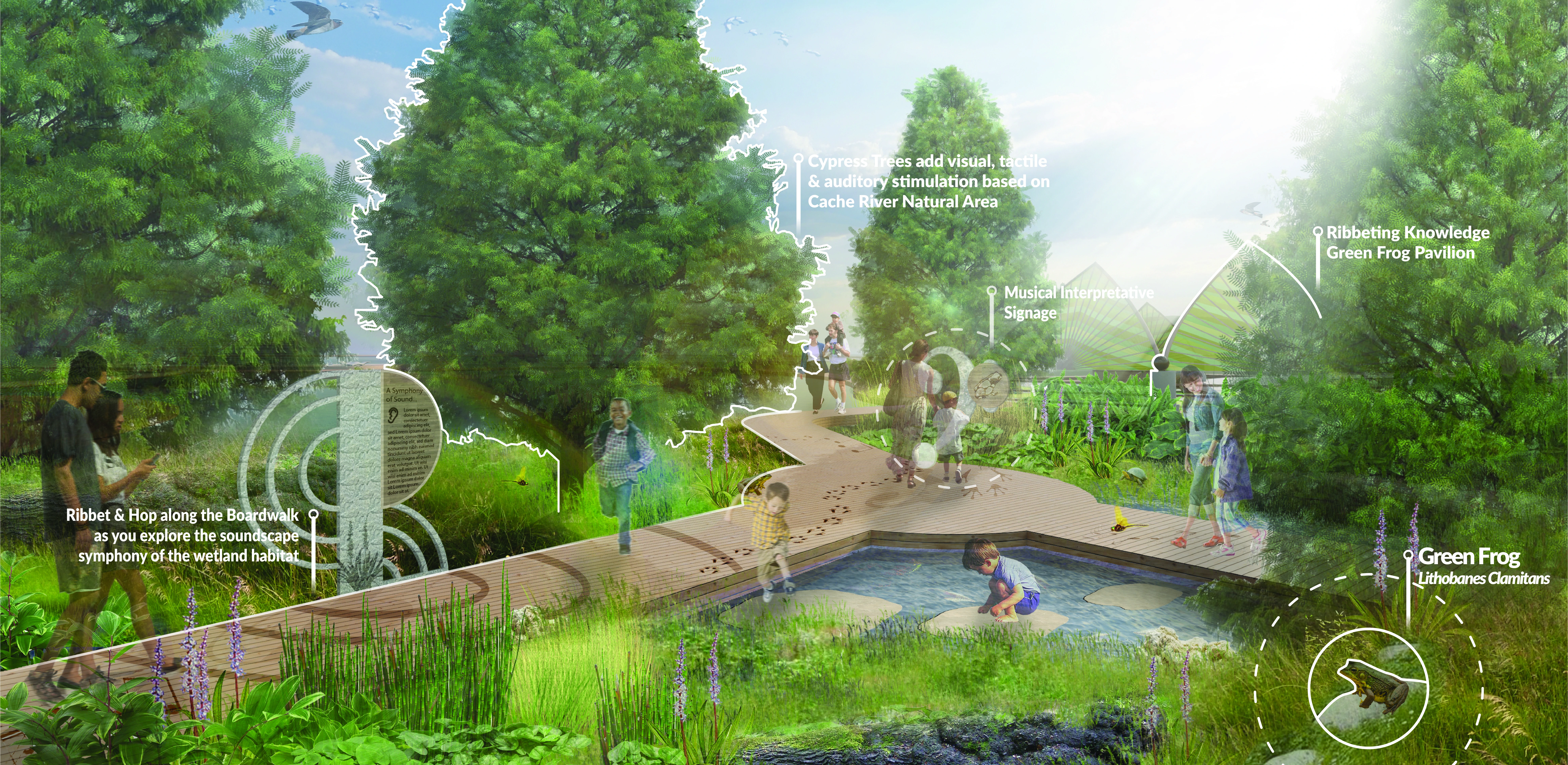 As landscape architects we must continue to push for new and unique design opportunities. While as a profession we have learned how to mask noise and utilize more basic level elements of sound, such as white noise, we have not explored sound and music’s relationship to nature, nor have we created an interactive and educational landscape specifically centered around a topic. Additionally, this project contributes a unique way to present educational opportunities to the public by bringing an indoor program to the outdoors. Through this, landscape architects can provide new educational experiences to people in ways that can go past the basics of nature, and it will help push the discipline further, expanding our reach to new audiences.