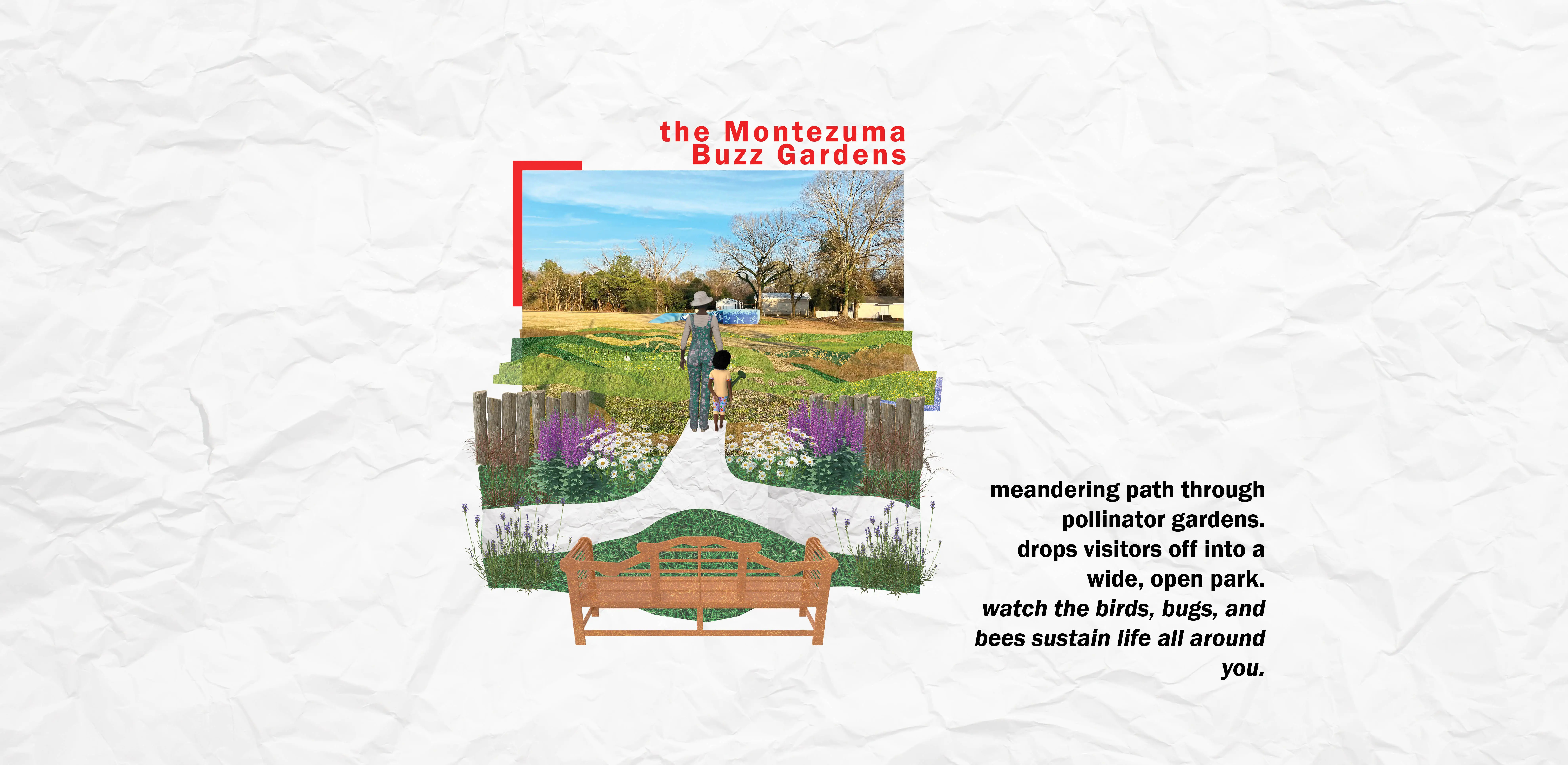 After visiting Montezuma and speaking to the people that live there, I was left with the impression that the community needed to know that the town cared for them. With the history of a devastating flood in 1994 followed by a struggle to recoup economically, it was clear that Montezuma needed some crucial revitalization. For my theme, I landed on HEALTH. Ecological, Physical, and Mental. How can the built environment support the health and resilience of its people? And not just its people, its plant life, soil, economy, beauty, water systems, and spirit? That’s just what I set out to explore with this design. To make Montezuma the town that cares for you.
