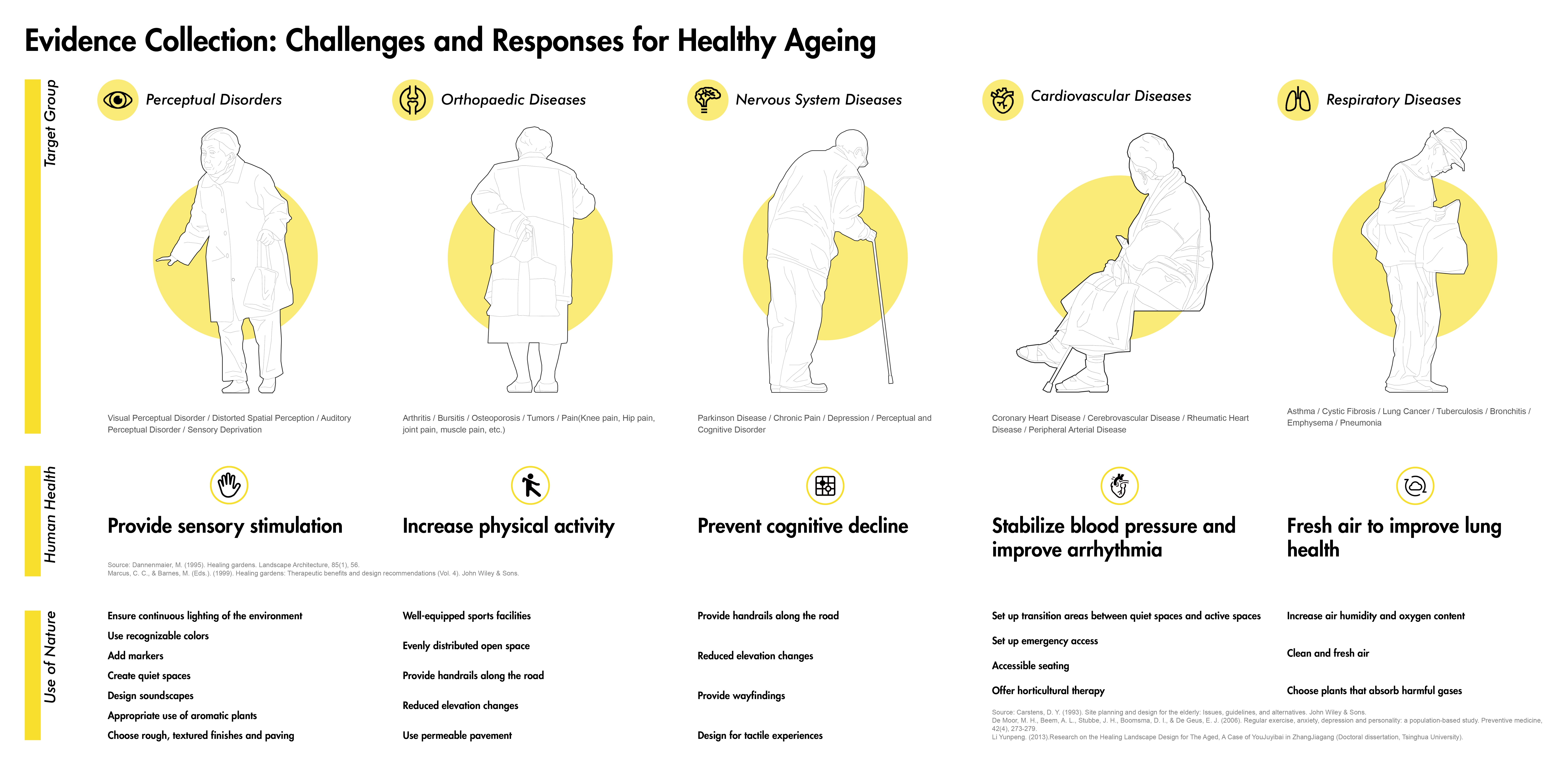 2) Programming. Designers systemize the evidence according to the aims of healthy aging design. Based on the evidence and design criteria, we propose a series of detailed strategies for healthy aging design.