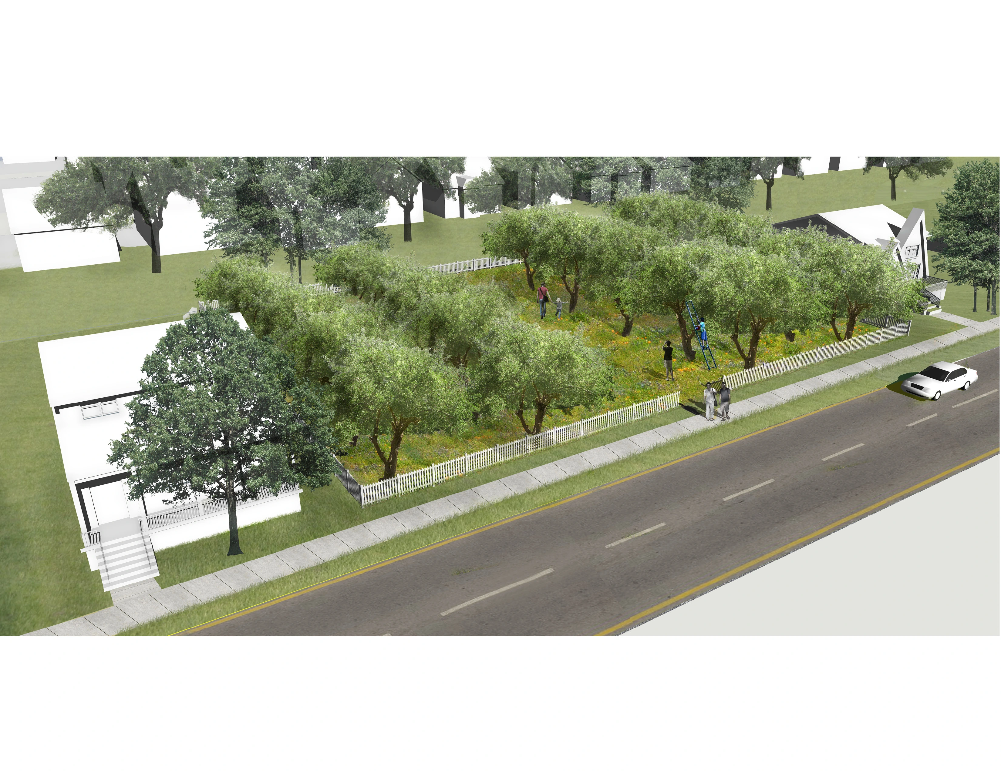 - Landscape Stewardship Plan: Integrated into the development of affordable housing in the neighborhood as a public/private partnership, the Community Developer will implement and maintain a series of landscape typologies on vacant parcels. This includes a range of landscape types, including orchards, pollinator meadows, community gathering spaces, and community gardens.