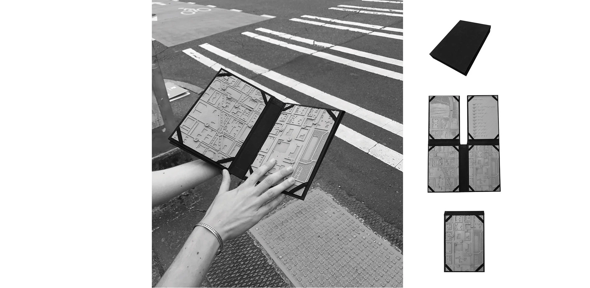 This project presents an alternative approach to exploring the pedestrian experience. Challenging the existing primacy afforded to vision, this work takes a tactile approach. Tactile abstractions are used as a means to guide people through the multi-sensory environments encountered everyday. Designed as tools that enhance spatial understanding for people within a large range of visual capacities, these maps consider circumstances that influence a full spectrum of experience.