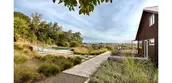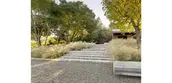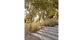 Located in an old apple orchard, the landscape created for this second home in a Northern California farming community is deliberately restrained, allowing the site’s spectacular views to predominate, and not interfering with the live oaks that have reclaimed portions of the orchard. The various elements of the design adopt materials commonly found on farms in the area, including the concrete walkways and platforms, gravel paths to a vegetable garden, board-formed concrete steps at the entrance, and wood steps to a revitalized fruit orchard on the lower section of the site. The scarce water supply is carefully conserved, making this project as environmentally viable as it is beautiful.