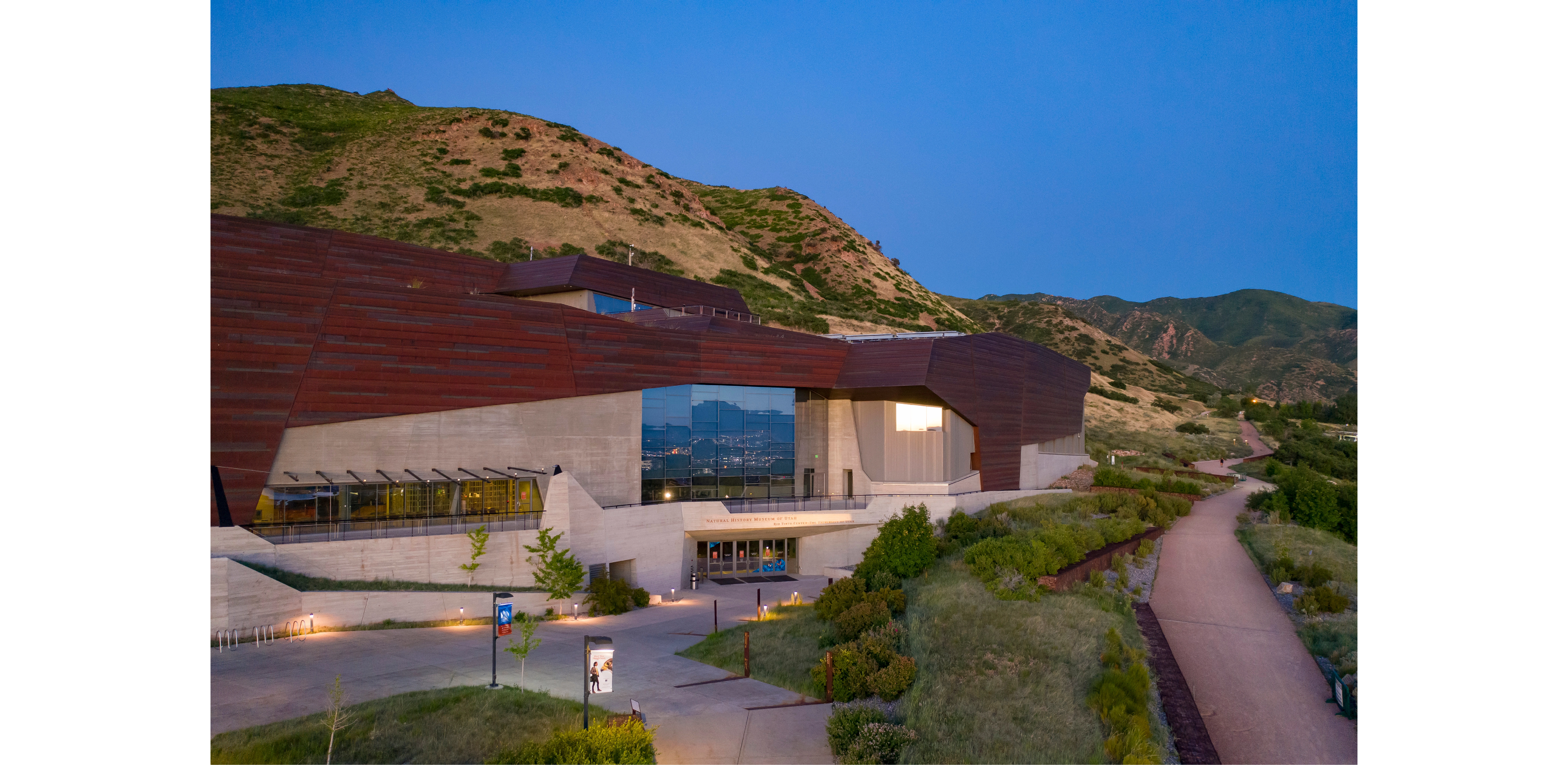 The Natural History Museum of Utah provides an introduction to a remarkable landscape, and celebrates unique paleontological discoveries, unusual gems and minerals, preserved prehistoric artifacts, and stories told by contemporary native people. Bridging of divide of nature and culture, the Museum offers an abstract extension and transformation of the land: its campus an expression of a landscape defined by rock, minerals, and vegetation.