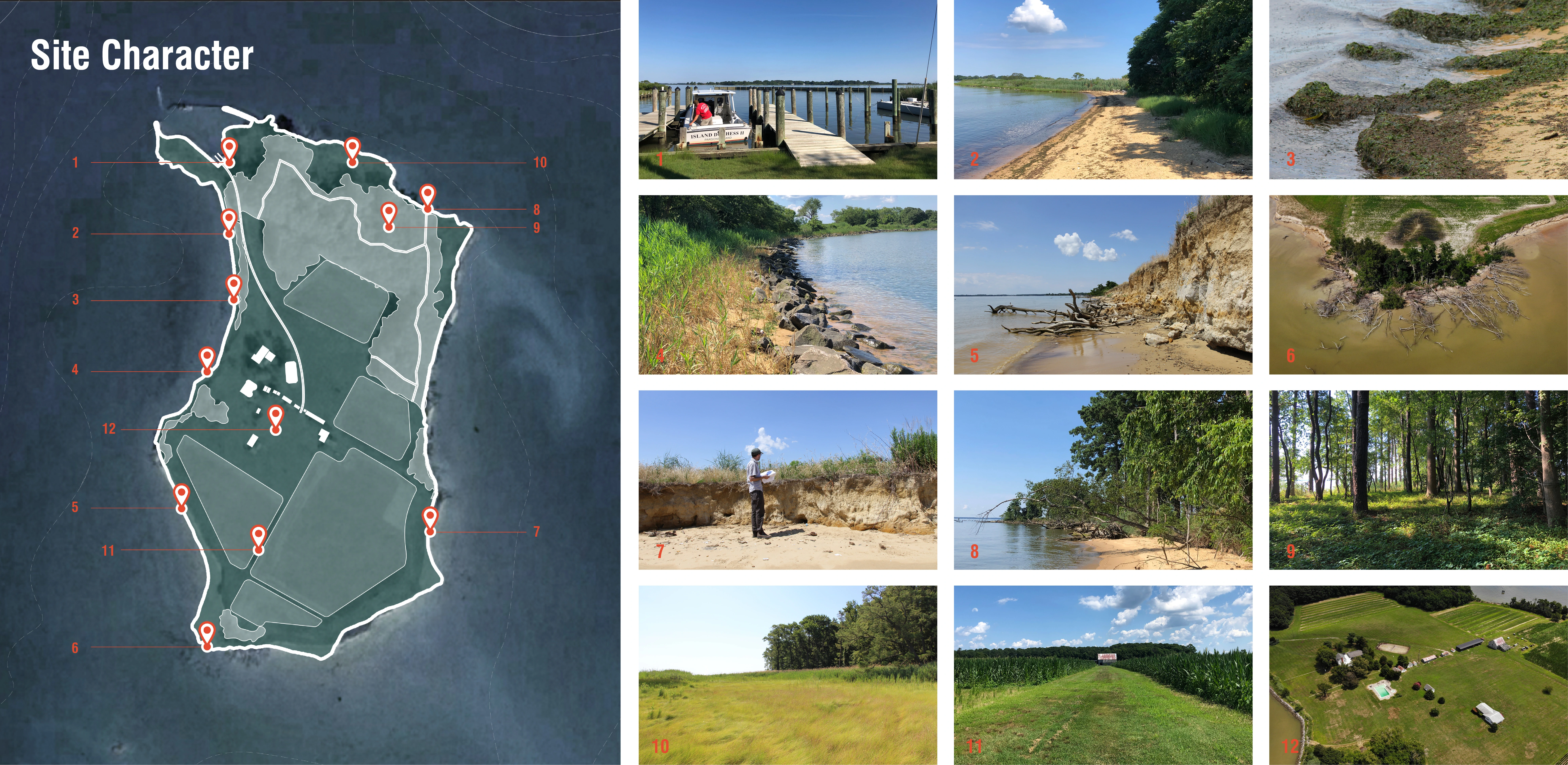 Parsons Island provides a unique opportunity to demonstrate the value of a multi-functional collection of landscape interventions designed to work together to achieve wide ranging public benefits. This strategy of collocating opportunities for enhancements also illuminates and leverages the thickly tethered network of cultural and ecological relationships present within the coastal environments of the Chesapeake – relationships that are invariably influenced by politics and economics. While considered separate subject matters and regulated by a myriad of state and federal agencies, the cultural, ecological and resiliency value of Parsons Island are all linked to one another. These conceptual and physical linkages are the foundation of the Parsons Island Conservation and Regeneration Plan and provide the nexus for development of strategic partnerships, planning frameworks, and site specific design strategies that aim to positively affect all three subjects by positioning each proposed modification within an interconnected system of incremental investments.