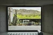 Floor to ceiling glass windows generously bring the garden views into the house and make indistinct the line between indoor and outdoor. A majority of specimens can thrive on rainwater alone after establishment, require no fertilizer, little to no pruning, and conversely provide a rich and lively habitat for a multitude of wildlife. The small citrus grove, one of Arizona’s five ‘Cs’ (Cotton, Citrus, Copper, Cattle, Climate) boasts different cultivars of citrus trees, each providing sensory enjoyment when in bloom; their bountiful fruit is donated to local homeless shelters.