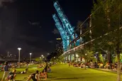 Domino Park is the first phase of the transformation of the former Domino Sugar Factory site into an ambitious mixed-use development project, sited within an area with one of the lowest ratios of open space to people. Inspired by community input and the site’s rich history, the 5-acre Domino Park reconnects Williamsburg to the East River for the first time in 160 years and provides much-needed open space for local residents while honoring its history as a working waterfront. The park integrates over 30 large-scale salvaged relics, including 21 original columns from the Raw Sugar Warehouse, gantry cranes, screw and bucket conveyors, and syrup tanks into an interpretive and educational “Artifact Walk.” Raised above FEMA flood elevations with many native plant species that reduce stormwater runoff, the park also functions as an absorbent sponge and first line of defense against sea level rise. Domino Park has seen over 4 million diverse visitors from nearby Latino, Hasidic, and Black communities and hosted hundreds of events and gatherings for local organizations.